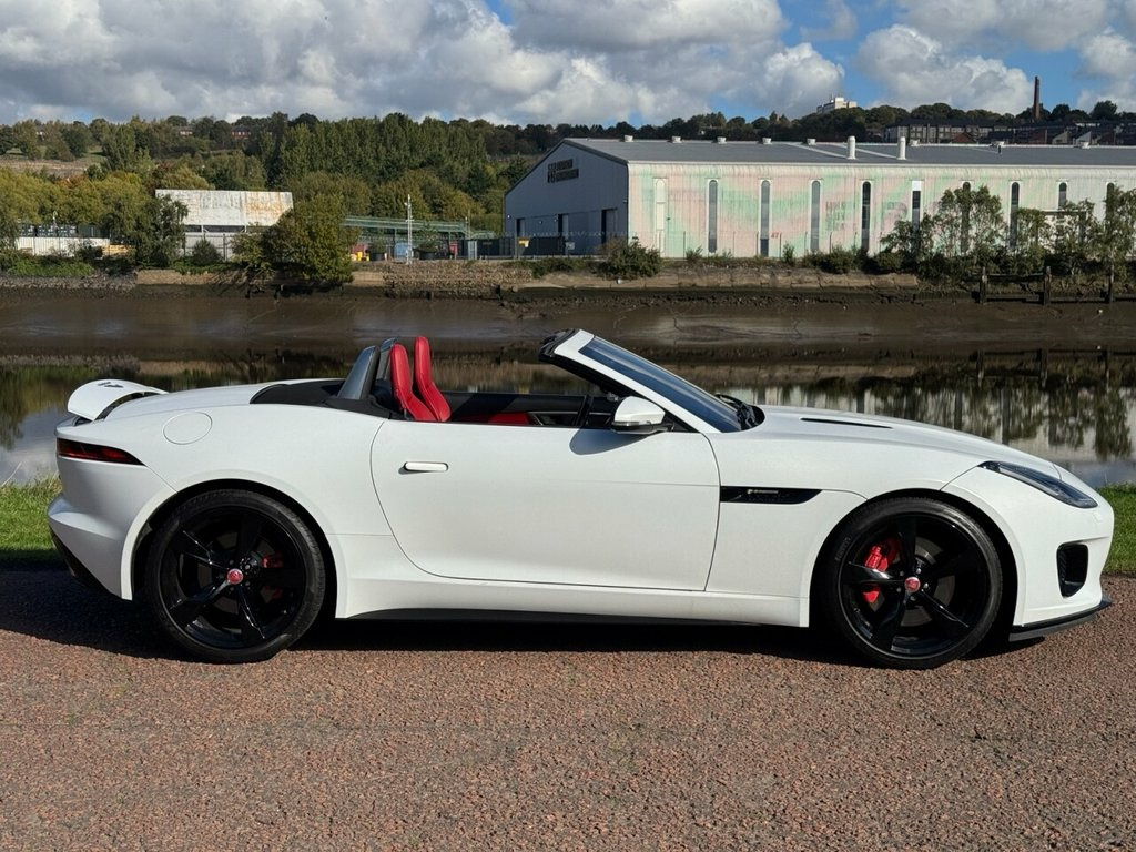 WE ARE DELIGHTED TO OFFER FOR SALE THIS STUNNING JAGUAR F-TYPE WITH A FULL SERVICE HISTORY AND SUPERB SPECIFICATION INCLUDING, A LOVELY UNMARKED PEARL EFFECT WRAP, RED CALIPERS, UPGRADED ALLOYS, FULL LEATHER INTERIOR, HEATED ELECTRIC MEMORY SEATS, SAT NAV, DIGITAL RADIO, BLUETOOTH AUDIO, REVERSING CAMERA, SPORTS EXHAUST, AND MUCH MUCH MORE, PLEASE CALL US TODAY TO RESERVE. 10.2in Touchscreen, 19in Alloy Wheels - 7 Split-Spoke Style , 355mm Front and 325mm Rear Brakes, 4 Airbags, 5in Display with Instrument Panel - 190m, 6-Way Electric Front Seats, ABS - Anti-locking Braking System, Analogue Dials with Central TFT Display , Auto-Dimming Interior Rear View Mirror, Autonomous Emergency Braking, Bluetooth Connectivity, Boot Entrapment Release Lever, Carpet Mats - Premium, Chrome Instrument Cluster Dial Rings, Convertible Roof - Full Electric Black, Cruise Control with Speed Limiter, Delta Aluminium Centre Console, Deployable Boot Lid Spoiler, Digital Audio Broadcast - DAB - Radio, Door Mirrors - Body Coloured, Door Trim - Luxtec, Driver Condition Monitor, Dynamic