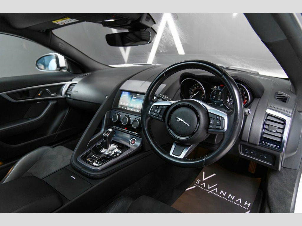 A beautifully specified Jaguar F-TYPE R-Dynamic AWD Coupe with Full main dealer service history, finished in Fuji White with 20" diamond-turned alloy wheels and elegant gloss black detailing. The refined interior features sports seats, Luxtec trim, digital driver display, Touch Pro navigation, Meridian sound system, and smartphone connectivity, creating a premium, driver-focused environment. Additional highlights include a Fixed Panoramic Roof, Keyless Entry, and Power Open/Close Tailgate. A striking luxury sports coupe offering comfort, technology, and unmistakable Jaguar presence. 20in Alloy Wheels - 5 Spoke Style 5042 w, Power Open-Close Tailgate, Fuji White, Fixed Panoramic Roof, Keyless Entry, 20in Alloy Wheels - 6 Split-Spoke Style , 380mm Front and 325mm Rear Brakes, 5in Display with Instrument Panel - 190m, 6 Airbags, 6-Way Electric Front Seats, ABS - Anti-locking Braking System, Adaptive Dynamics, Analogue Dials with Central TFT Display , Android Auto, Apple CarPlay, Autonomous Emergency Braking, Black Brake Calipers, Bluetooth Connectivity, Boot Entrapment Release Lever, Carpet Mats - Premium, Chrome Instrument Cluster Dial Rings, ClearSight Interior Rear View Mirror, Connect Pro, Cruise Control with Speed Limiter, Delta Aluminium Centre Console, Deployable Bo