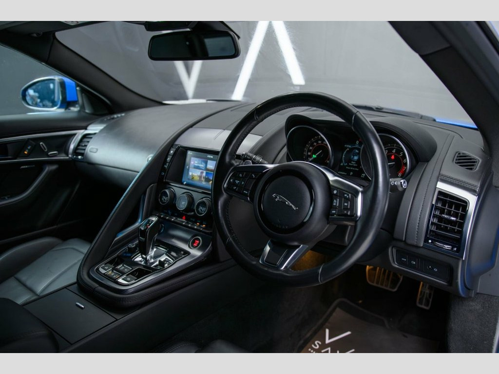 Finished in striking Blue, this Jaguar F-TYPE R-Dynamic Convertible offers exhilarating performance with head-turning open-top style. Presented in excellent condition, it combines Jaguar's sporting design with everyday usability. Specification includes Meridian sound system, Park Assist with rear camera and parallel parking, front parking sensors, heated steering wheel and heated front windscreen, making it as practical as it is exciting. The R-Dynamic styling enhances the car's aggressive stance, while the refined interior delivers comfort and driver focus. A superb convertible sports car ready to be enjoyed. Viewing and test drives welcome. Finance and part exchange available. Bright Metal Pedals, Front Parking Aid, Heated Front Windscreen, Heated Steering Wheel, Reverse Park Camera, Park Assist - Parallel Parking, 10in Touchscreen, 20in Alloy Wheels - 6 Split-Spoke Style , 4 Airbags, 5in Display with Instrument Panel - 190m, 6-Way Electric Front Seats, ABS - Anti-locking Braking System, Adaptive Dynamics, Analogue Dials, Auto-Dimming Interior Rear View Mirror, Autonomous Emergency Braking, Black Brake Calipers, Bluetooth Connectivity, Boot Entrapment Release Lever, Carpet Mats - Premium, Chrome Instrument Cluster Dial Rings, Convertible Roof - Full Electric Black, Cruise Control with Speed Limiter, Delta Aluminium Centre Console, Deployable Boot Lid Spoiler, Digi