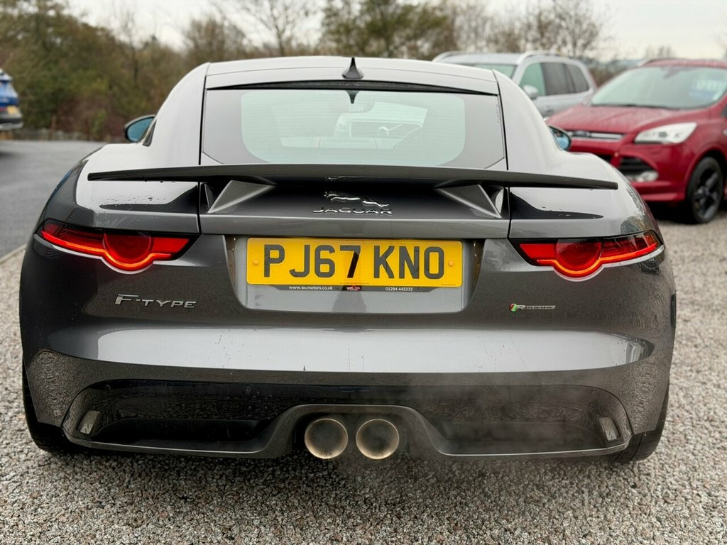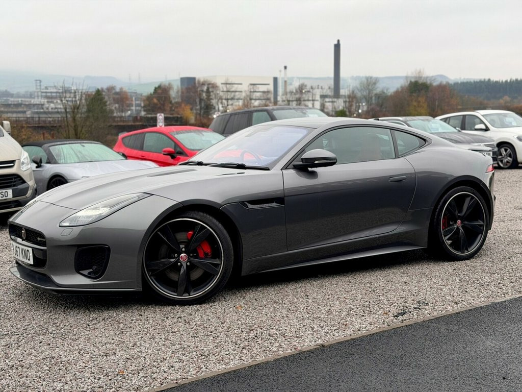2017 (67) Jaguar F-Type 3.0 V6 R-Dynamic West Coast Motors are proud to be supplying this outstanding 2017 (67) Jaguar F-Type 3.0 V6 R-Dynamic Coupe, finished in Corris Grey with full red and black leather interior and gloss black styling pack. This example has covered 72,000 miles from new with excellent service history—main dealer and specialist—with recent service carried out at Prestige Land Rover. Powered by the supercharged 3.0 V6 engine producing 340bhp and paired to an 8-speed automatic gearbox with paddle shift, this F-Type delivers instant power, a fantastic exhaust note via the switchable active sports exhaust, and a refined, exciting drive. Factory spec include Meridian premium sound system, Navigation Pro with 10in touchscreen, electric seat, LED signature headlights, carbon blade R-Dynamic alloys, red brake calipers, and gloss black pack with rear valance, chin insert, bonnet vents and grille. Twin exhaust tips, fixed panoramic roof, and more! Inside, the cabin is very well kept—full red performance seats, carbon fibre-style trim, digital climate, Bluetooth, USB, DAB, cruise, apple car play and ambient lighting. Drives flawlessly, premium tyres all round. 2 keys supplied, 1 previous owner Don't miss this chance to own a proper V6 Jaguar F-Type with the right engine, spec, colour combo and history—available now at West Coast Motors! 3 months Warranty as standard Part exchange welcome Low rate finance available Debit 10in Touchscreen, 19in Alloy Wheels - 7 Split-Spoke Style , 5in Display with Instrument Panel - 190m, 6 Airbags, 6-Way Electric Front Seats, ABS - Anti-locking Braking System, Analogue Dials, Auto-Dimming Interior Rear View Mirror, Autonomous Emergency Braking, Bluetooth Connectivity, Boot Entrapment Release Lever, Carpet Mats - Premium, Chrome Instrument Cluster Dial Rings, Cruise Control with Speed Limiter, Delta Aluminium Centre Console, Deployable Boot Lid Spoiler, Digital Audio Broadcast - DAB - Radio, Door Mirrors - Body Coloured, Door Trim - Luxtec, Driver Condition Monitor, Dynamic Mode, Dynamic Stability Control - DSC, EBA - Emergency Brake Assist, EBD - Electronic Brake-Force Distr