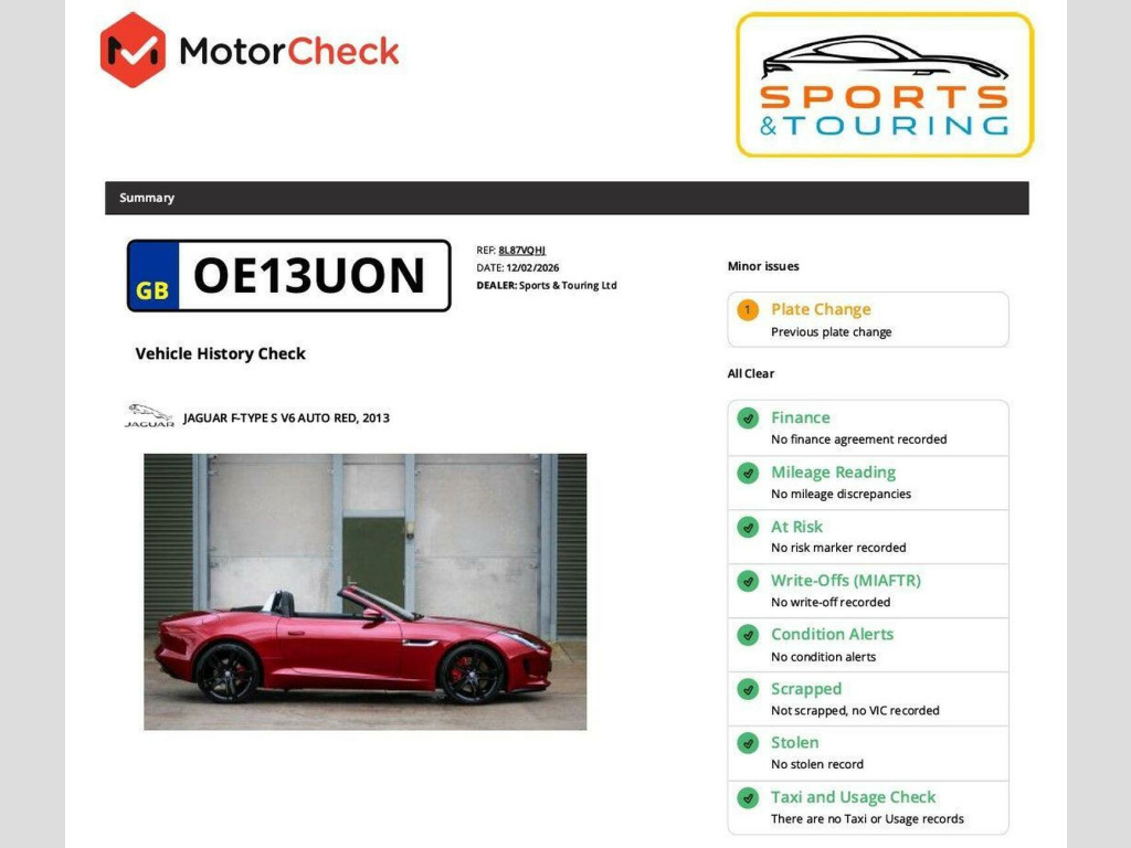 STUNNING CONDITION | VERY LOW MILEAGE | GREAT SPECIFICATION | ITALIAN RACING RED | EXTENDED JET LEATHER | HEATED SEATS | SUEDECLOTH STEERING WHEEL | MERIDIAN SOUND | ELECTRICALLY HEATED FRONT WINDSCREEN with TIMER | POWERFOLD HEATED DOOR MIRRORS | IGNIS SWITCH PACK | DYNAMIC-I | CONFIGURABLE AMBIENT LIGHTING | DUAL-ZONE CLIMATE CONTROL | LOCKABLE INTERIOR STOWAGE | REVERSING CAMERA | FRONT & REAR PARKING SENSORS | KEYLESS ENTRY & START | EXCELLENT HISTORY | As established F-Type specialists we are delighted to list this beautiful V6S Convertible, in bright ITALIAN RACING RED over JET LEATHER and standing on perfect, freshly refurbished CYCLONE WHEELS in GLOSS BLACK. The interior features EXTENDED LEATHER in JET and an array of the most desirable options including HEATED SEATS, ELECTRICALLY HEATED FRONT WINDSCREEN with TIMER, IGNIS SWITCH PACK, DYNAMIC-I, CONFIGURABLE AMBIENT LIGHTING and more, please see the full description. This Jaguar is in excellent condition, with extensive service history from MAIN DEALERs and RESPECTED SPECIALISTs. We shall be servicing the car in our workshop before handover. Inside and outside, everything is in great order, and this Jaguar drives perfectly. It will be supplied with two remote key fobs and owners wallet with handbook set. The registration is OE13 UON. You can chat to us live via text or WhatsApp on 07831 445521. Were open seven days a week, from 8am until 8pm, by appointment. Please read our reviews on AutoTrader and Google - we are very proud of our achievements. Contact us for access to the Google drive for any of our cars, with high-resolution photos, service history, and full build specification, or request a video viewing. All our cars are supplied with a comprehensive MotorCheck report and pre-delivery inspection. We offer warranty options up to twenty-four-months. Please ask us about trading-in; we will give you sound advice.
