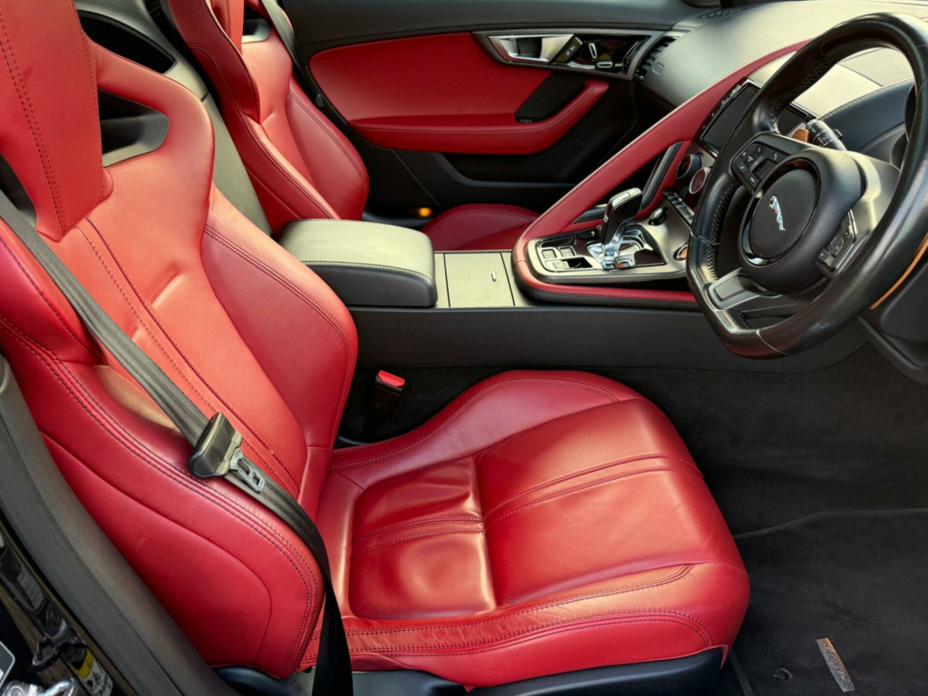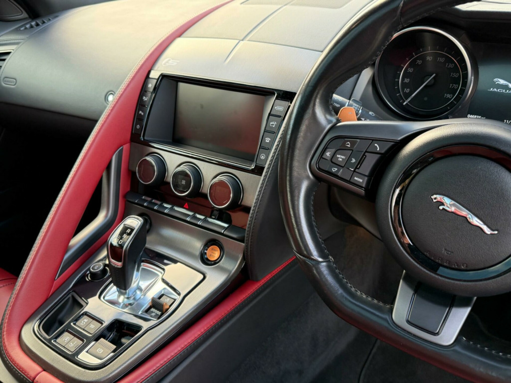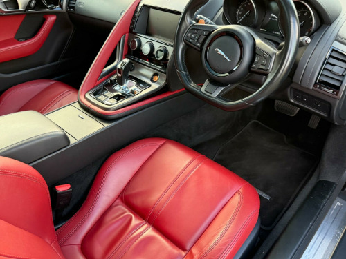 This 2017 Jaguar F-Type V6 S is a truly special find, offering a compelling blend of performance and practicality. Powered by a potent 3.0 litre V6 petrol engine, this Euro 6 compliant model delivers exhilarating acceleration, reaching 0-60mph in a swift 4.8 seconds. The S trim level ensures a premium experience, enhanced by features such as Bi-function HID Xenon headlights for superior visibility and a Rear Parking Aid with a clear touch screen visual indicator for effortless manoeuvring. Inside, you'll appreciate the convenience of Single Zone Automatic Climate Control and seamless Bluetooth telephone connectivity, keeping you comfortable and connected on every journey.Beyond its impressive performance figures, this F-Type V6 S stands out with its remarkably low insurance group, making it an accessible choice for many drivers. Furthermore, its surprisingly large boot space means you don't have to compromise on practicality, offering ample room for luggage or shopping. These highlights, combined with its dynamic capabilities and refined features, position this Jaguar F-Type V6 S as a superior option compared to other vehicles in its class. in alloy wheels - blade, design with black pack, fixed panoramic roof, premium leather with premium leather interior - red with jet stitching, seats - performance, reverse park camera with guidance, front parking aid, jaguar smart key system with keyless entry, steering wheel - sports leather flat bottomed with ignis paddles, 12v power socket - front, 8in full colour touch-screen display, abs - anti-locking braking system, adaptive dynamics, airbags - driver, airbags - front side, airbags - passenger, amplifier channels x8, auto-dimming interior rear view mirror, automatic headlight washers, auxiliary socket, bluetooth telephone connectivity, carpet mats - premium, centre console - dark hex aluminium with s graphic, configurable ambient interior lighting - dual colour with mixing pallete, configurable dynamic mode with dynamic-i information displays, cruise control with adaptive speed limiter, dab radio receiver, daytime running lights - led, dead locking, door mirrors - electric adjustment-heated and side turn indicators, dynamic stability control - dsc, eba - emergency brake assist, ebd - electronic brake-force distribution, epb - electronic parking brake - drive away release, electric windows - front, exterior badging - s, header and headlining - morzine - jet, headlights - bi-function hid xenon, incontrol remote premium for warranty period, instrument cluster - twin dials with 5in tft display, interior - leatherette - facia-door trim-console, jaguar high performance braking system, jaguar smart key system with keyless start, jaguar sound system - 180w, jaguar tyre repair system, led tail lights, limited slip differential, pedestrian contact sensing and deployable bonnet, phone connect and view - incontrol apps, pollen filter, power assisted steering, rain sensing windscreen wipers, rain-ice-snow mode, rear parking aid with touch screen visual indicator, rear spoiler - body coloured deployable, red brake calipers, remote control central locking with dead locking and drive-away locking, row occupancy classification system, satellite navigation, seats - driver height adjustable, seats - electric driver-passenger adjustment - 6x6 way, seats - sports, single zone automatic climate control, speakers x6, sports sunvisor, sports suspension, steering column - electrically adjustable, steering wheel - 3-spoke-leather, steering wheel - ignis paddles, switchable active sports exhaust, torque vectoring by braking - tvbb, trac dsc mode, treadplate - s, trip computer, twin exhaust pipes - centre mounted, two stage unlocking - integrated in touch-screen, tyre pressure monitoring system, usb and ipod connectivity, valet mode, volumetric sensing