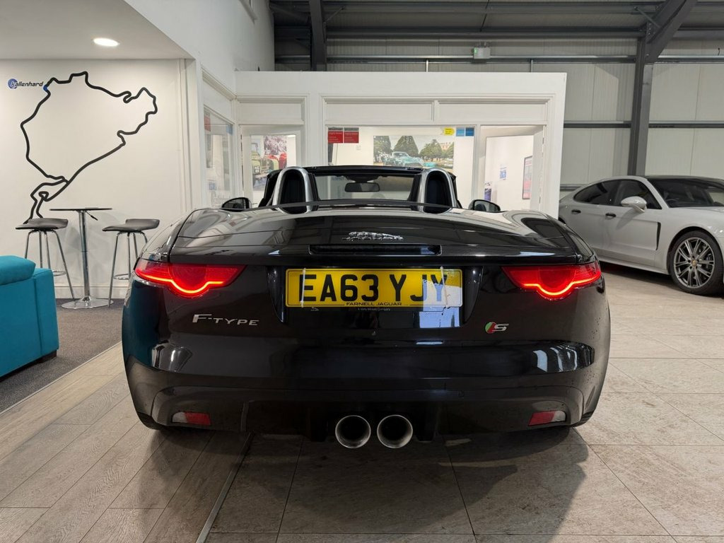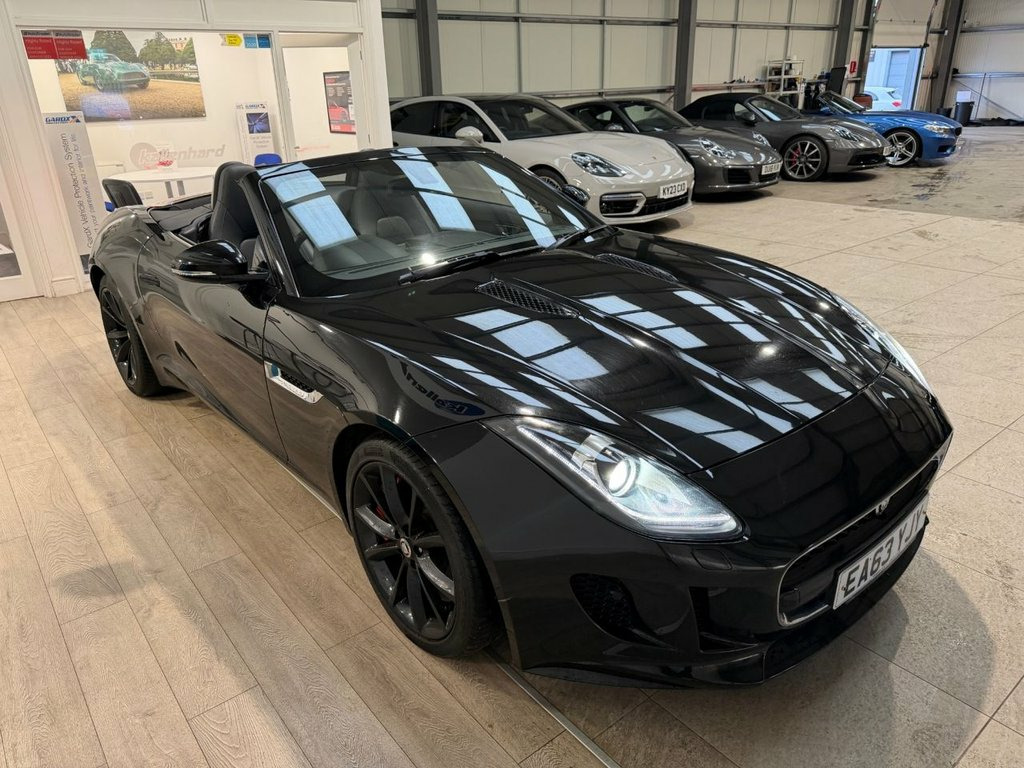 Meet our Ultimate Black Jaguar F-TYPE 3.0 V6 S Convertible — a car that doesn't just turn heads, it stops conversations. With its sculpted lines, long bonnet and unmistakable Jaguar presence, this F-TYPE looks every bit as dramatic as it feels to drive. The 3.0-litre V6 S engine delivers a thrilling 380 ps through the smooth automatic gearbox, producing an intoxicating soundtrack that perfectly matches the performance. Roof down, engine alive, this is a car built to be enjoyed. Finished in striking Ultimate Black, the exterior is sharpened by red brake calipers that hint at the performance beneath, while the rear view camera adds everyday confidence when manoeuvring. Keyless entry brings a touch of modern convenience, making every drive effortless from the moment you approach. It's clear this example has been cherished, supported by an impressive service history with seven services documented in the file. The condition reflects careful ownership and attention to detail throughout, giving reassurance as well as excitement. Elegant, aggressive and undeniably charismatic, this Jaguar F-TYPE Convertible blends luxury and raw performance in a way few cars can. It's not just a drive — it's an experience, every single time you turn the key. Service History 40297miles, 27837 miles, 20444 miles, 10821 miles, 8545 miles and 6444 miles and 4617 miles At Kallenhard Engineering we specialise in Performance, Prestige, and 4×4s. Because prepar Reverse Park Camera with Guidance, Ultimate Black, 12V Power Socket - Front, 19in Alloy Wheels - Propeller, 1x USB Socket, ABS - Anti-locking Braking System, ASL - Automatic Speed Limiter, Active Sports Exhaust, Adaptive Dynamics, Airbags - Driver, Airbags - Front Side, Airbags - Passenger, Auto-Dimming Interior Rear View Mirror, Automatic Headlight Washers, Bluetooth Telephone Connectivity, CD Player - AM/FM Radio, Centre Console - Dark Hex Aluminium with, Configurable Ambient Interior Lighting -, Convertible Roof - Full Electric Black, Cruise Control, DAB Radio Receiver, Door Mirrors - Electric Adjustment-Heate, EBA - Emergency Brake Assist, ESP - Electronic Stability Control, Electric Win