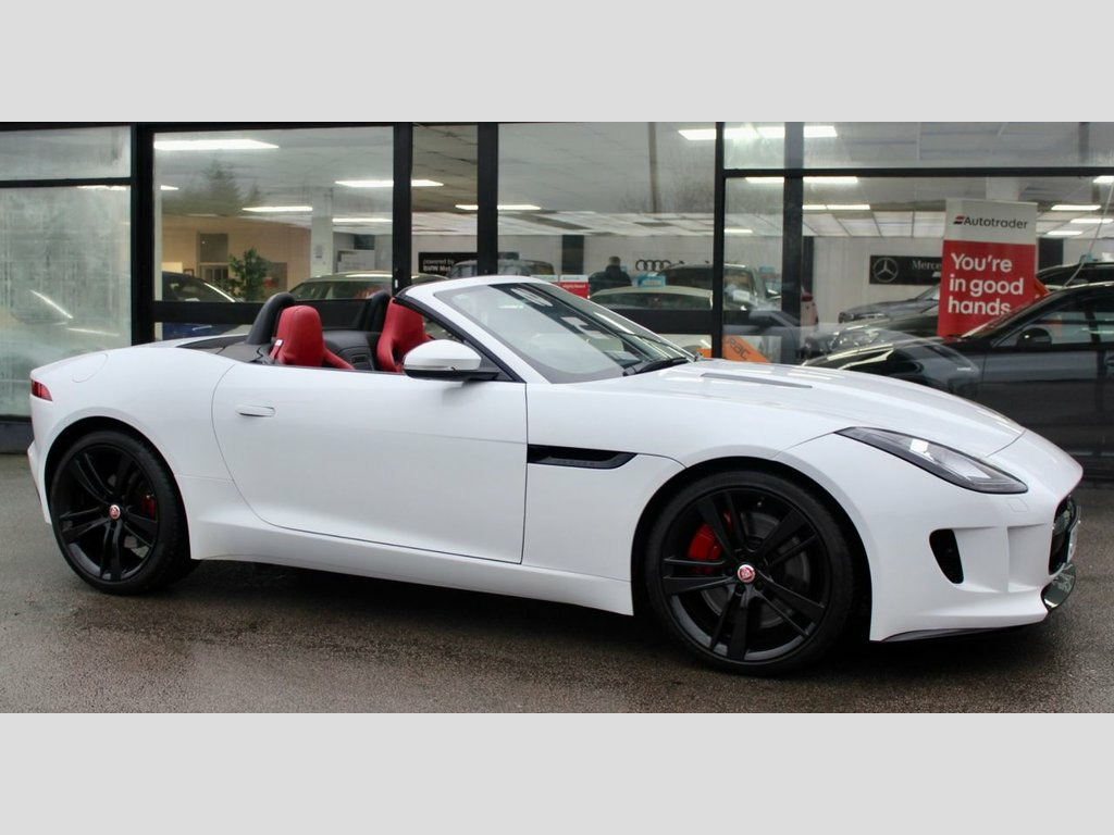 Fuji White, Premium Red Leather Sports Seats (£3105 option), 20" Back Cyclone Alloys (£1750 option), Meridian 770W Premium Sound System (£1700 option), Swat Memory Pack 2 (£1495 option), Smart Key System With Keyless Entry (£450 option), InControl Apps (£350 option), Reverse Park Camera With Guidance (£255 option), Front Parking Aid (£245 option), Heated Seats (£350 option), Black Pack (£595 option), Satellite Navigation, Red Brake Callipers, Switchable Sports Exhaust, Electric Folding Wing Mirrors, Recent Full Set of Pirelli P Zero Tyres, Bluetooth Phone and Audio, CD Player, Electric Convertible Roof, Cruise Control, Electric Convertible Roof, Electric Mirrors, 2 Keys Book Pack and Receipt File, Service History - 7 Services Last Done at 49k miles. Jaguar High Performance Braking System w, Jaguar Smart Key System with Keyless Ent, Black Pack, Premium Leather with Premium Leather Int, Heated Front Seats, Reverse Park Camera with Guidance, Front Parking Aid, Phone Connect and View - InControl Apps, Satellite Navigation - EU, Seat Memory Pack, 20in Alloy Wheels - Black Cyclone, Meridian 770W Surround Sound System - 12, Polaris White, 12V Power Socket - Front, 1x USB Socket, ABS - Anti-locking Braking System, ASL - Automatic Speed Limiter, Adaptive Dynamics, Airbags - Driver, Airbags - Front Side, Airbags - Passenger, Auto-Dimming Interior Rear View Mirror, Automatic Headlight Washers, Bluetooth Telephone Connectivity, Centre Console - Dar