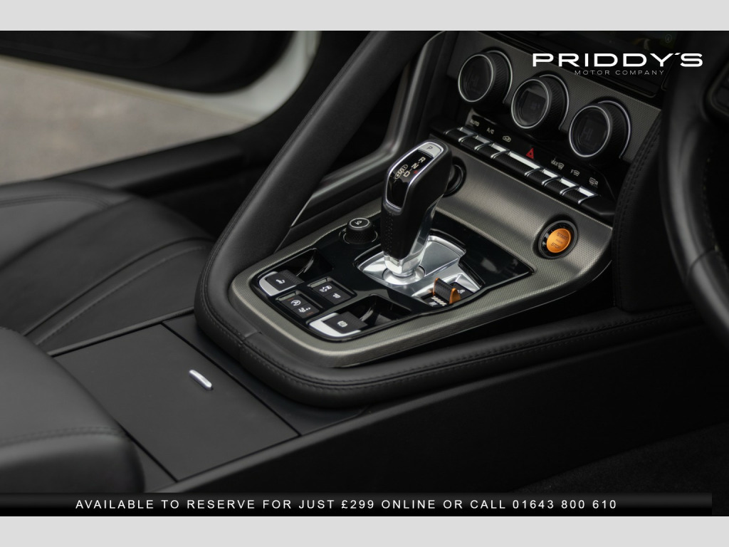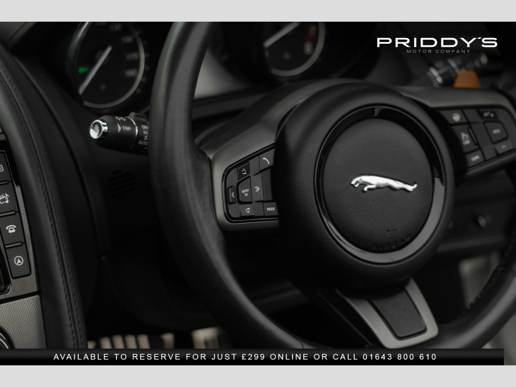 Amazing history. Unreal specification. Outstanding condition. This Jaguar F-Type 3.0 V6 S Convertible is one of those rare finds that immediately makes you stop and take notice — the sort of car that radiates quality and provenance before youve pressed the start button. With just 31,527 miles, a full Jaguar main dealer service record complemented by a recent specialist service with ourselves, and a specification list that far surpasses most examples of its kind, this car represents something genuinely special. , Its not often that a V6 S arrives with such depth of equipment. This particular F-Type is loaded with features usually reserved for the higher-output models: heated R Design bucket seats, heated steering wheel, 14-way adjustable memory seats, blind spot assist, cruise control, and Jaguar-branded mats, all underscoring its premium credentials. Add to that the valved sports exhaust — giving the car its unmistakable F-Type soundtrack — and a series of carbon fibre enhancements including bonnet vents, wing mirrors, and side wing inserts, and you have a car that looks every bit as exciting as it sounds. , Inside, the cabin is pure Jaguar — a blend of luxury and intent. The materials, the design, and the driving position all come together to create an atmosphere of craftsmanship and performance. Its a car that feels special from the moment you settle into the seat, yet remains remarkably usable and refined day to day. , , Then theres the history — and this one is superb. Every entry tells the story of careful, exacting maintenance carried out exclusively by Jaguar main dealers, with the latest service completed by Priddys Motor Company. Its a complete, uninterrupted record from day one, showing the kind of consistency thats incredibly rare to find today. , Service History, , 08.07.2016 – 14 miles – Jaguar Main Dealer – PDI, , 22.08.2017 – 1,568 miles – Jaguar Main Dealer – Oil Service, , 28.08.2018 – 4,354 miles – Jaguar Main Dealer – Oil Service, , 18.09.2019 – 8,385 miles – Jaguar Main Dealer – Oil & Pollen Filters, , 18.09.2020 – 10,651 miles – Jaguar Main Dealer – Oil Service, , 15.10.2021 – 12,758 miles – Jaguar Main Dealer – Oil Service, , 12.10.2022 – 15,054 miles – Jaguar Main Dealer – Oil Service, , 29.09.2023 – 19,046 miles – Jaguar Main Dealer – Oil Service, , 28.10.2024 – 22,992 miles – Jaguar Main Dealer – Oil Service, , 13.10.2025 – Current – Priddys Motor Company (Specialist) – Oil Service, , A flawless maintenance record — ten entries in total, each carried out on schedule and at exceptionally low mileage intervals. Its clear that this car has never wanted for anything, mechanically or cosmetically. , And that theme of care continues into every detail. The F-Type sits on Pirelli P Zero tyres all round, with the rears virtually brand new and the fronts showing healthy tread. The discs and pads are equally impressive, the discs in lovely condition and pads showing approximately 90% life remaining — yet another sign of the cars gentle use and careful ownership. , Out on the road, its everything an F-Type should be — refined when you want it to be, exhilarating when you open it up. The supercharged 3.0-litre V6 produces a thrilling 380hp, channelling its power through a beautifully calibrated automatic gearbox that makes the car feel both urgent and effortless. The balance between performance and elegance is near-perfect, and with the roof down, the whole experience becomes something truly special. , This car has clearly been loved, and it shows. From its immaculate presentation to its meticulous history, it represents a rare opportunity to own one of the most complete and well-specified examples of the F-Type V6 S Convertible currently available. , Priddys Motor Company are proud to offer this exceptional car — one that delivers everything: performance, luxury, condition, and provenance in perfect harmony. , , , Why Buy from Priddys Motor Company, , , Excellence isnt optional — its standard.