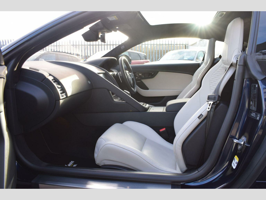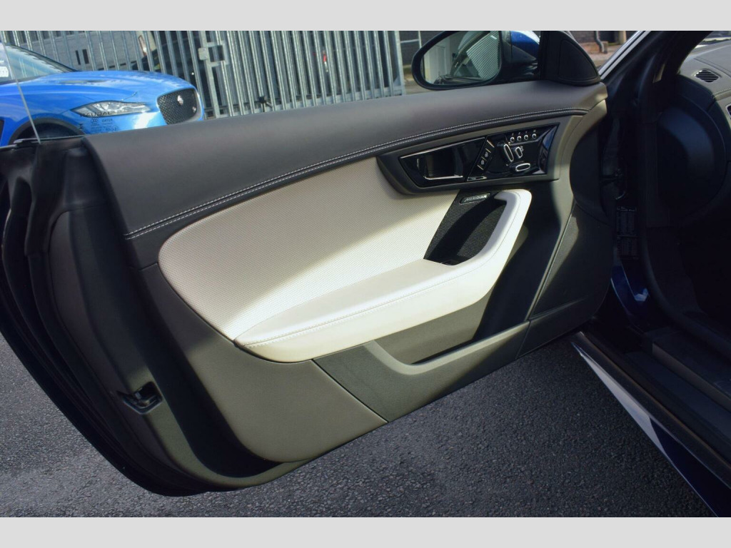January 2024 Jaguar F-Type 5.0 V8 75 Auto AWD Coupe finished in a beautiful combination of Portofino Blue Metallic with Light Oyster and Ebony Windsor Leather interior and contrast stitching. Just 10850 miles covered with first service completed by Jaguar and second service will be completed ready for sale leaving no maintenance for the foreseeable future. Jaguar warranty in place until January 2027, supplied with all correct documentation, handbooks etc and subjected to our usual strict pre delivery inspection and preparation process ensuring all cosmetic and mechanical elements are in good order including matching Pirelli P Zero tyres. Presented in fantastic condition inside and out - bodywork, alloys and interior all very well preserved. This example benefits from a host of sought after optional extras and packages on top of the already impressive 75 equipment list. These include: Full Extended Leather Upgrade, Windsor Leather Performance Seats in Light Oyster with Ebony/Light Oyster Interior, Fixed Panoramic Roof, Exterior Design Pack with Black Pack and Climate Pack (inc Heated Steering Wheel, Heated Front Windscreen and 2-Zone Climate Control). Other highlights include: 12-Way Heated and Cooled Electric Front Seats with Memory, 20in Alloy Wheels, Pixel LED Headlights with Signature DRL, Meridian Sound System, Interactive Driver Display, Connected Navigation Pro, Apple CarPlay, Android Auto, Front and Rear Parking Aid, Rear Camera, Deployable Boot Lid Spoiler, Switchable Active Exhaust, Electronic Active Differential with Torque Vectoring by Braking, Adaptive Dynamics, Cruise Control with Speed Limiter, Keyless Entry, Premium Cabin Lighting and more. , DELIVERY: Nationwide delivery available. The first 100 miles are free of charge (driven delivery). Thereafter, delivery is charged at £1.99+vat per mile. Please contact us for further details or a personalised quotation including trailered delivery options. , PAYMENT: We accept debit card payments for amounts up to £500. For payments exceeding this amount, we accept BACS (bank transfer) only. Please ensure that funds have cleared prior to vehicle collection as we are unable to release vehicles without cleared funds.If you intend to pay via online banking on the day of collection, please bring any necessary devices or security tools (e.g. secure keys, card readers, etc.) required to complete your transfer. We also accept cash payments up to £9,000, subject to a 2% banking fee. Please note that a £250 administration fee applies to all purchases funded through third-party finance providers. , NOTICE: Every effort is made to ensure the accuracy of our advertisements and vehicle specifications. However, occasional human or system errors may occur. We therefore recommend verifying all details prior to purchase.