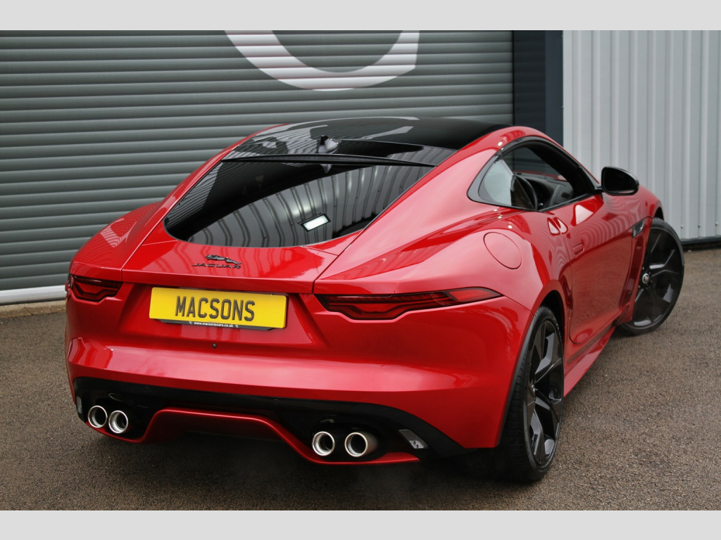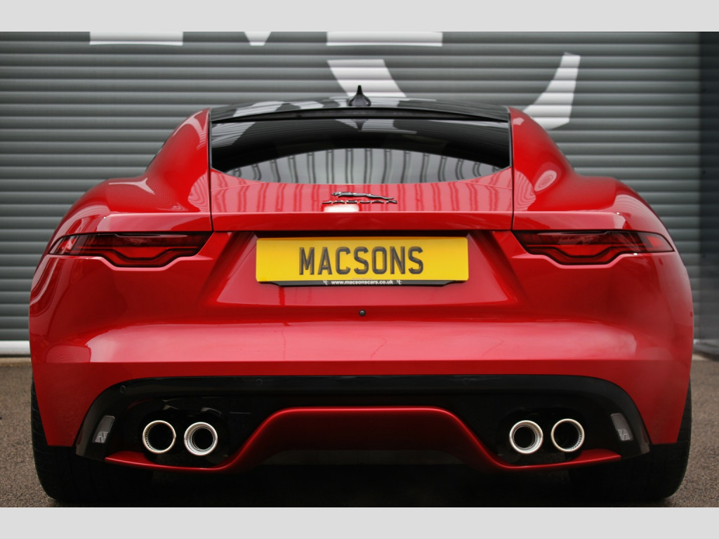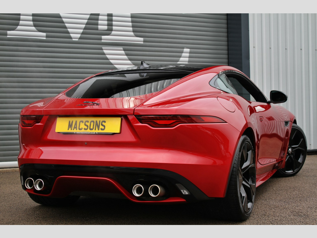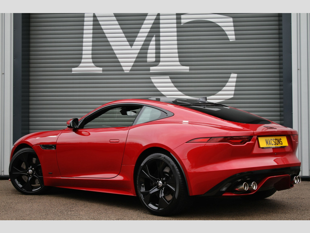 Now here is this F-Type Coupe V8 75 Edition AWD in the Italian Racing Red Metallic with a very low mileage of 5,123 Miles. Comes specified with a huge selection of optional extras some including Panoramic Roof, 12 Way Memory Heated/Cooled seats, Reverse Assist Camera, Heated Steering Wheel. , Full Jaguar Service History:, - First service carried out on the 24/11/2023 at 2,966 Miles, - Second on the 21/11/2024 at 3,806 Miles, - Third on the 29/01/2026 at 5,123 Miles, , Upgrades: , - Park Assist - Parallel Parking, - Fixed Panoramic Roof, - Exterior Design Pack, - Heated Front Windscreen, - Tailgate Privacy Glass, - Heated Steering Wheel, - Windsor Leather Performance Seats - Ebony with Light Oyster Stitch, - Meridian Sound System, - Blind Spot Assist Pack, - 12-Way Heated and Cooled Electric Front Seats with Memory, - 20in Alloy Wheels - 5 Spoke - Style 5102 - Gloss Black, - Adaptive Dynamics, - Android Auto, - Apple CarPlay, - Auto-Dimming Power Fold-Heated Door Mirrors with Memory, - Black Brake Calipers, - Black Pack - Interior, - Configurable Dynamics, - Connected Navigation Pro, - Contrast Carpet Mats, - Cruise Control with Speed Limiter, - Deployable Boot Lid Spoiler, - Digital Audio Broadcast - DAB - Radio, - Ebony Suedecloth Headlining, - Extended Leather Upgrade, - Exterior Black Design Pack, - Front and Rear Parking Aid, - Interactive Driver Display, - Keyless Entry, - Lane Keep Assist, - Leather Steering Wheel, - Limited Edition Aluminium Instrument Panel Finisher, - Meridian Sound System, - Metal Treadplates with Limited Edition Branding, - Pixel LED Headlights with Signature DRL, - Power Assisted Steering, - Premium Cabin Lighting, - Rear Camera, - Solar Attenuating Windscreen, - Steering Column - Electrically Adjustable with Memory, - Suedecloth Sunvisors with Vanity Mirrors, - Switchable Active Exhaust, - Traffic Sign Recognition with Adaptive Speed Limiter. , Comes Complete with Both Keys and is HPI Clear. All specification is supplied by third party data and can be incorrect. Macsons Cars will not accept responsibility if any of the specification is incorrect, Please ask for confirmation on options. Opening Times, 9-6pm Monday to Friday , Saturday 10-1pm, Closed Sundays. Our prices are NOT Subject to any ADMIN FEEs.