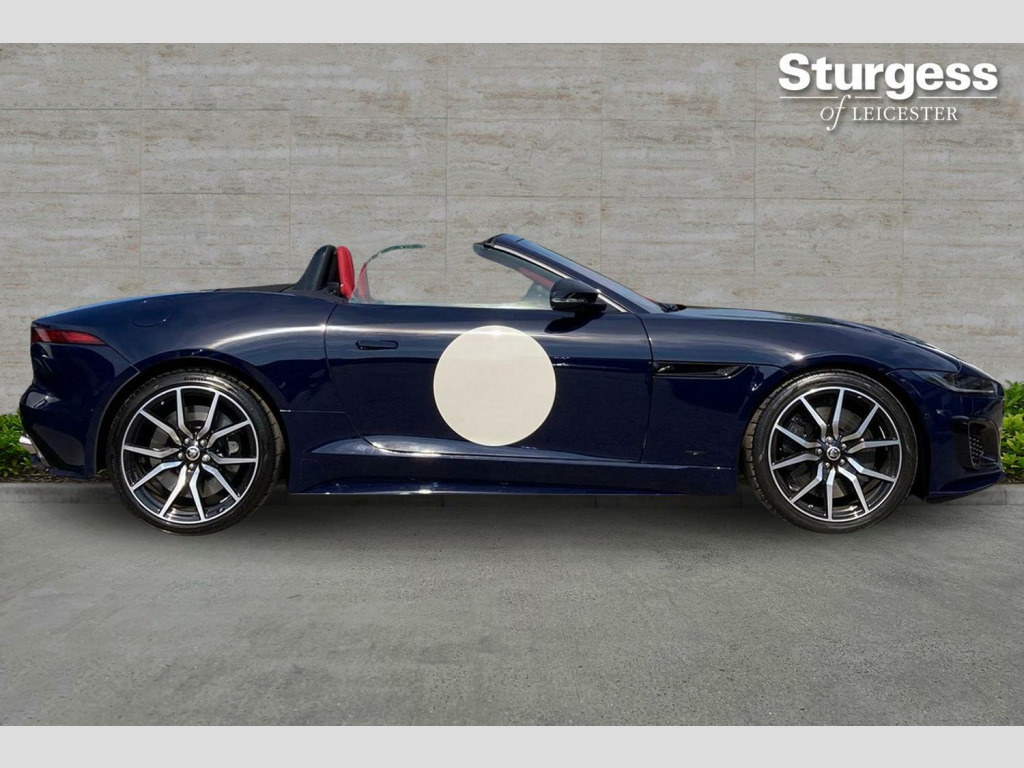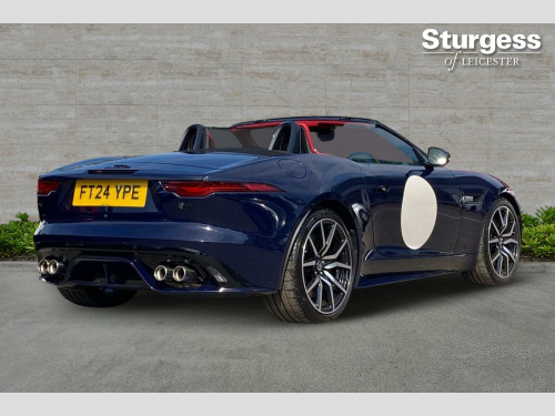 Sturgess of Leicester are delighted to offer this very special car, a Jaguar F-Type ZP Limited Edition convertible which has covered just 511 miles.In early 1961, Jaguar claimed its first race wins with 2 subtly modified E-TYpes, under the project name ZP. This F-Type references the car driven to victory by Graham Hill at Oulton Park on 15th April 1961, exactly 1 month after the E-Type was launched to an astounded world on 15th March 1961 at the Geneva Motor Show.This car, one of 150 produced by the Jaguar SV Bespoke Division for world-wide distribution, is finished in specially formulated Oulton Blue with a black convertible roof, Mars Red and Ebony leather interior, painted Porcelain White door roundels and radiator grille surround. The look is complemented by 20 inch Black Diamond Turned forged alloy wheels and gloss black brake calipers.Power is from Jaguar’s renowned 5 litre, supercharged V8 petrol engine, delivering 575 PS, 700 NM of torque through an all-wheel drive system.Along with the Bespoke paint finish and interior, each ZP Edition F-Type benefitted from exclusive “ZP” branding including to the wheels, tread plates and dashboard.This car is believed to be one of 10 ZP Edition F-Types that found homes in the UK and is bound to give its next owner not only a fabulous driving experience but knowledge that they possess a very rare car.Peace of Mind Package:- Balance of manufacturers warranty & roadside assistance until May 2027 Buy Your Next Car Your Way! Reserve online for just £100, pay in full, or apply for tailored finance. We welcome part exchanges with competitive valuations and offer a 14-day money-back guarantee plus nationwide delivery.Explore our wide range of vehicles or request a personalised video. *Unaccompanied test drives available on request. T&Cs apply.Disclaimer: While every effort has been made to ensure accuracy, please confirm specific features with our sales team before purchase.. 12-Way Heated and Cooled Electric Front Seats with Memory, 2-Zone Climate Control, 20in Alloy Wheels - 10 Spoke - Style 1066 - Gloss Black, 380mm Front and 376mm Rear Brakes, ABS - Anti-locking Braking System, Adaptive Dynamics, Airbags - Driver, Android Auto, Apple CarPlay, Auto-Dimming Power Fold-Heated Door Mirrors with Memory, Black Pack - Interior, Blind Spot Assist, Carpet Mats - Nubuck Edged, Configurable Dynamics, Connected Navigation Pro, Convertible Roof - Full Electric Black, Cruise Control with Speed Limiter, Deployable Boot Lid Spoiler, Digital Audio Broadcast - DAB - Radio, Driver Condition Monitor, Ebony Suedecloth Headlining, Electric Windows - Front, Electronic Active Differential with Torque Vectoring by Braking, Emergency Braking, Exterior Black Design Pack, Front and Rear Parking Aid, Full Extended Leather Upgrade, Heated Front Windscreen, Heated Steering Wheel, Interactive Driver Display, Keyless Entry, Lane Keep Assist, Limited Edition Aluminium Instrument Panel Finisher, Meridian Surround Sound System, Metal Treadplates with Limited Edition Branding, Online Pack, Pixel LED Headlights with Signature DRL, Power Assisted Steering, Premium Cabin Lighting, R Branded Leather Steering Wheel, Rear Camera, Rear Traffic Monitor, Red Brake Calipers, Remote, Secure Tracker - 12 Month Subscription, Silver Gearshift Paddles, Solar Attenuating Windscreen, Steering Column - Electrically Adjustable with Memory, Suedecloth Sunvisors with Vanity Mirrors, Switchable Active Exhaust, Traffic Sign Recognition with Adaptive Speed Limiter, Tyre Pressure Monitoring System, Tyre Repair System, Wind Deflector, Leather - Mars Red and Ebony. Full service history