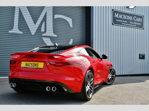 Jaguar F-Type, 5.0 V8 R-Dynamic Auto Euro 6 (s/s) 2dr, Panoramic Roof / Black Pack / Oyster Interior / 4 New Michelin Pilot Sport 4s Tyres, , Now presenting this P450 V8 rear wheel drive in one of the best colour combination in Caldera Red, Oyster Half Leather Interior and all finished off with the Black Pack. Specified with handsome selection of extras, some of these are including Heated Seats, Panoramic Roof, Reverse Assist Camera, and more... , Full Jaguar Service History:, - PDId on the 01/03/2022 at 7 Miles, - The First Service was carried out on the 15/03/2023 at 6,371 Miles, - Second on the 22/04/2024 at 15,745 Miles, - Third on the 31/07/2024 at 23,305 Miles, - Fourth on the 10/03/2025 at 31,727 Miles, , Upgrades: , - Fixed Panoramic Roof, - Exterior Black Design Pack, - Black Exterior Pack, - Tailgate Privacy Glass,, - Fixed Boot Lid Spoiler, - Grained Leather and Suedecloth - Light Oyster, - Heated Seats, - 20in Alloy Wheels - 6 Split-Spoke Style 6003 with Dark Grey Diamond Turned Finish, - 6-Way Electric Front Seats, - Adaptive Dynamics, - Android Auto, - Apple CarPlay, - Auto-Dimming Interior Rear View Mirror, - Black Brake Calipers, - Bluetooth Connectivity, - Bright Metal Pedals, - Cabin Lighting, - Chrome Exhaust Finisher, - Configurable Dynamics, - Contrast Carpet Mats, - Cruise Control with Speed Limiter, - Digital Audio Broadcast - DAB - Radio, - Ebony Morzine Headlining, - Electronic Active Differential with Torque Vectoring by Braking, - Headlights with Signature Daytime Running Lights and Adaptive Front Lighting, - LED Tail Lights, - Lane Keep Assist, - Leather Steering Wheel, - Meridian Sound System, - Metal Treadplates with R-Dynamic Branding, - Quad Exhaust Pipes - Outboard Mounted, - Rain Sensing Windscreen Wipers, - Rain-Ice-Snow Mode, - Rear Camera, - Rear Parking Aid, - Seats - Sports, - Silver Gearshift Paddles, - Automatic Climate Control, - Solar Attenuating Windscreen, - Steering Column - Electrically Adjustable, - Switchable Active Sports Exhaust, - Traffic Sign Recognition with Adaptive Speed Limiter, - Tyre Pressure Monitoring System, - Tyre Repair System, - USB and 12V Socket in Centre Console, , Comes Complete with Both Keys and is HPI Clear. All specification is supplied by third party data and can be incorrect. Macsons Cars will not accept responsibility if any of the specification is incorrect, Please ask for confirmation on options. Opening Times, 9-6pm Monday to Friday , 10-1pm Saturday , Closed Sundays. Our prices are NOT Subject to any ADMIN FEEs. , Finance Arranged Fully FCA Authorised, £46,990