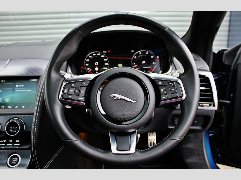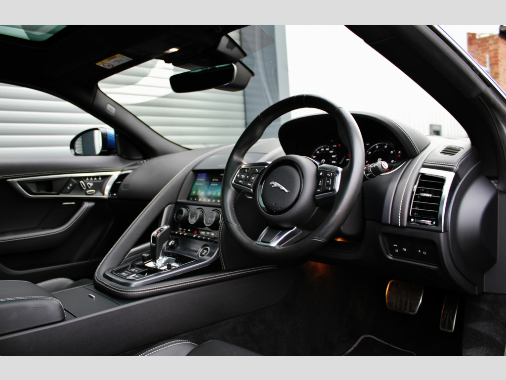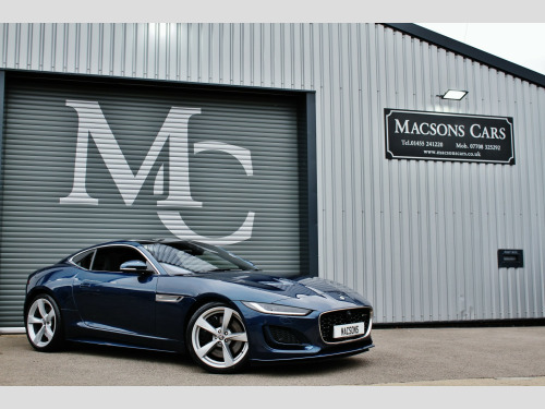 Jaguar F-Type, 5.0 V8 R-Dynamic Auto Euro 6 (s/s) 2dr, , We are very lucky to be a blue to supply this rare F-Type V8 P450 in the SVO Premium Pallet Petrolix Blue Metallic. Only Two Owners from New and supported by a Full Service History. This example is in Immaculate Condition through out and comes specified with a very high selection of extras, some of these are including Panoramic Roof, 12 Way Memory Heated and Cooled Seats. Performance Seats, Privacy Glass and much more... , Full Service History; , - First Service carried out on the 24/11/2021 at 4,221 Miles, - Second on the 03/04/2023 at 10,849 Miles, - Third on the 12/02/2024 at 18,389 Miles, - Fourth on the 17/02/2025 at 29,415 Miles, - Fifth on the 11/10/2025 at 34,740 Miles, , Upgrades; , - SVO Petrolix Blue, - 20in Alloy Wheels - 5 Spoke Style 5060 - Gloss Sparkle Silver, - Exterior Design Pack, - Fixed Panoramic Roof, - Heated Front Windscreen, - 12-Way Heated Electric Front Seats with Memory, - Heated Steering Wheel, - Extended Windsor Leather and Performance Seats - Ebony with Light Oyster Stitching, - Heated Seats, - Keyless Entry, - 12-Way Heated and Cooled Electric Front Seats with Memory, - Steering Column - Electrically Adjustable with Memory, - Power Fold - Heated Door Mirrors, - No Badges, - Tailgate Privacy Glass, - Adaptive Dynamics, - Android Auto, - Apple CarPlay, - Auto-Dimming Interior Rear View Mirror, - Black Brake Calipers, - Bright Metal Pedals, - Configurable Dynamics, - Contrast Carpet Mats, - Cruise Control with Speed Limiter, - Delta Aluminium Centre Console, - Digital Audio Broadcast - DAB - Radio, - Front Parking Aid, - LED Headlights with Signature Daytime Running Lights and Adaptive Front Lighting, - LED Tail Lights, - Lane Keep Assist, - Leather Steering Wheel, - Meridian Sound System, - Quad Exhaust Pipes - Outboard Mounted, - Rain Sensing Windscreen Wipers, - Rain-Ice-Snow Mode, - Rear Camera, - Rear Parking Aid, - Solar Attenuating Windscreen, - Steering Column - Electrically Adjustable, - Switchable Active Sports Exhaust, - Traffic Sign Recognition with Adaptive Speed Limiter, , Comes Complete with Both Keys and is HPI Clear. All specification is supplied by third party data and can be incorrect. Macsons Cars will not accept responsibility if any of the specification is incorrect, Please ask for confirmation on options. Opening Times, 9-6pm Monday to Friday , 10-1pm Saturday , Closed Sundays. Please Note Our prices are NOT Subject to any ADMIN FEEs. , Finance Arranged Fully FCA Authorised, £47,990