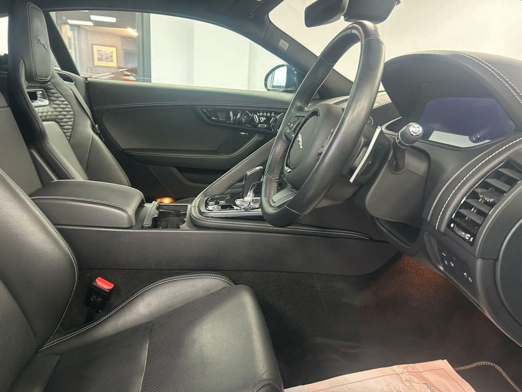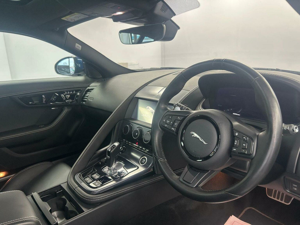 ***Panoramic Roof***Full Leather***20 Alloys***Sat Nav***Climate Control***6 Months Warranty***12Monyhs MOT***This 2021 Jaguar F-Type V8 R-Dynamic is presented with a 6 month warranty and a 12 month MOT provided on purchase, offering peace of mind. This striking sports car features a powerful 5.0L petrol engine paired with a Four Wheel Drive drivetrain, ensuring dynamic performance in all conditions. As a Euro 6 compliant vehicle, it meets modern emissions standards. The R-Dynamic trim enhances its already impressive presence, while the inclusion of LED headlights with signature daytime running lights and adaptive front lighting provides excellent visibility. Experience seamless connectivity with Apple CarPlay and Android Auto, allowing you to integrate your smartphone with the cars infotainment system. For an immersive audio experience, the F-Type is equipped with a premium Meridian Sound System. Its acceleration is a notable highlight, achieving 0-60mph in just 4.4 seconds, demonstrating its superior performance compared to other vehicles in its class. Front parking aid sensors are also fitted, making manoeuvring in tighter spaces more straightforward.