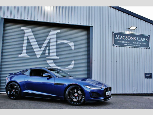 Jaguar F-Type, 5.0 V8 R-Dynamic Auto AWD Euro 6 (s/s) 2dr, Panoramic Roof / Only 13,000 Miles / AWD, , 2020 (70) , Coupe, 13,000 miles , 5000 cc , Automatic, Petrol, , Now presenting this Immaculate F-Type V8 R-Dynamic AWD with an incredible low mileage of only 9,400 Miles. Comes specified in the Beautiful Blue Fire Metallic Paint Work, complimented by the Black Exterior Pack and running on the 20 inch - 5 Spoke Style 5102 in Gloss Black Wheels. Comes with the must have optional extras:, , Upgrades: , - 6-Way Electric Front Seats, - Adaptive Dynamics, - Android Auto, - Apple CarPlay, - Black Brake Calipers, - Front Parking Aid, - LED Headlights with Signature Daytime Running Lights and Adaptive Front Lighting, - Lane Keep Assist, - Meridian Sound System, - Rear Camera, - Rear Parking Aid, - Switchable Active Sports Exhaust, - Traffic Sign Recognition with Adaptive Speed Limiter, - 20in Alloy Wheels - 5 Spoke - Style 5102 - Gloss Black, - Black Exterior Pack, - Exterior Black Design Pack, - Fixed Panoramic Roof, - Heated Front Windscreen, - Tailgate Privacy Glass, - Heated Steering Wheel , , Full Service History:, - The First Service was carried out on the 11/09/2020 at 10 Miles (PDI) by Jaguar Droitwich, - Second on the 10/09/2021 at 1,843 Miles by Jaguar Droitwich, - Third on the 10/09/2022 at 3,879 Miles by Jaguar Droitwich, - Fourth on the 08/09/2023 at 5,718 Miles by Jaguar Droitwich, - Fifth on the 17/12/2024 at 9,399 Miles by Macsons Cars, - Sixth will be carried out prior to sale. , Features - 10in Touch Pro Screen, 380mm Front and 376mm Rear Brakes, 6 Airbags, ABS - Anti-locking Braking System, Auto-Dimming Interior Rear View Mirror, Autonomous Emergency Braking, Bluetooth Connectivity, Boot Entrapment Release Lever, Bright Metal Pedals, Cabin Lighting, Chrome Exhaust Finisher, Configurable Dynamics, Connected Navigation Pro, Contrast Carpet Mats, Cruise Control with Speed Limiter, Delta Aluminium Centre Console, Deployable Boot Lid Spoiler, Digital Audio Broadcast - DAB - Radio, Driver Condition Monitor, Dynamic Stability Control - DSC, EBA - Emergency Brake Assist, EBD - Electronic Brake-Force Distribution, EPB - Electric Parking Brake, Ebony Door Release, Ebony Morzine Headlining, Electric Windows - Front, Electronic Active Differential with Torque Vectoring by Braking, F-TYPE Badge, Flush Exterior Door Handles, Front Deployable Vents, Graphite Vent Surrounds, Heated Door Mirrors, Interactive Driver Display, Jaguar Script and Leaper, LED Tail Lights, Leather Steering Wheel, Low Line Cubby Box. , Metal Treadplates with R-Dynamic Branding, Online Pack, Overhead Lighting Console, Perimeter Sensing Alarm and Immobiliser, Pollen Filter, Power Assisted Steering, Power Socket, Push Button Start, Quad Exhaust Pipes - Outboard Mounted, Rain Sensing Windscreen Wipers, Rain-Ice-Snow Mode, Remote, Remote Control Central Locking with Dead Locking and Drive-Away Locking, Seats - Sports, Silver Gearshift Paddles, Single Zone Automatic Climate Control, Smartphone Pack, Solar Attenuating Windscreen, Steering Column - Electrically Adjustable, Sun Visor with Vanity Mirrors, Twin Front Cupholders, Tyre Pressure Monitoring System, Tyre Repair System, USB and 12V Socket in Centre Console, Valet Mode. , Comes Complete with Both Keys and HPI Clear. All specification is supplied by third party data and can be incorrect. Macsons Cars will not accept responsibility if any of the specification is incorrect, Please ask for confirmation on options. Opening Times, 9-6pm Monday to Friday , 10-1pm Saturdays Saturday , Closed Sundays. Please Note Our Prices are listed competitively given the Condition, presentation and specification. Our prices are NOT Subject to any ADMIN FEEs.