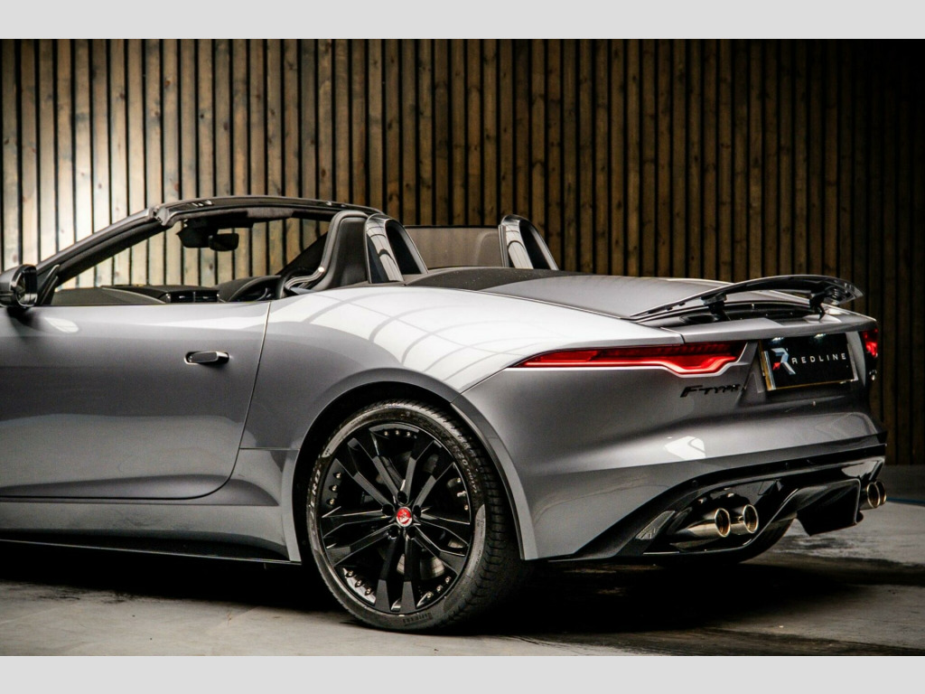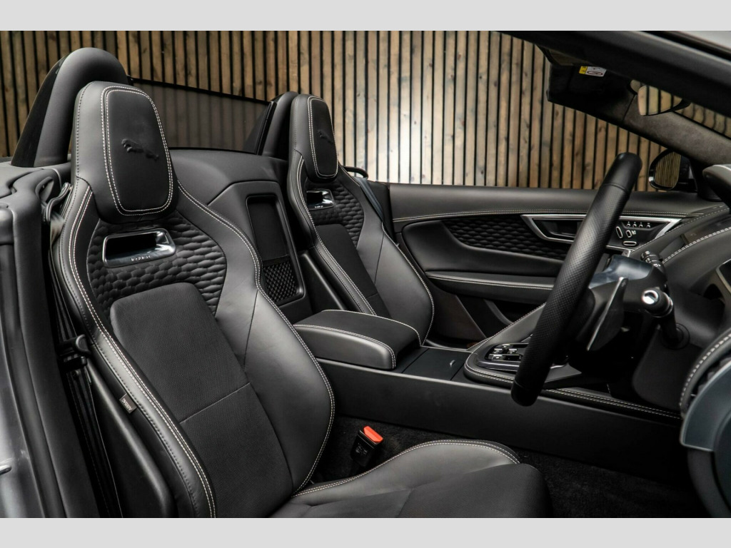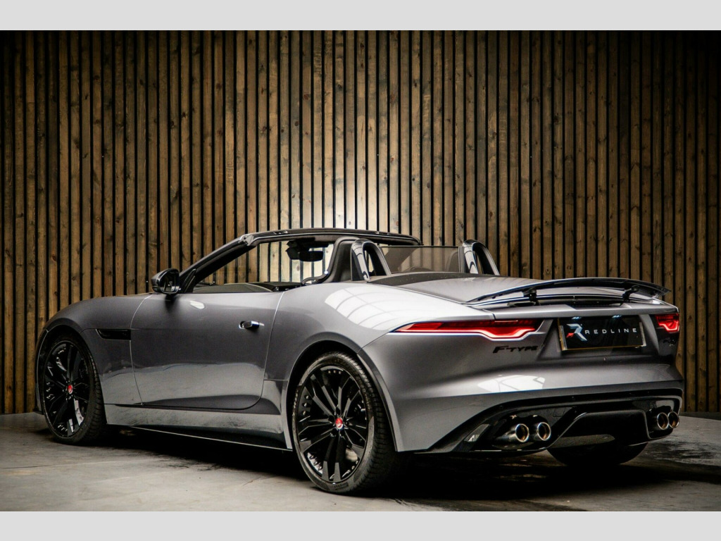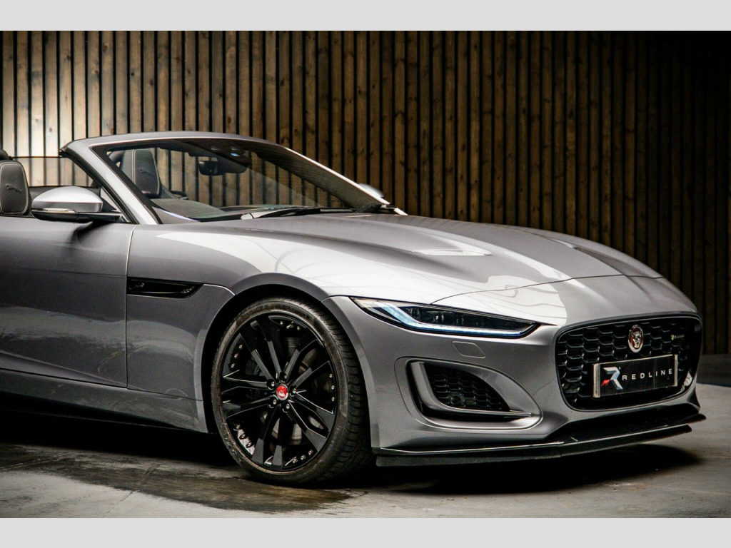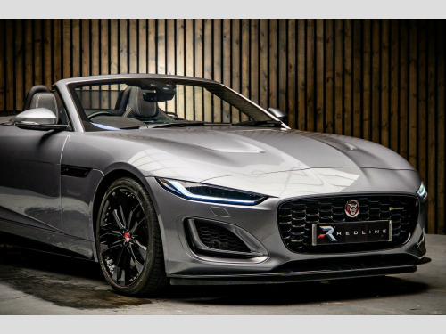 Experience the exhilarating performance of this 2022 Jaguar F-Type V8 R Dynamic Black, a true testament to British engineering. This striking model boasts a powerful 5.0 litre petrol engine, paired with a sophisticated four wheel drive system for exceptional handling in all conditions. As a Euro 6 compliant vehicle, it meets stringent emission standards. Inside, you'll find a luxurious cabin enhanced by the Meridian Surround Sound System, offering an immersive audio experience. Practicality is also key, with front and rear parking aids, including parking assistance sensors, making manoeuvring effortless. Stay connected on the go with seamless Bluetooth connectivity and enjoy the convenience of Android Auto integration.The Jaguar F-Type V8 R Dynamic Black truly stands out from the crowd. Its impressive acceleration, reaching 0-60mph in just 4.4 seconds, highlights its dynamic capabilities and superior performance compared to other vehicles in its class. This remarkable speed and responsiveness are indicative of the advanced engineering that Jaguar is renowned for, providing a driving experience that is both thrilling and refined.. 10in Touch Pro Screen, 12-Way Heated and Cooled Electric Front Seats with Memory, 20in Alloy Wheels - 5 Split-Spoke Style 5039 with Gloss Black Finish, 380mm Front and 376mm Rear Brakes, 4 Airbags, ABS - Anti-locking Braking System, Adaptive Dynamics, Aluminium Gearshift Paddles, Android Auto, Apple CarPlay, Auto-Dimming Interior Rear View Mirror, Auto-Dimming Power Fold-Heated Door Mirrors with Memory, Autonomous Emergency Braking, Black Brake Calipers, Black Exterior Pack, Bluetooth Connectivity, Bright Metal Pedals, Cabin Lighting, Carpet Mats - Nubuck Edged, Configurable Dynamics, Connected Navigation Pro, Convertible Roof - Full Electric Black, Cruise Control with Speed Limiter, Delta Aluminium Centre Console, Deployable Boot Lid Spoiler, Digital Audio Broadcast - DAB - Radio, Dynamic Stability Control - DSC, EBA - Emergency Brake Assist, EBD - Electronic Brake-Force Distribution, EPB - Electric Parking Brake, Ebony Suedecloth Headlining, Electric Windows - Front, Electronic Active Differential with Torque Vectoring by Braking, F-TYPE Badge, First Edition Steering Wheel, Flush Exterior Door Handles, Front Deployable Vents, Front Parking Aid, Illuminated Metal Treadplates with Brand-Name Script, Interactive Driver Display, Jaguar Script and Leaper, Keyless Entry, LED Headlights with Signature Daytime Running Lights and Adaptive Front Lighting, LED Tail Lights, Lane Keep Assist, Low Line Cubby Box, Meridian Sound System, Monogram Embossed Suedecloth Binnacle, Monogram Embroidery on Seats and Door Insert, Online Pack, Perimeter Sensing Alarm and Immobiliser, Pollen Filter, Power Assisted Steering, Power Socket, Push Button Start, R-Dynamic Exterior Body Kit, Rain Sensing Windscreen Wipers, Rain-Ice-Snow Mode, Rear Camera, Rear Parking Aid, Remote, Remote Control Central Locking with Dead Locking and Drive-Away Locking, Roll-Over Protection System, Single Zone Automatic Climate Control, Smartphone Pack, Solar Attenuating Windscreen, Steering Column - Electrically Adjustable with Memory, Suedecloth Sun Visors with Vanity Mirrors - Ebony, Switchable Active Sports Exhaust, Traffic Sign Recognition with Adaptive Speed Limiter, Twin Front Cupholders, Tyre Pressure Monitoring System, Tyre Repair System, USB and 12V Socket in Centre Console, Valet Mode, Wind Deflector, Eiger Grey, Heated Front Windscreen, Meridian Surround Sound System.