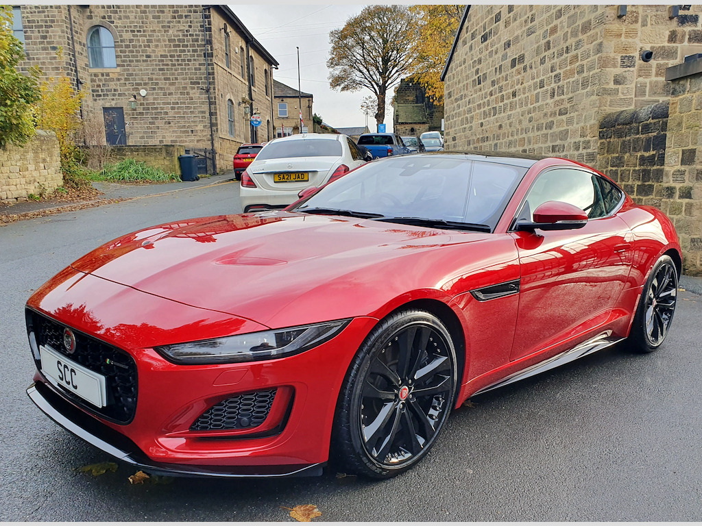 Introducing the stunning 2 owner full Jag history. **ALL WHEEL DRIVE** F-Type, now available for £52,995 at SCC Leeds. Boasting the powerful 5.0L engine that delivers an exhilarating 444 BHP, allowing you to accelerate from 0-62mph in just 4.4 seconds. Finished in a striking Italian Race Red (AKA Firenze Red),. Apart from the outstanding look to this car, one of the standout features is the Panoramic Roof, which floods the cabin with natural light. For audiophiles, the upgraded Meridian Surround Sound System offers an unparalleled audio experience. Coupled with the 10-inch Touch Pro Screen, accessing your navigation and entertainment options has never been easier or more intuitive. Another standout feature are the Performance Seats and rare to have them with the 12-Way, Memory, Heated and Cooled Electric Front Seats with Memory ensure that you and your passenger can find the perfect seating position. Wrapped in Windsor Leather Performance in Ebony with Light Oyster Stitch, these seats provide not only luxury but also exceptional support during spirited drives. With additional features like the 20-inch Alloy Wheels, Adaptive Dynamics, and Configurable Dynamics, this Jaguar is designed for both style and performance. Each drive in the F-Type promises to be an unforgettable experience. Our 2 owner car comes complete with a FULL JAGUAR main dealer history file. Last serviced in October this year that also included final drive and transfer case services. The tyres are all matched Pirelli P Zero. The rear 2 are on 5mm and the fronts are new at 7mm. It had an advisory free MOT by Jaguar last month (October) and no advisory items noted. 2 Keys. We are validating this at time of putting the advert together BUT we think there are a number of warranties set up on this car that we may be able to pass on... 2 year warranty (expires 12/10/2026), MOT cover 12/10/2026, Jaguar Assistance 12/10/2026. Don't miss your chance to own this extraordinary vehicle. Contact SCC Leeds today at 01943884551 to arrange a test drive and experience the thrill of the Jaguar F-Type for yourself. 10in Touch Pro Screen,12-Way Heated and Cooled Electric Front Seats with Memory,20in Alloy Wheels - 5 Split-Spoke Style 5039 with Gloss Black Finish,380mm Front and 376mm Rear Brakes,6 Airbags,ABS - Anti-locking Braking System,Adaptive Dynamics,Aluminium Gearshift Paddles,Android Auto,Apple CarPlay,Auto-Dimming Interior Rear View Mirror,Auto-Dimming Power Fold-Heated Door Mirrors with Memory,Autonomous Emergency Braking,Black Brake Calipers,Black Exterior Pack,Bluetooth Connectivity,Bright Metal Pedals,Cabin Lighting,Carpet Mats - Nubuck Edged,Configurable Dynamics,Connected Navigation Pro,Cruise Control with Speed Limiter,Delta Aluminium Centre Console,Deployable Boot Lid Spoiler,Digital Audio Broadcast - DAB - Radio,Driver Condition Monitor,Dynamic Stability Control - DSC,EBA - Emergency Brake Assist,EBD - Electronic Brake-Force Distribution,EPB - Electric Parking Brake,Ebony Suedecloth Headlining,Electric Windows - Front,Electronic Active Differential with Torque Vectoring by Braking,F-TYPE Badge,Flush Exterior Door Handles,Front Deployable Vents,Front Parking Aid,Illuminated Metal Treadplates with Brand-Name Script,Interactive Driver Display,Jaguar Script and Leaper,Keyless Entry,LED Tail Lights,Lane Keep Assist,Limited Edition Steering Wheel,Low Line Cubby Box,Meridian Sound System,Monogram Embossed Suedecloth Binnacle,Monogram Embroidery on Seats and Door Insert,Online Pack,Perimeter Sensing Alarm and Immobiliser,Power Assisted Steering,Power Socket,Premium LED Headlights with Signature DRL,Push Button Start,R-Dynamic Exterior Body Kit,Rain Sensing Windscreen Wipers,Rain-Ice-Snow Mode,Rear Camera,Rear Parking Aid,Remote,Remote Control Central Locking with Dead Locking and Drive-Away Locking,Secure Tracker (12 Month Subscription From New),Single Zone Automatic Climate Control,Smartphone Pack,Solar Attenuating Windscreen,Steering Column - Electrically Adjustable with Memory,Suedecloth Sun Visors with Vanity Mirrors - Ebony,Switchable Active Sports Exhaust,Traffic Sign Recognition with Adaptive Speed Limiter,Twin Front Cupholders,Tyre Pressure Monitoring System,Tyre Repair System,USB and 12V Socket in Centre Console,Valet Mode,Firenze Red,Fixed Panoramic Roof,Tailgate Privacy Glass,Meridian Surround Sound System,Windsor Leather Performance Seats - Ebony with Light Oyster Stitch