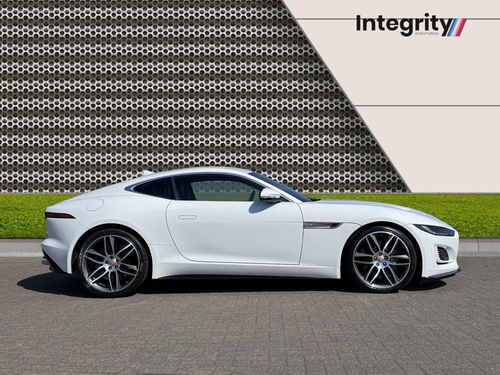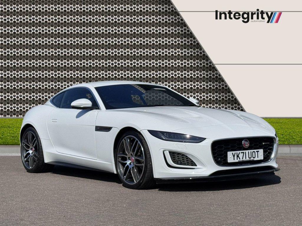 At Integrity Automotive, we are excited to offer this stunning 2021 Jaguar F-TYPE 5.0 V8 R-Dynamic Coupe, a performance-driven British sports car that blends power, luxury, and presence into a compelling package. With just 18,303 miles, one owner from new, and a Jaguar main dealer service at 11,170 miles, this example is in excellent condition both mechanically and cosmetically. Finished in classic Fuji White with a black leather interior, it delivers a striking yet timeless appearance that perfectly suits its dynamic personality. Powered by a 5.0-litre supercharged V8, the R-Dynamic variant delivers a thrilling 444bhp through a slick automatic transmission, offering searing acceleration and a spine-tingling exhaust note. According to Top Gear, "The F-TYPE is a genuinely exciting car to drive. It has charm, drama, and now, a chassis that can back up the performance." It's a sentiment echoed by Evo Magazine, which says the V8-powered F-TYPE "feels alive in your hands" and delivers "pure sports car character with every press of the throttle." While the performance is headline-grabbing, the F-TYPE is also built to be used and enjoyed. The interior is thoughtfully laid out, with supportive sports seats, driver-focused controls, and Jaguar's Touch Pro infotainment system providing a blend of luxury and usability. Auto Express notes that "Jaguar has ensured the F-TYPE feels special every time you drive it, not just when you're pus 10in Touch Pro Screen, 20in Alloy Wheels - 6 Split-Spoke Style , 380mm Front and 376mm Rear Brakes, 6 Airbags, 6-Way Heated Electric Front Seats, ABS - Anti-locking Braking System, Adaptive Dynamics, Android Auto, Apple CarPlay, Auto-Dimming Interior Rear View Mirror, Autonomous Emergency Braking, Black Brake Calipers, Bluetooth Connectivity, Bright Metal Pedals, Cabin Lighting, Configurable Dynamics, Connected Navigation Pro, Contrast Carpet Mats, Cruise Control with Speed Limiter, Delta Aluminium Centre Console, Deployable Boot Lid Spoiler, Digital Audio Broadcast - DAB - Radio, Driver Condition Monitor, Dynamic Stability Control - DSC, EBA - Emergency Brake Assist, EBD - Electronic Brake-