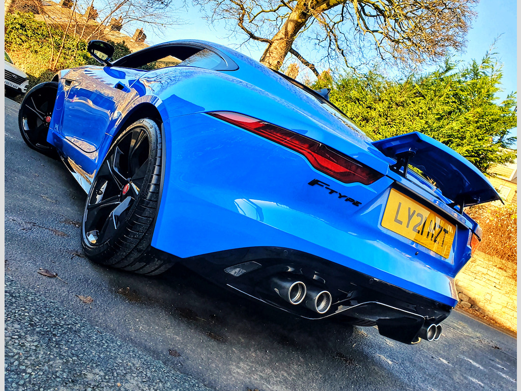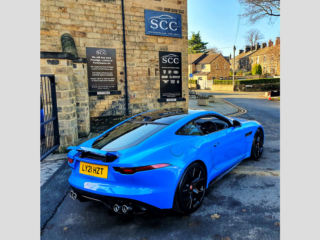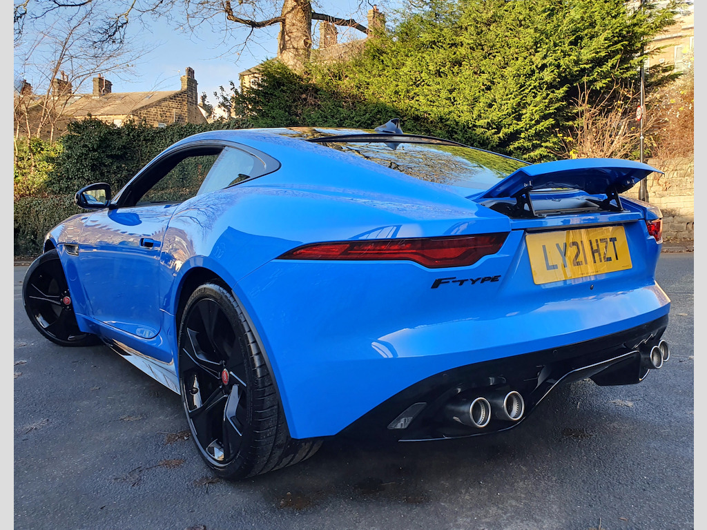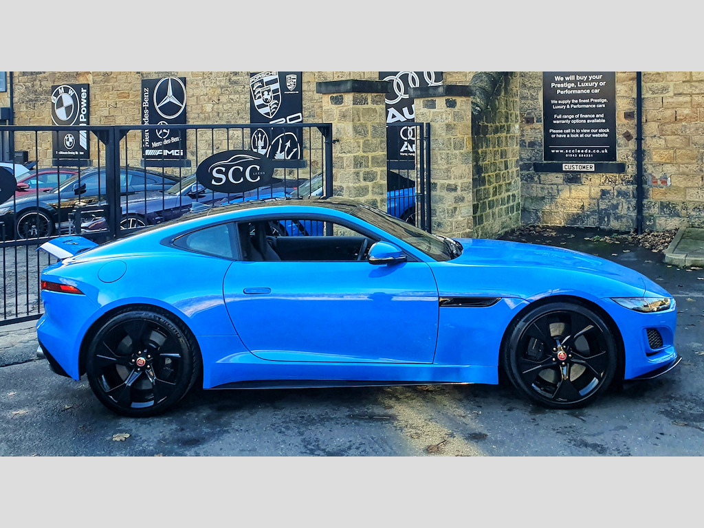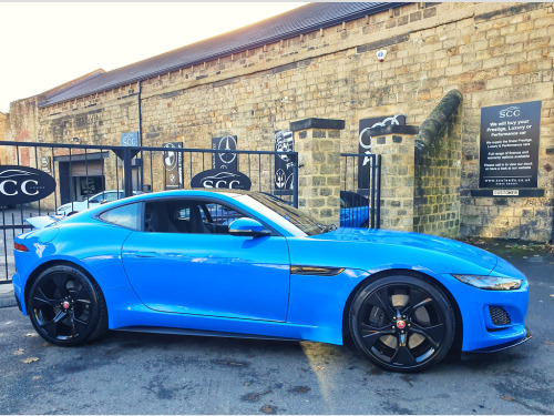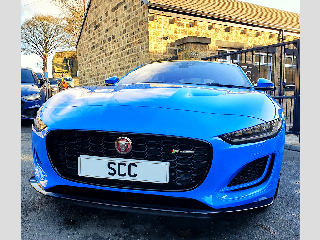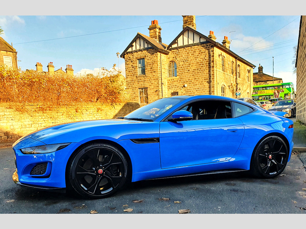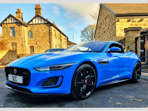 Experience the thrill of driving the Jaguar F-Type Coupe, finished in the striking and highly desirable French Racing Blue, now available for £50,995. FULL JAGUAR MAIN DEALER HISTORY INC 2025. **4 new tyres just fitted!** This F-Type is the exclusive Reims Edition, a limited-run model created specifically for the UK market — only 150 units were ever made. The name “Reims” pays tribute to Jaguar’s rich racing heritage, and in particular, the D-Type’s maiden victory at the 12?Hours of Reims in 1954, a landmark moment in Jaguar’s competition history. Under this special edition, the F-Type comes in a unique French Racing Blue paint — reserved for the Reims Edition only — paired with the Exterior Black Pack (gloss-black vents, badging, and grille). Inside, you get an Ebony-on-Ebony interior with the Interior Black Pack, along with premium inclusions like a fixed panoramic roof, heated seats, heated steering wheel, and the Climate Pack (two-zone climate control and heated windscreen) — all as standard. In short, the Reims Edition isn’t just about looks — it’s a nod to Jaguar’s storied past, wrapped in a highly desirable, well-equipped modern sports car. Powered by a 5.0L V8 engine delivering 444 BHP, this F-Type accelerates from 0–62 mph in just 4.4 seconds, offering an exhilarating driving experience that combines raw power with refined handling. Stopping power and control are exceptional thanks to advanced 380mm front and 376mm rear brakes, ensuring precise and confident braking. The 20-inch gloss black alloy wheels not only enhance the car’s bold, sporty appearance but also contribute to its dynamic on-road performance. Inside, comfort and technology are front and centre. The 6-way heated electric front seats provide excellent support for every journey, while the 10-inch Touch Pro Screen offers seamless access to entertainment, navigation, and connectivity features, keeping you informed and in control at all times. This Jaguar F-Type blends performance, luxury, and style, making every drive a memorable experience. Don’t miss your chance to own this remarkable coupe. Contact us today to book a test drive or call 01943 884551. 10in Touch Pro Screen,20in Alloy Wheels - 5 Spoke - Style 5102 - Gloss Black,380mm Front and 376mm Rear Brakes,6 Airbags,6-Way Heated Electric Front Seats,ABS - Anti-locking Braking System,Adaptive Dynamics,Android Auto,Apple CarPlay,Auto-Dimming Interior Rear View Mirror,Autonomous Emergency Braking,Black Brake Calipers,Black Pack - Interior,Bluetooth Connectivity,Boot Entrapment Release Lever,Bright Metal Pedals,Cabin Lighting,Chrome Exhaust Finisher,Climate Pack,Configurable Dynamics,Connected Navigation Pro,Contrast Carpet Mats,Cruise Control with Speed Limiter,Delta Aluminium Centre Console,Deployable Boot Lid Spoiler,Digital Audio Broadcast - DAB - Radio,Driver Condition Monitor,Dynamic Stability Control - DSC,EBA - Emergency Brake Assist,EBD - Electronic Brake-Force Distribution,EPB - Electric Parking Brake,Ebony Door Release,Ebony Morzine Headlining,Electric Windows - Front,Electronic Active Differential with Torque Vectoring by Braking,Exterior Black Design Pack,F-TYPE Badge,Fixed Panoramic Roof,Flush Exterior Door Handles,Front Deployable Vents,Front Parking Aid,Graphite Vent Surrounds,Heated Door Mirrors,Interactive Driver Display,Jaguar Script and Leaper,LED Headlights with Signature Daytime Running Lights and Adaptive Front Lighting,LED Tail Lights,Lane Keep Assist,Leather Steering Wheel,Low Line Cubby Box,Meridian Sound System,Metal Treadplates with R-Dynamic Branding,Online Pack,Overhead Lighting Console,Perimeter Sensing Alarm and Immobiliser,Pollen Filter,Power Assisted Steering,Power Socket,Push Button Start,Quad Exhaust Pipes - Outboard Mounted,Rain Sensing Windscreen Wipers,Rain-Ice-Snow Mode,Rear Camera,Rear Parking Aid,Remote,Remote Control Central Locking with Dead Locking and Drive-Away Locking,Seats - Sports,Silver Gearshift Paddles,Smartphone Pack,Solar Attenuating Windscreen,Steering Column - Electrically Adjustable,Sun Visor with Vanity Mirrors,Switchable Active Sports Exhaust,Tailgate Privacy Glass,Traffic Sign Recognition with Adaptive Speed Limiter,Twin Front Cupholders,Tyre Pressure Monitoring System,Tyre Repair System,USB and 12V Socket in Centre Console,Valet Mode,French Racing Blue