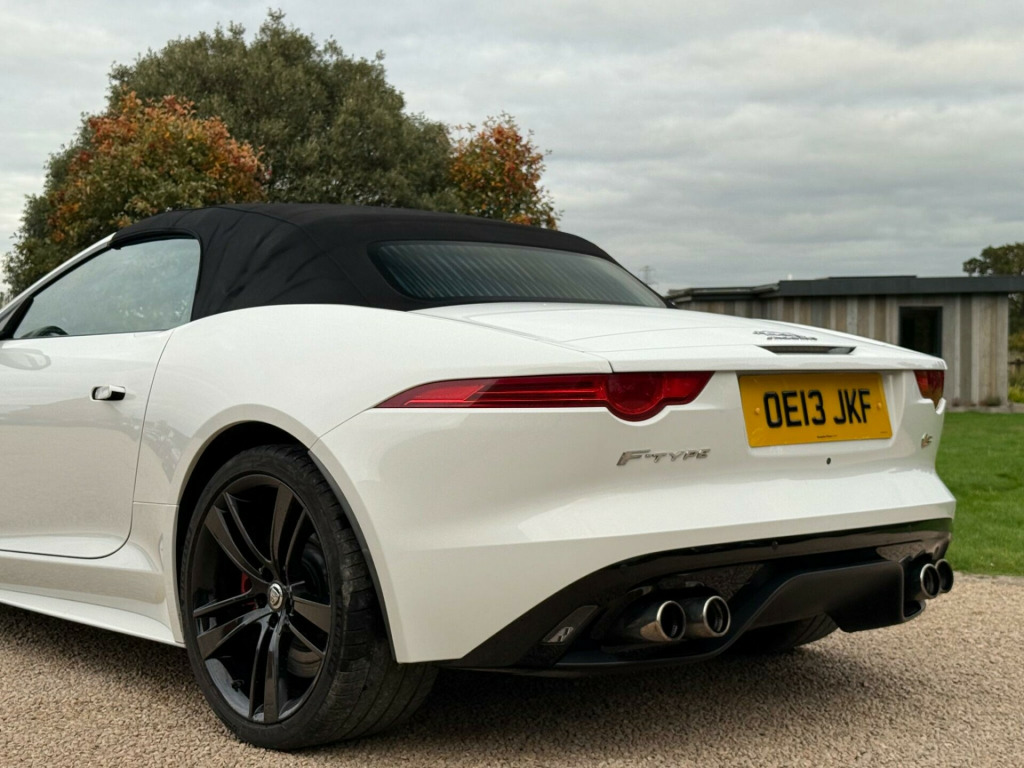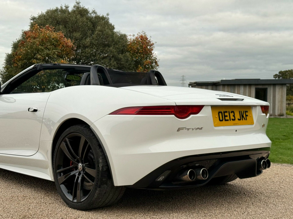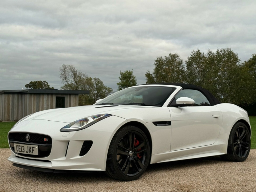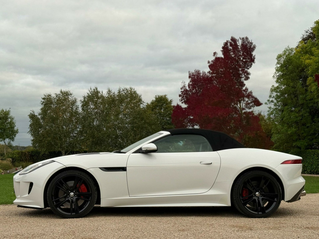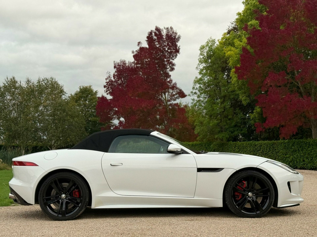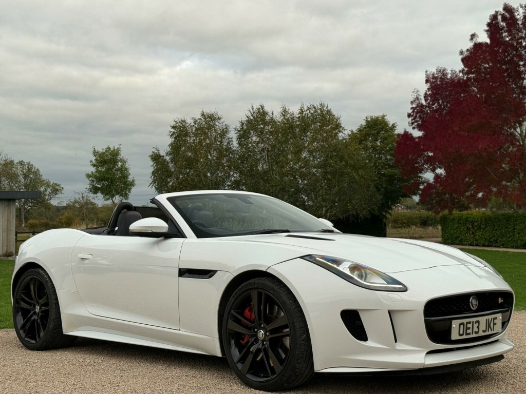 Manor Cars are proud to offer this wonderful example of the Jaguar F Type V8 S. Finished in White with a Black Heated Leather Interior. Complete with 2 keys, Full Jaguar Main Dealer Service History (10 Services), as well as being in a fantastic condition inside and out. With almost £8,000 of factory options, including: Seat Memory Pack (£1,150), Premium Leather Interior (£995), Extended Leather Pack (£880), Meridian 380W Premium Sound System (£850), 20'' Cyclone Alloy Wheels in Black (£750), Reverse Traffic Detection (£660), Tyre Pressure Monitoring (£450), Switchable Active Sports Exhaust (£350), Reverse Park Camera with Guidance (£255), Heated Windscreen with Timer (£250), Heated Leather Steering Wheel with Paddles (£250), Front Parking Aid (£245), Rain Sensing Wipers (£165) and much more.....Buy with confidence from our friendly, family run business with flexible viewing times 7 days a week, please call for a viewing. All our vehicles are thoroughly checked HPi clear, complete with a certificate. Comprehensive warranty included. We offer a wide range of finance options with low rates including HP, PCP and can also cater for poor credit circumstances. All major credit/debit cards accepted, All part exchanges are welcome in alloy wheels - silver turbine, abs - anti-locking braking system, asl - automatic speed limiter, active sports exhaust, adaptive dynamics, air particle and odour filtration, airbags - driver, airbags - front side, airbags - passenger, airbags - side curtain, auto-dimming interior rear view mirror, automatic headlight washers, auxiliary power sockets, bluetooth telephone connectivity, cd player - am/fm radio, centre console - dark hex aluminium with s graphic, configurable ambient interior lighting - dual colour with mixing pallete, convertible roof - full electric black, cruise control, dab radio receiver, door mirrors - electric adjustment-heated with side repeaters, dynamic stability control and winter mode, eba - emergency brake assist, ebd - electronic brake-force distribution, epb - electronic parking brake - drive away release, electric windows - front with one touch open and close-anti trap, electronic active differential, header and headlining - jet, headlights - bi-function hid xenon with led daytime running lights, jaguar 180w sound system - 6 speakers, jaguar super performance braking system with red calipers, jaguar tyre repair system, navigation with route guidence with traffic messaging channel, pedestrian contact sensing and deployable bonnet, power steering - speed sensitive, rear parking aid with touch screen visual indicator, rear spoiler - body coloured, remote control central locking with dead locking and drive-away locking, roll over protection bars - gloss black, s badge, seats - electric driver-passenger adjustment - 6x6 way, single zone automatic climate control, sports sunvisor, sports suspension, steering column - electrically adjustable, steering wheel - 3-spoke-leather-shift paddles, tinted rear window, twin front cupholders, usb and aux socket in centre cubby box, volumetric sensing, seat memory pack, premium leather - performance seats - jet, extended leather pack, audio equipment - meridian audio system 380w-radio-cd-mp3, reverse traffic detection with closing vehicle sensing, tyre pressure monitoring system, switchable active sports exhaust, reverse park camera with guidance, windscreen - heated with timer, steering wheel - 3-spoke leather - heated, heated front seats, front parking aid, rain sensing windscreen wipers, interior stowage - lockable with cover, valet mode - lockable trunk - stowage - glove box, carpet mats - premium, air quality sensor