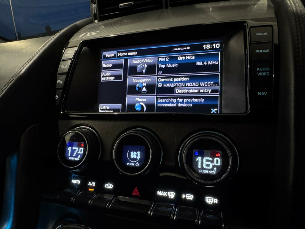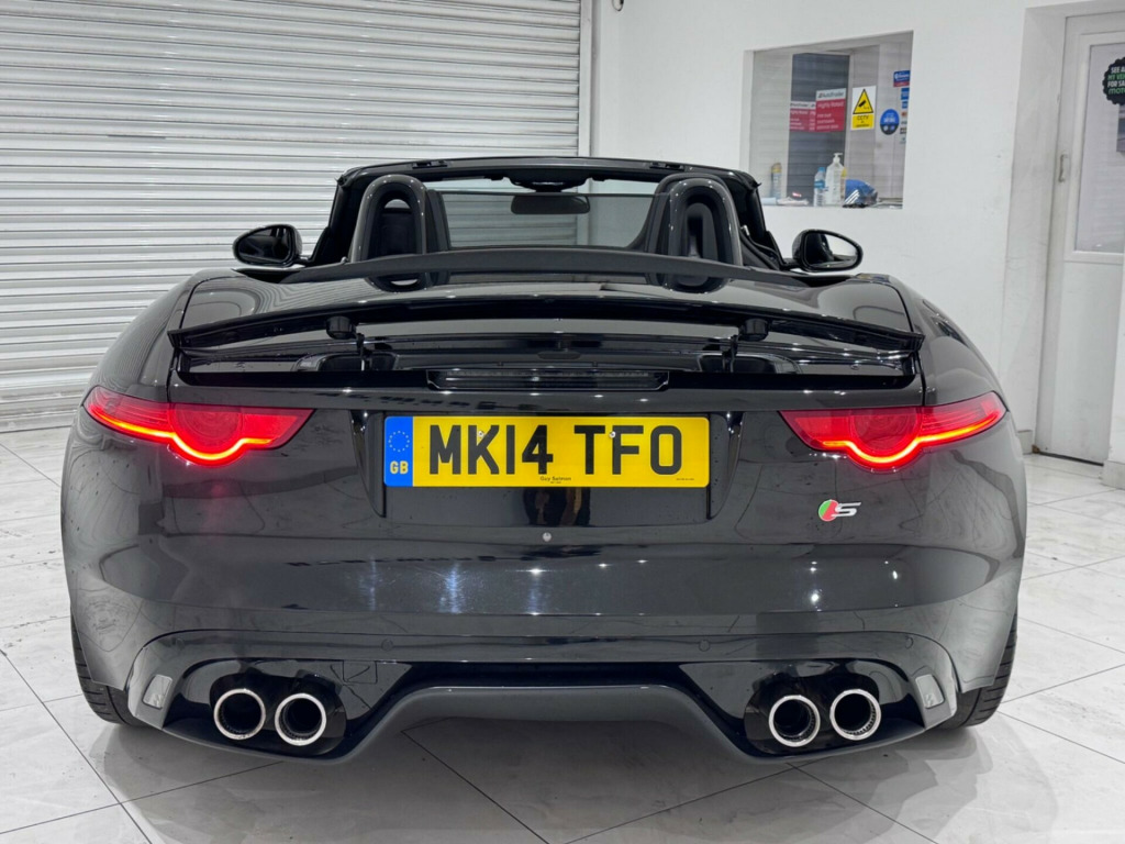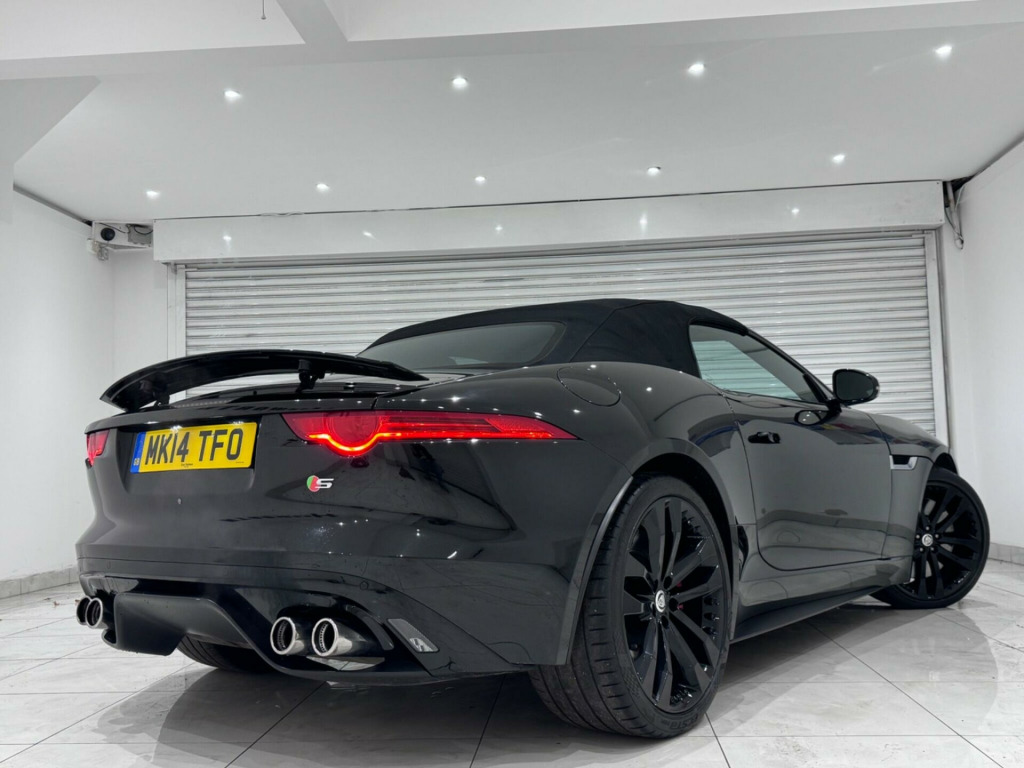 *****PLEASE VISIT OUR WEBSITE TO CALCULATE YOUR NEW CAR FINANCE*****WE ARE ''FCA'' REGULATED COMPANY**FINANCE AVAILABLE**P/X WELCOME**METALLIC BLACK**MOT TILL OCTOBER 2026**HPI CLEAR (report available)**FULL SERVICE HISTORY (9 services)**FROM 3 MONTHS TO 24 MONTHS WARRANTY AVAILABLE**HEALTH CHECKED***Aux Input,Full Leather Seats,Alloys,Air condition,Alarm,Electric Windows,Cruise Control,Sat Navigation,Reverse Camera,Electric Spoiler,Electric Seats,Meridian Sound System,Electric Mirrors,Heated Seats,Day Running Lights,Xenon Lights,Trip Computer,Climate Control,Cd Player,Remote Central Locking,Dab Radio,Privacy Glass,Parking Sensors,Rain Sensor,Full Electric Roof,Cup Holder**WE ACCEPT ALL MAJOR CREDIT AND DEBIT CARDS**AMERICAN EXPRESS WELCOME** in alloy wheels - silver turbine, abs - anti-locking braking system, asl - automatic speed limiter, active sports exhaust, adaptive dynamics, air particle and odour filtration, airbags - driver, airbags - front side, airbags - passenger, airbags - side curtain, auto-dimming interior rear view mirror, automatic headlight washers, auxiliary power sockets, bluetooth telephone connectivity, cd player - am/fm radio, centre console - dark hex aluminium with s graphic, configurable ambient interior lighting - dual colour with mixing pallete, convertible roof - full electric black, cruise control, dab radio receiver, door mirrors - electric adjustment-heated with side repeaters, dynamic stability control and winter mode, eba - emergency brake assist, ebd - electronic brake-force distribution, epb - electronic parking brake - drive away release, electric windows - front with one touch open and close-anti trap, electronic active differential, header and headlining - jet, headlights - bi-function hid xenon with led daytime running lights, jaguar 180w sound system - 6 speakers, jaguar super performance braking system with red calipers, jaguar tyre repair system, navigation with route guidence with traffic messaging channel, pedestrian contact sensing and deployable bonnet, power steering - speed sensitive, rear parking aid with touch screen visual indicator, rear spoiler - body coloured, remote control central locking with dead locking and drive-away locking, roll over protection bars - gloss black, s badge, seats - electric driver-passenger adjustment - 6x6 way, single zone automatic climate control, sports sunvisor, sports suspension, steering column - electrically adjustable, steering wheel - 3-spoke-leather-shift paddles, tinted rear window, twin front cupholders, usb and aux socket in centre cubby box, volumetric sensing, audio equipment - meridian audio system 380w-radio-cd-mp3, satellite navigation, tyre pressure monitoring system, automatic headlight on, headlights - adaptive front lighting-cornering lights-automatic levelling, parking pack, 20in alloy wheels - black tornado, air quality sensor, black pack - interior, dual zone automatic climate control, headlining - jet leather