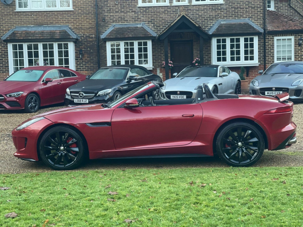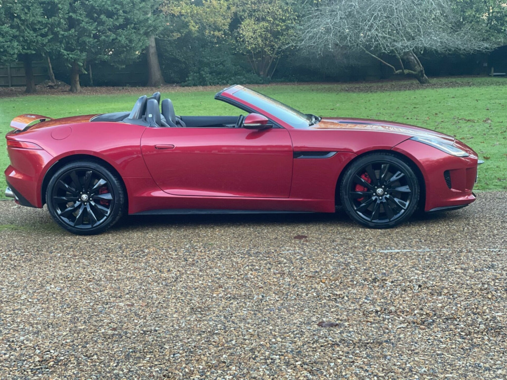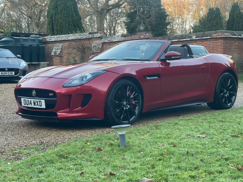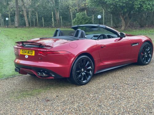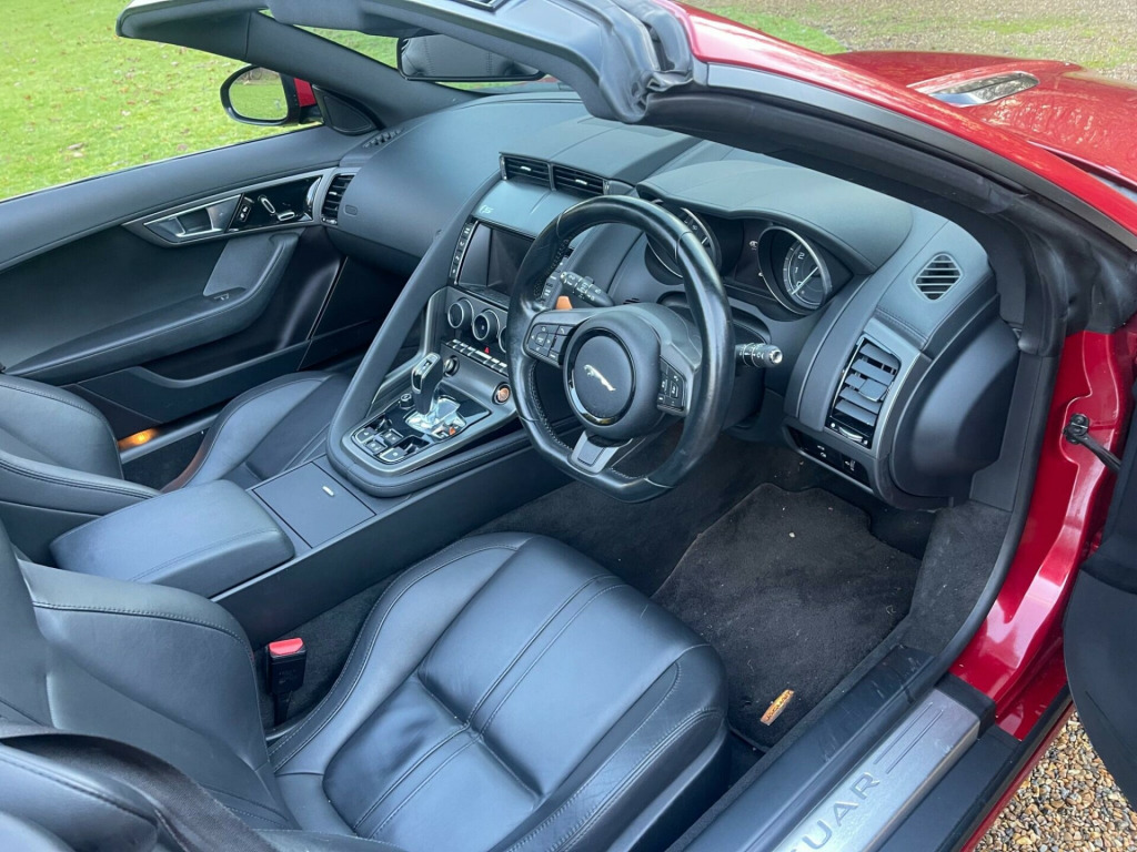 A Truly OUTSTANDING EXAMPLE !!. Service history. Wheels recently refurbished and fitted with new tyres. Sounds Amazing and drives as good as it gets. Fitted with SAT NAV, Reverse camera, Front & Rear parking sensors, Electric Seats, Heated Seats, Heated Screen, DAB Radio, Bluetooth etc. This 2014 Jaguar F Type V8 S presents an exceptional opportunity with remarkably low mileage for its age, having covered just 34,000 miles. This striking example is finished in the S trim and boasts a powerful 5.0L petrol engine. It comes equipped with a host of desirable features, including automatic headlights, the Jaguar Smart Key System for keyless entry, and a Tyre Pressure Monitoring System for added peace of mind. The vehicle also features eye catching 20 inch Black Cyclone alloy wheels and the desirable Black Pack, enhancing its already impressive visual appeal.The performance of this F Type V8 S is truly remarkable, highlighted by its swift 0-60mph acceleration time of just 4.2 seconds. This impressive figure indicates a level of responsiveness and power that sets it apart from many other vehicles in its class. Combined with its sophisticated Jaguar engineering and luxurious S trim, this F Type offers a compelling driving experience that is both exhilarating and refined. verse park camera with guidance, satellite navigation, tyre pressure monitoring system, front parking aid, automatic headlight on, jaguar smart key system with keyless entry, 20in alloy wheels - black cyclone, black pack, door mirrors - electric adjustment-heated-auto dimming-powerfolding-side repeaters, switchable active sports exhaust, windscreen - heated with timer, black pack - interior, leather - jet, rain sensing windscreen wipers, abs - anti-locking braking system, asl - automatic speed limiter, active sports exhaust, adaptive dynamics, air particle and odour filtration, airbags - driver, airbags - front side, airbags - passenger, airbags - side curtain, auto-dimming interior rear view mirror, automatic headlight washers, auxiliary power sockets, bluetooth telephone connectivity, cd player - am/fm radio, centre console - dark hex aluminium with s graphic, configurable ambient interior lighting - dual colour with mixing pallete, convertible roof - full electric black, cruise control, dab radio receiver, door mirrors - electric adjustment-heated with side repeaters, dynamic stability control and winter mode, eba - emergency brake assist, ebd - electronic brake-force distribution, epb - electronic parking brake - drive away release, electric windows - front with one touch open and close-anti trap, electronic active differential, header and headlining - jet, headlights - bi-function hid xenon with led daytime running lights, jaguar 180w sound system - 6 speakers, jaguar super performance braking system with red calipers, jaguar tyre repair system, navigation with route guidence with traffic messaging channel, pedestrian contact sensing and deployable bonnet, power steering - speed sensitive, rear parking aid with touch screen visual indicator, rear spoiler - body coloured, remote control central locking with dead locking and drive-away locking, roll over protection bars - gloss black, s badge, seats - electric driver-passenger adjustment - 6x6 way, single zone automatic climate control, sports sunvisor, sports suspension, steering column - electrically adjustable, steering wheel - 3-spoke-leather-shift paddles, tinted rear window, twin front cupholders, usb and aux socket in centre cubby box, volumetric sensing, trip computer, esp - electronic stability control, traction control, red brake calipers, wind deflector, seats - sports