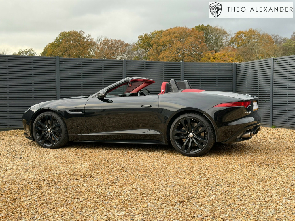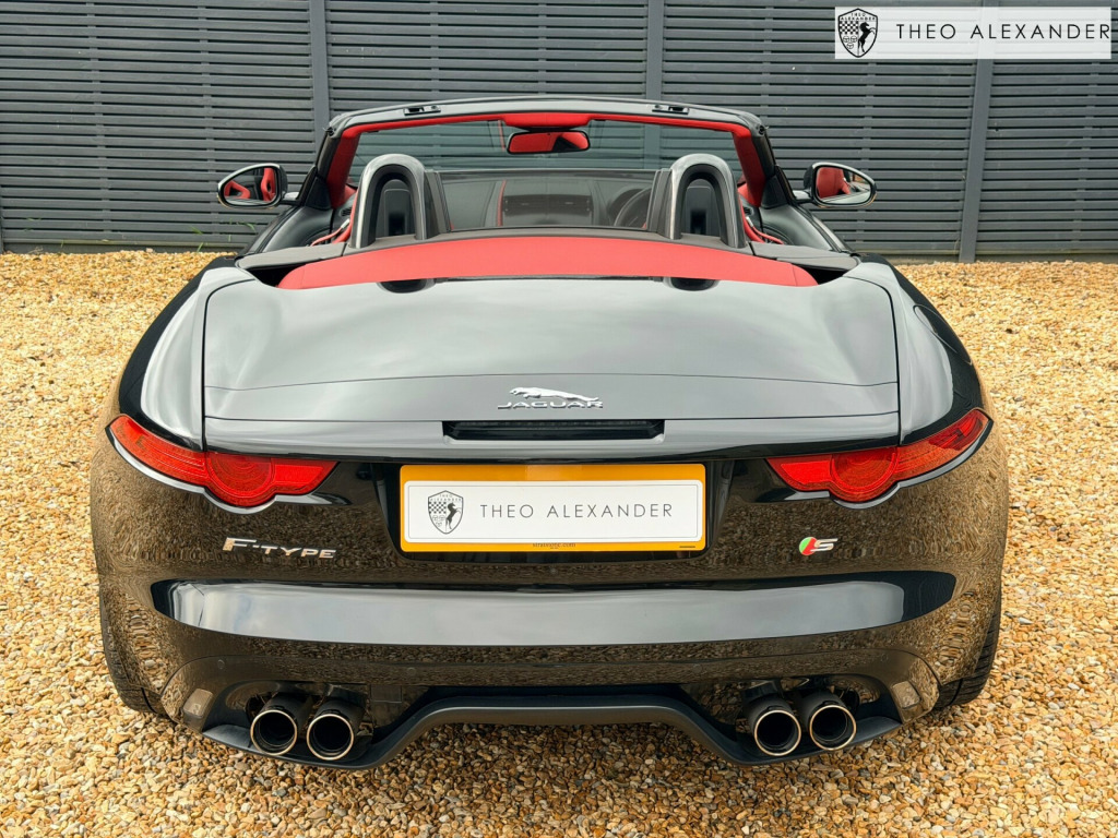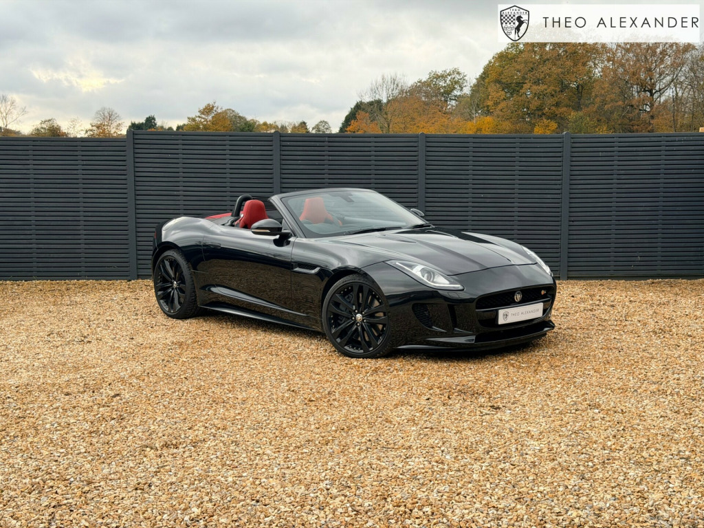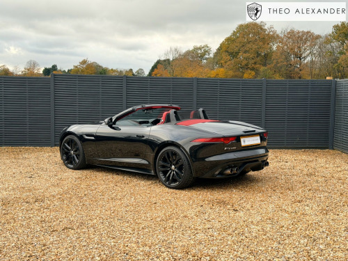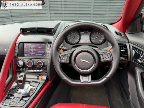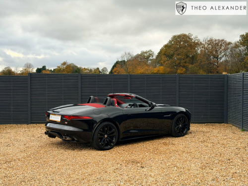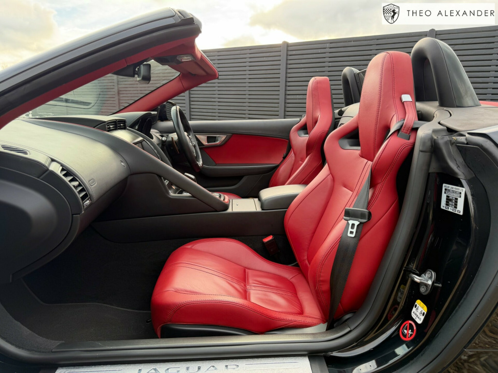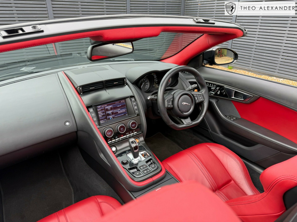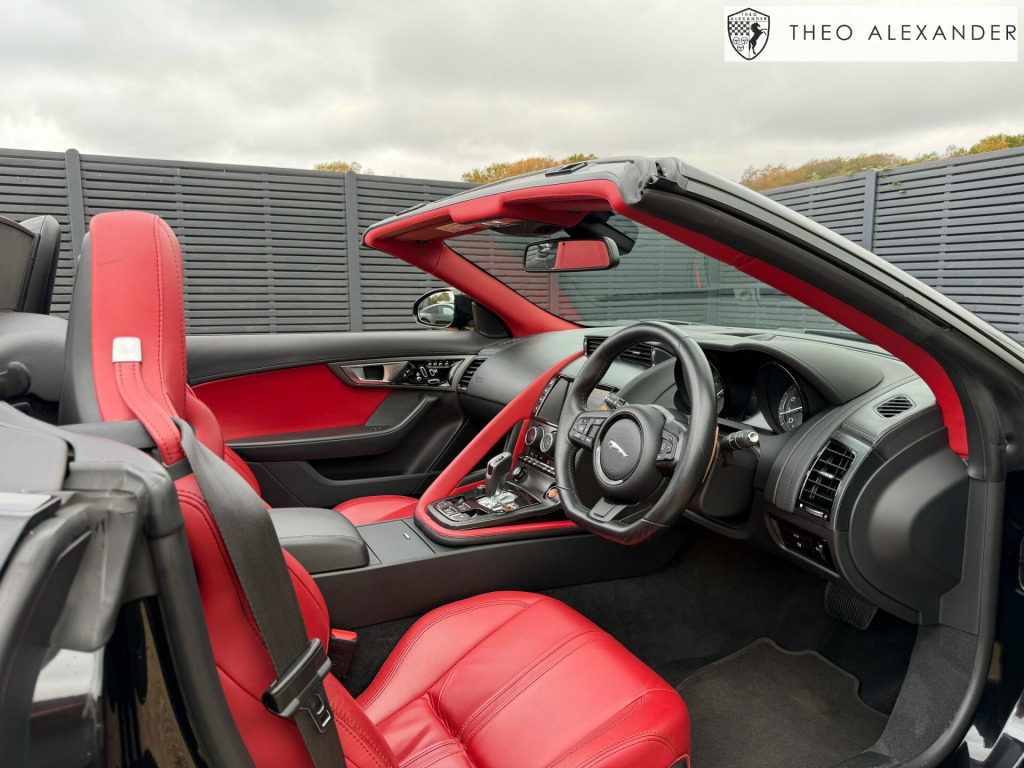 Theo Alexander are pleased to offer this Jaguar F-type S 5.0 V8 Supercharged., presented in Black Metallic with Red Premium leather interior, complete with full service history.This Car Comes With Ultimate Black Metallic Red premium Red LeatherRed Cabriolet Roof Meridian Sound Black Pack 20' Tornado Wheels in BlackExtended Leather Switchable Sports Exhaust Jaguar Super Performance Brakes with Black callipers Reverse Camera Bluetooth DABFront Parking sensors Heated windscreen Rain sensing wipers Seat memory pack 2 in alloy wheels - silver turbine, active sports exhaust, convertible roof - full electric black, door mirrors - electric adjustment-heated with side repeaters, electric windows - front with one touch open and close-anti trap, jaguar tyre repair system, rear spoiler - body coloured, s badge, tinted rear window, abs - anti-locking braking system, airbags - driver, airbags - front side, airbags - passenger, airbags - side curtain, dynamic stability control and winter mode, eba - emergency brake assist, ebd - electronic brake-force distribution, epb - electronic parking brake - drive away release, jaguar super performance braking system with red calipers, pedestrian contact sensing and deployable bonnet, remote control central locking with dead locking and drive-away locking, roll over protection bars - gloss black, volumetric sensing, asl - automatic speed limiter, adaptive dynamics, cruise control, electronic active differential, power steering - speed sensitive, rear parking aid with touch screen visual indicator, sports suspension, air particle and odour filtration, auto-dimming interior rear view mirror, centre console - dark hex aluminium with s graphic, configurable ambient interior lighting - dual colour with mixing pallete, header and headlining - jet, seats - electric driver-passenger adjustment - 6x6 way, single zone automatic climate control, sports sunvisor, steering column - electrically adjustable, steering wheel - 3-spoke-leather-shift paddles, twin front cupholders, automatic headlight washers, headlights - bi-function hid xenon with led daytime running lights, auxiliary power sockets, bluetooth telephone connectivity, cd player - am/fm radio, dab radio receiver, jaguar 180w sound system - 6 speakers, navigation with route guidence with traffic messaging channel, usb and aux socket in centre cubby box