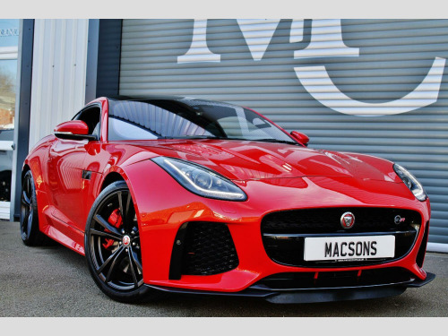 Jaguar F-Type, 5.0 V8 SVR Auto AWD Euro 6 (s/s) 2dr, Two Owner / Carbon Roof / Red Quilted Leather, , We are very pleased to present this double red F-Type SVR in Caldera Red supported by the exterior Black Pack and finished beautifully with Lozenge Quilted Leather with Full Premium Leather Interior - Red with Jet Stitching. Done a sensible mileage of 30,000 Miles and supported by a full Service History. Only Two Private Owners from new and in stunning condition. Specified with a lovely selection of optional extras, some of these are including Carbon Roof, Heated Steering Wheel, Privacy Glass, Blind Spot Assistance and more... , Upgrades: , - Bright Stainless Steel Pedals, - Cruise Control with Adaptive Speed Limiter, - Reverse Park Camera with Guidance, - Adaptive Dynamics, - DAB Radio Receiver, - Exhaust Pipes - Lightweight Inconel and Titanium - Quad Outboard, - Front Parking Aid, - Headlining - Suedecloth - Jet, - Heated Steering Wheel, - Jaguar Smart Key System with Keyless Start, - Seats - Full Electric 14x14 Way with Memory, - Seats - Lumbar Support - Driver-Passenger-4 Way Power, - Seats - SVR Performance, - Rear Spoiler - Body Coloured Deployable, - Windscreen - Heated with Timer, - Lozenge Quilted Leather with Full Premium Leather Interior - Red with Jet Stitching,, - Coloured Seatbelts - Red, - Infrared Reflective Windscreen, - Blind Spot Monitor with Closing Vehicle Sensing, - Roof - Carbon Fibre, - Satellite Navigation - EU, - 20in Alloy Wheels - Satin Black , , Full service history, Excellent bodywork, Interior - Excellent Condition, Tyre condition Excellent, 2 seats, Caldera Red, 2 owners. , Standard Features - 12V Power Socket - Front, 20in Alloy Wheels - Coriolis Technical Grey, 8in Full colour Touch-Screen Display, ABS - Anti-locking Braking System, Airbags - Driver, Airbags - Front Side, Airbags - Passenger, Amplifier Channels x12, Auto-Dimming Interior Rear View Mirror, Automatic Headlight Washers, Auxiliary Socket, Bluetooth Telephone Connectivity, Body Colour Sport Rear Venturi Outboard Exhausts, Body Coloured Sport Front Aero Blades, Carpet Mats - Nubuck Edged, Centre Console - Dark Brushed Aluminium with SVR Graphic. , Configurable Ambient Interior Lighting - Dual Colour with Mixing Pallete, Configurable Dynamic Mode with Dynamic-i Information Displays, Console - Premium Leather with Twin Stitching, Daytime Running Lights - LED, Dead Locking, Door Mirrors - Electric Adjustment-Heated-Auto Dimming-Power Fold-Side Turn Indicators and Memory Function, Door Mirrors - Memory Function, Dynamic Stability Control - DSC, EBA - Emergency Brake Assist, EBD - Electronic Brake-Force Distribution, EPB - Electronic Parking Brake - Drive Away Release, Electric Windows - Front, Electronic Active Differential, Exterior Badging - SVR, Headlights - Bi-function HID Xenon. , InControl Remote Premium for Warranty Period, Instrument Cluster - Twin Dials with 5in TFT Display, Instrument Panel Topper - Premium Leather, Interior - Premium Leather with Micro Piping - Facia-Door Trim, Jaguar Smart Key System with Keyless Entry, Jaguar Super Performance Braking System with Red Calipers, Jaguar Tyre Repair System, LED Tail Lights, Meridian Sound System - 380W, Pedestrian Contact Sensing and Deployable Bonnet, Phone Connect and View - InControl Apps, Pollen Filter, Power Assisted Steering, Rain Sensing Windscreen Wipers, Rain-Ice-Snow Mode, Raised Bonnet with Bonnet Vent, Rear Parking Aid with Touch Screen Visual Indicator, Red Brake Calipers, Row Occupancy Classification System, SVR Suspension Tune, Satellite Navigation, Seats - Driver Height Adjustable, Seats - Front 14x14 Way Electric Adjustment with 4 Way Electric Lumbar Adjustment. , Side Sills - Body Colour Sport Extended, Single Zone Automatic Climate Control, Speakers x10, Sports Suspension, Steering Column - Electrically Adjustable, Steering Column - Electrically Adjustable with Memory, Steering Wheel - 3-Spoke-Leather - SVR, Steering Wheel - Silver Paddles, Suedecloth IP Binnical & Hex Pattern with Cirrus Contrast Stitching, Suedecloth Sports Sunvisor with Mirror, Suedecloth Upper Environment Pack, Torque Vectoring by Braking - TVBB, Trac DSC Mode, Treadplate - R, Trip Computer, Two Stage Unlocking - Integrated in Touch-Screen, Tyre Pressure Monitoring System, USB and iPod Connectivity, Valet Mode, Volumetric Sensing. , Comes Complete with Both Keys and is HPI Clear. All specification is supplied by third party data and can be incorrect. Macsons Cars will not accept responsibility if any of the specification is incorrect, Please ask for confirmation on options. Opening Times, 9-6pm Monday to Friday , 10-3pm Saturday , Closed Sundays. Please Note Our prices are NOT Subject to any ADMIN FEEs. , Finance Arranged Fully FCA Authorised, £47,990