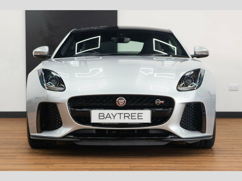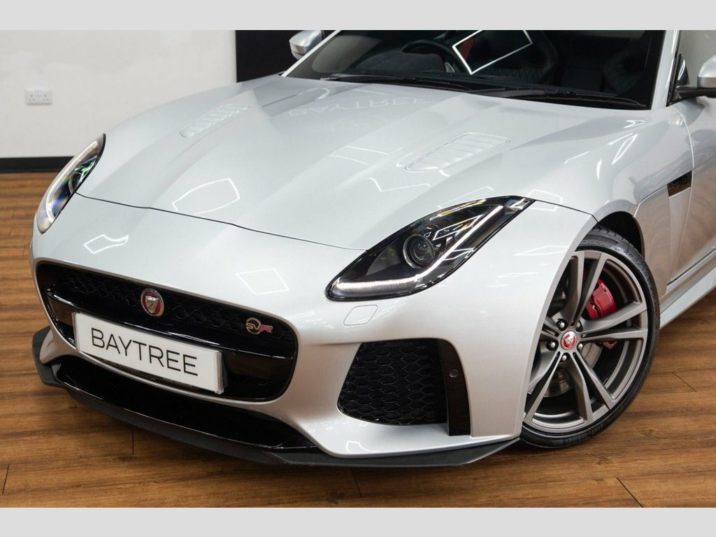 Baytree are delighted to offer for sale this exceptional October 2016 registered Jaguar F-Type 5.0 V8 SVR, elegantly presented in Rhodium Silver with a sleek Ebony Interior. This car comes with a set of striking 20" 5 Split Spoke Satin Grey Alloy Wheels. This vehicle has travelled just 38,970 miles. This Jaguar boasts an impressive array of features, some of which include: Faxed Panoramic Roof, Dual Zone Automatic Climate Control, Cold Climate Pack, Heated Front Seats, Heated Windscreen, Power Tailgate, plus much more. For further details or to schedule a viewing, don't hesitate to contact us. Rhodium Silver, Lozenge Quilted Leather with Premium Lea, Cold Climate Pack, Fixed Panoramic Roof, Windscreen - Heated with Timer, Heated Front Seats, Dual Zone Automatic Climate Control, Coloured Seatbelts - Red, Power Open-Close Tailgate, 12V Power Socket - Front, 20in Alloy Wheels - Coriolis Technical G, 8in Full colour Touch-Screen Display, ABS - Anti-locking Braking System, Adaptive Dynamics, Airbags - Driver, Airbags - Front Side, Airbags - Passenger, Amplifier Channels x12, Auto-Dimming Interior Rear View Mirror, Automatic Headlight Washers, Auxiliary Socket, Bluetooth Telephone Connectivity, Body Colour Sport Rear Venturi Outboard , Body Coloured Sport Front Aero Blades, Bright Stain