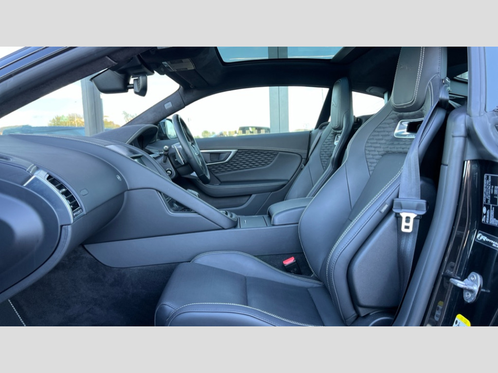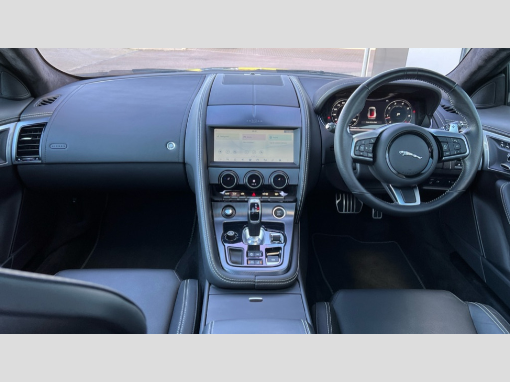 Jaguar F-Type 2.0 P300 R-Dynamic Black 2dr Auto 10" touch screen, Android Auto, Apple CarPlay preparation, Bluetooth telephone connectivity, Boot entrapment release lever, Connected navigation pro, Cruise control + speed limiter, Driver condition monitor, E-call, Incontrol pro service, InControl remote premium, Interactive driver display, Lane departure warning system, Lane keep assist, PAS, Push button start, Rear view camera, Stop/start system, Traffic sign recognition with adaptive speed limiter, Trip computer, Open differential with torque vectoring by braking, Passive suspension, Audio remote control, Digital Audio Broadcast radio-DAB, InControl app, InControl protect, Auto dimming rear view mirror, Auto dimming/power fold heated door mirrors with memory function, Automatic headlights, Body colour bonnet louvres, Body coloured door mirror caps, Body coloured roof, Chrome exhaust finisher, Deployable boot lid spoiler, Electric front windows, F-Type badge, Flush exterior door handles, Headlight washers, Illuminated metal treadplates with brand name script, Infra red reflective glass, LED 3rd brake light, LED tail lights, Metallic paint, Quad outboard mounted exhaust pipes, R Dynamic badge, R-Dynamic exterior body kit, Rain sensing windscreen wipers, Rear boot, Solar attenuating windscreen, Switchable active exhaust, Tinted glass, 12 way heated and cooled electric memory front seats, Aluminium gear shift paddles, Bright metal foot pedals, Deployable front air vents, Ebony door release, Electrically adjustable steering column with memory, Front centre armrest, Front headrests, Jaguar sense, Limited Edition interior, Low line cubby box, Lumbar support, Monogram embossed Suedecloth binnacle, Monogram embroidery on seats and door insert, Nubuck edged carpet mats, Overhead console, Pollen filter, Power socket, R-Dynamic black leather steering wheel, Rain, Ice and snow mode, Single front passenger seat, Suede cloth headlining - Ebony, Suedecloth sun visors with mirrors, Twin front cupholders, USB with 12V socket in centre console, Windsor leather upholstery with performance seats, Black exterior pack - F-Type - R Dynamic Coupe, Online pack - F-Type, Smartphone pack - F-Type, 6 airbags - Driver, front passenger, curtain and side airbags, Anti-lock braking system (ABS), DSC - Dynamic Stability Control, Electronic brake force distribution, Electronic parking brake, Emergency brake assist, Emergency braking, Front/rear seatbelt pre-tensioners, Pedestrian contact sensing and deployable bonnet, Seatbelt reminder for driver and front passenger, Tyre pressure monitoring system, Deadlocks, Drive away door locking, Engine immobiliser, Keyless entry, Locking wheel nuts, Perimetric and volumetric anti theft alarm, Remote central locking, Two stage unlocking, Valet mode, 20" 5 split spoke gloss black alloy wheels - style 5039