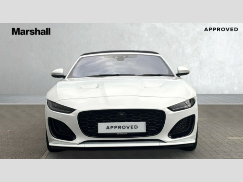 Jaguar F-Type 5.0 P450 Supercharged V8 75 2dr Auto 10" touch screen, Android Auto, Apple CarPlay, Bluetooth telephone connectivity, Boot entrapment release lever, Connected navigation pro, Cruise control + speed limiter, Driver condition monitor, E-call, Incontrol pro service, InControl remote premium, Interactive driver display, Lane departure warning system, Lane keep assist, PAS, Push button start, Rear view camera, Remote, Stop/start system, Traffic sign recognition with adaptive speed limiter, Trip computer, Adaptive dynamics, Configurable dynamic mode, Electronic active differential with torque vectoring by braking, Audio remote control, Digital Audio Broadcast radio-DAB, InControl app, InControl protect, '75' silhouette badge on front wing, Adaptive driving beam, Animated directional indicators, Auto dimming rear view mirror, Auto dimming/power fold heated door mirrors with memory function, Automatic headlights, Deployable boot lid spoiler, Electric front windows, F-Type badge, Flush exterior door handles, Headlight washers, Infra red reflective glass, LED 3rd brake light, LED tail lights, Pixel LED headlights with signature DRL, Quad outboard mounted exhaust pipes, Rain sensing windscreen wipers, Rear boot, Solar attenuating windscreen, Static cornering light, Switchable active exhaust, Tinted glass, Wind deflector, 12 way heated and cooled electric memory front seats, Bright metal foot pedals, Deployable front air vents, Electrically adjustable steering column with memory, Front centre armrest, Front headrests, Jaguar sense, Leather steering wheel, Low line cubby box, Lumbar support, Overhead console, Pollen filter, Power socket, Premium cabin lighting, Rain, Ice and snow mode, Silver gearshift paddles, Single front passenger seat, Suede cloth headlining - Ebony, Suedecloth sun visors with mirrors, Twin front cupholders, USB with 12V socket in centre console, Windsor leather upholstery with performance seats, Interior black pack - F-Type 75, Online pack - F-Type, Smartphone pack - F-Type, 380mm Front and 376mm Rear brakes, 4 airbags - Driver, front passenger and side airbags, Anti-lock braking system (ABS), DSC - Dynamic Stability Control, Electronic brake force distribution, Electronic parking brake, Emergency brake assist, Emergency braking, Front/rear seatbelt pre-tensioners, Pedestrian contact sensing and deployable bonnet, Seatbelt reminder for driver and front passenger, Tyre pressure monitoring system, Deadlocks, Drive away door locking, Engine immobiliser, Keyless entry, Locking wheel nuts, Perimetric and volumetric anti theft alarm, Remote central locking, Two stage unlocking, Valet mode, Limited Edition aluminium instrument panel finisher, Bespoke wheel roundels in gloss & satin black
