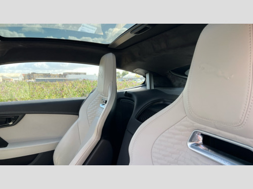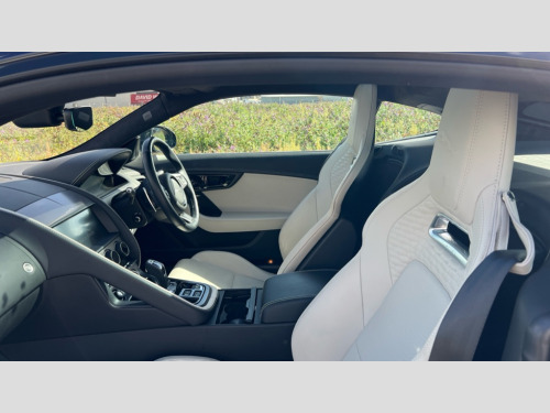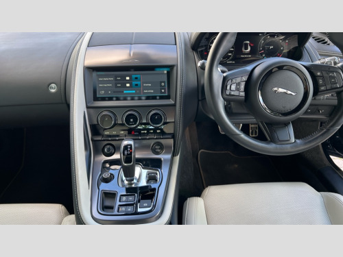 Jaguar F-Type 5.0 P450 Supercharged V8 75 2dr Auto AWD 10" touch screen, Android Auto, Apple CarPlay, Bluetooth telephone connectivity, Boot entrapment release lever, Connected navigation pro, Cruise control + speed limiter, Driver condition monitor, E-call, Incontrol pro service, InControl remote premium, Interactive driver display, Lane departure warning system, Lane keep assist, PAS, Push button start, Rear view camera, Remote, Stop/start system, Traffic sign recognition with adaptive speed limiter, Trip computer, Adaptive dynamics, Configurable dynamic mode, Electronic active differential with torque vectoring by braking, Audio remote control, Digital Audio Broadcast radio-DAB, InControl app, InControl protect, '75' silhouette badge on front wing, Adaptive driving beam, Animated directional indicators, Auto dimming rear view mirror, Auto dimming/power fold heated door mirrors with memory function, Automatic headlights, Electric front windows, F-Type badge, Flush exterior door handles, Headlight washers, Infra red reflective glass, LED 3rd brake light, LED tail lights, Pixel LED headlights with signature DRL, Quad outboard mounted exhaust pipes, Rain sensing windscreen wipers, Rear boot, Solar attenuating windscreen, Static Cornering lights, Switchable active exhaust, Tinted glass, 12 way heated and cooled electric memory front seats, Bright metal foot pedals, Deployable front air vents, Electrically adjustable steering column with memory, Front centre armrest, Front headrests, Jaguar sense, Leather steering wheel, Low line cubby box, Lumbar support, Overhead console, Pollen filter, Power socket, Premium cabin lighting, Rain, Ice and snow mode, Silver gearshift paddles, Single front passenger seat, Suede cloth headlining - Ebony, Suedecloth sun visors with mirrors, Twin front cupholders, USB with 12V socket in centre console, Windsor leather upholstery with performance seats, Interior black pack - F-Type 75, Online pack - F-Type, Smartphone pack - F-Type, 380mm Front and 376mm Rear brakes, 6 airbags - Driver, front passenger, curtain and side airbags, Anti-lock braking system (ABS), DSC - Dynamic Stability Control, Electronic brake force distribution, Electronic parking brake, Emergency brake assist, Emergency braking, Front/rear seatbelt pre-tensioners, Pedestrian contact sensing and deployable bonnet, Seatbelt reminder for driver and front passenger, Tyre pressure monitoring system, Deadlocks, Drive away door locking, Engine immobiliser, Keyless entry, Locking wheel nuts, Perimetric and volumetric anti theft alarm, Remote central locking, Two stage unlocking, Valet mode, Limited Edition aluminium instrument panel finisher, Bespoke wheel roundels in gloss & satin black