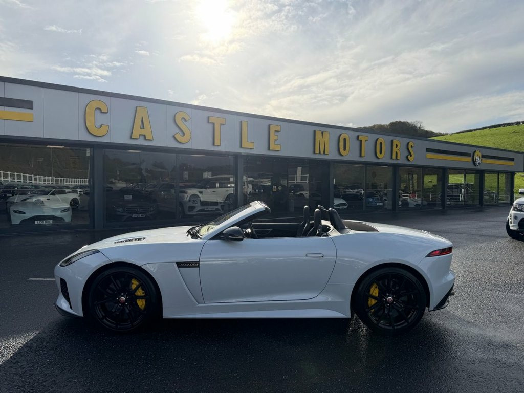 This 2017 Jaguar F-TYPE SVR Convertible 5.0 V8 AWD (575 ps) Glacier White Convertible is currently available for £57,500 in Liskeard Cornwall with Petrol engine and Automatic gearbox. For more information or to arrange a viewing, click here to send us an email using form below.