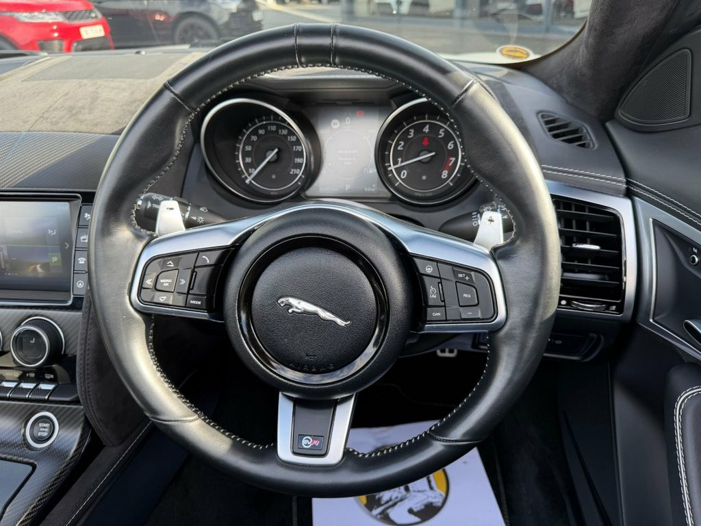 Glacier White Metallic with Ebony SVR Lozenge Quilted leather, Cirrus contrast stitching, very high specification SVR with many thousands in options including Jaguar Ceramic brakes with yellow calipers (£8,745 option) , 20 inch Maelstrom Black alloys, full Carbon Fibre exterior Package (£5,210 option) inc bonnet vents, mirrors, Venture blade, wing ingots & lower spoiler, Visibility package inc adaptive headlights, power tailgate, climatized heated & A/C'd seats, dual zone climate, Carbon Fibre interior console, switchable active Titanium exhaust, SVR Performance seats, multi-function & heated steering wheel, Keyless entry, Suedecloth upper environment, Sat Nav with Bluetooth, multimedia & Meridian sound system, DAB, cruise, aluminium shift paddles++ Rare SVR model with 567bhp covered only 23,750 miles with service history, recently serviced & immaculate. This exceptional Jaguar was supplied by ourselves previously 12-Way Electric Front Seats with Memory, 20in Alloy Wheels - 5 Split-Spoke Style , 4 Airbags, 5in Display with Instrument Panel - 210m, 8in Touchscreen, ABS - Anti-locking Braking System, Adaptive Dynamics, Aluminium Gearshift Paddles, Analogue Dials, Auto-Dimming Interior Rear View Mirror, Autonomous Emergency Braking, Black Grille, Black Vent Surrounds, Bluetooth Connectivity, Boot Entrapment Release Lever, Bright Metal Pedals, Carbon Fibre Exterior Pack, Carpet Mats - Nubuck Edged, Centre Console - Dark Brushed Aluminium , Chrome Instrument Cluster Dial Rings, Configurable Ambient Interior Lighting, Configurable Dynamics, Console - Premium Leather with Twin Stit, Convertible Roof - Full E