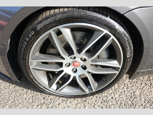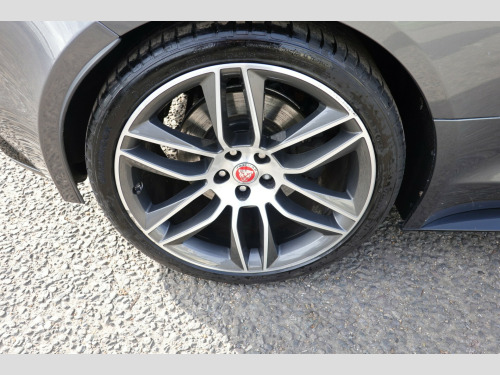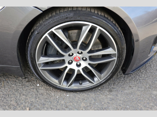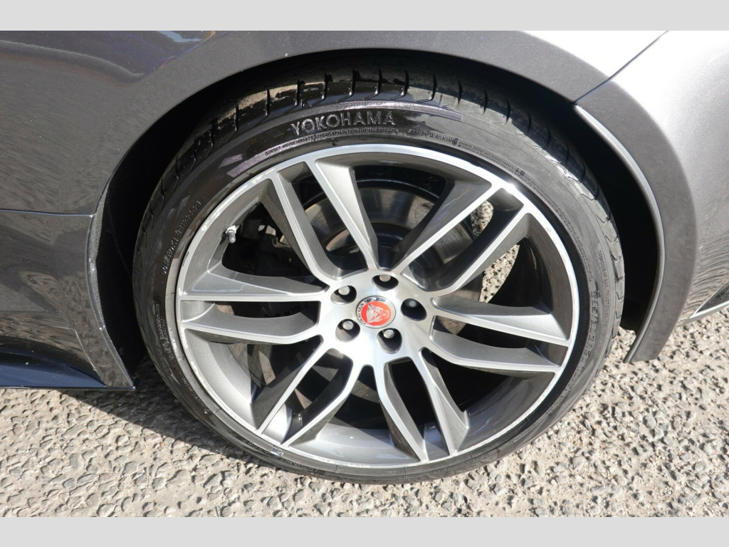 Pedestrian contact sensing and deployable bonnet, Driver/Front Passenger airbags, Front/rear seatbelt pre-tensioners, Passenger airbag off kit, Passenger airbag/seat occupancy detector, Seatbelt reminder for driver and front passenger, Side airbags, Tyre pressure monitoring system, Deadlocks, Drive away door locking, Engine immobiliser, Keyless Start, Locking wheel nuts, Perimetric and volumetric anti theft alarm, Remote central locking, Two stage unlocking, Valet mode, 380mm Front and 325mm Rear brakes, Anti-lock Brake System + Electronic Brakeforce Distribution + Emergency Brake Assit, Black brake calipers, DSC - Dynamic Stability Control, Dynamic mode, Electronic parking brake, Torque vectoring brake, Limited slip differential, Adaptive dynamics, Sports suspension, Automatic dimming rear view mirror, Body colour door mirrors, Electric adjustable heated door mirrors, Electric front windows, Infra red reflective glass, Rain sensor windscreen wipers, Tinted glass, Aluminium roof, Black side sills, Body colour deployable rear spoiler, Body coloured bumpers, Bonnet louvres, Chrome grille surround, Gloss black rear valance, Satin black grille, Satin chrome window surround, Solid paint, Switchable active exhaust, Twin exhaust pipes, Adaptive LED headlights with LED signature daytime running lights, Automatic headlights, Headlight washers, LED tail lights, 6 way electric front seats, Front headrests, Front sports seats, Lumbar support, Chrome instrument dial surround, Delta aluminium centre console, Graphite interior trim, Premium carpet mats, Blue ambient lighting, 12V Accessory socket in centre console, 3 spoke leather steering wheel, Cubby box in loadspace, Electric adjustable steering column, Front centre armrest, Grained leather/suedecloth upholstery, Jaguar sense, Leather door trim, Morzine headlining - Ebony, Overhead console, Silver gearshift paddles, Sunvisors, Twin front cupholders, Air vents on dashboard, Automatic climate control, Pollen filter, Cruise control + speed limiter, Power assisted steering, Rear parking aid, 8'' touch screen, Navigation system, Trip computer, Bluetooth telephone connectivity, InControl remote premium, Audio remote control, DAB Digital radio, InControl app, InControl protect, Meridian 380W sound system with 10 speakers, USB/aux input socket, 20'' 6 split spoke dark grey diamond turned alloy wheels - style 6003, Tyre repair kit.