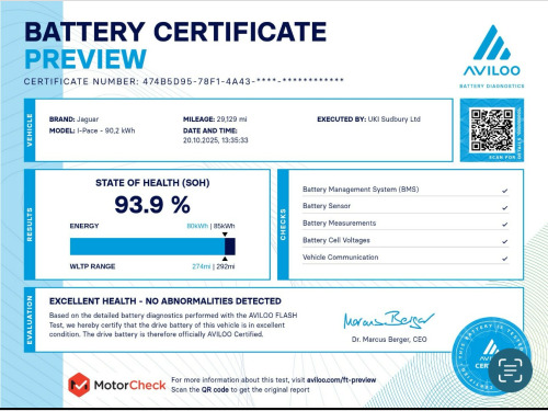 Strictly appointment only, 2025 Autotrader highly rated award winner, Low rate finance available, Nationwide delivery offered. , UKI (Sudbury) Limited are pleased to offer this 2020 (70) Jaguar I Pace HSE for sale presented in Santorini black metallic. This Jaguar I Pace is in fantastic condition throughout and comes with full service history an MOT until October 2026 with no advisories and two keys. , There is a huge specification on this I Pace which includes - Panoramic sunroof, 22 multi spoke alloy wheels, Full black leather performance seats, 14 way Heated and cooled electric memory front seats, Heated rear seats, Privacy glass, Reduced spare wheel, Twin front cup holders with cover, Santorini black metallic paint, Electronic air suspension, Comfort access, LED headlights with automatic high beam assist, Automatic lights and wipers, Satellite navigation, Bluetooth telephone and media, DAB radio, Apple CarPlay, 360 Cameras, Electric folding door mirrors, Electric tailgate, Blind spot assist, Lane keeping assist, Adaptive cruise control, Suede steering wheel, Front and rear parking sensors, Park assist, Meridian surround sound, Heated front windscreen. , All of our vehicles come with a Motorcheck history report, 3 months/2,500 mile warranty (which ever comes first) and a minimum of 6 months MOT. We also offer extended warranties and ceramic paint protection at an additional cost, please ask our sales team for prices. We also except part exchanges, offer finance and can take payment via bank transfer. We do not accept debit or credit cards. UKI Sudbury Limited charge a £99 admin fee.
