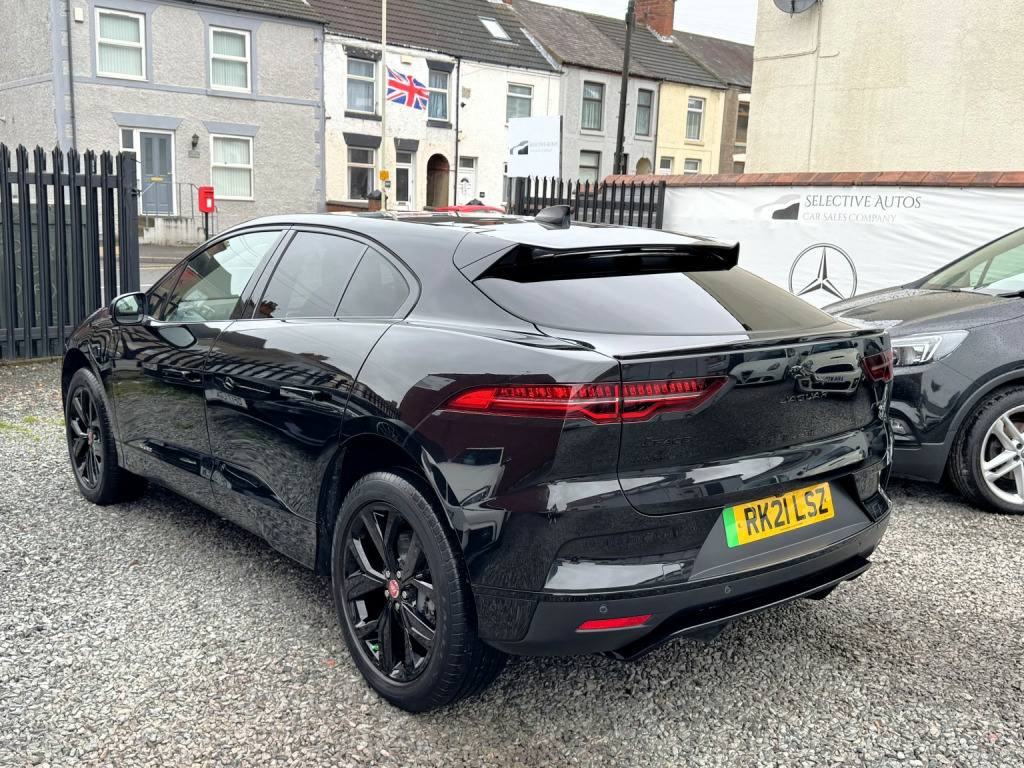 JUST ARRIVED / PHOTOS TO FOLLOW! Discover this 2021 electric Jaguar I-PACE 400 HSE, a sophisticated all wheel drive model . This HSE trim vehicle boasts a substantial 90 kWh battery, providing ample power for your journeys. Notable features include Head Up Display, Adaptive Cruise Control, Lane Keep Assist, Rear Heated Seats, luxurious 14 way heated and cooled electric memory performance front seats, a fixed panoramic roof for an airy cabin feel, Meridian Surround Sound, Heated Steering Wheel, 360 Camera, Exterior Black Pack and striking 20 inch alloy wheels in Technical Grey with a polished finish. The gloss black side window surrounds and black contrast roof add to its distinctive visual appeal. Experience exhilarating performance with the Jaguar I-PACE, capable of accelerating from 0 to 60 miles per hour in just 4.5 seconds, a testament to its electric power. This model also offers a generous boot space, making it practical for everyday use and longer trips. When it comes to charging, you can achieve a full charge at home using a 7kW charger in approximately 12 hours and 36 minutes, or benefit from rapid public charging, reaching 80% capacity from empty in as little as 50 minutes. These capabilities highlight how the I-PACE excels in offering both performance and convenience.and a s