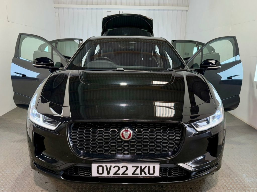 Jaguar I-Pace HSE Black 5dr Auto Registered May 2022 (22 Reg) Finished in Ultimate Black Metallic with Black Leather Interior | 20-Inch Diamond Cut Y-Spoke Alloy Wheels | Heated and Ventilated Electric Front Seats with Memory | Heated Multifunction Steering Wheel | Adaptive Cruise Control with Lane Guidance | Meridian Surround Sound System | Apple CarPlay and Android Auto | Reversing Camera with Front and Rear Sensors | Panoramic Roof with Power Blind | Dual-Zone Climate Control | Keyless Entry and Start | Powered Tailgate. One Owner From New, Serviced by Jaguar Land Rover Birmingham North on 25/03/2024 at 23,098 miles. 12V Power Socket in Loadspace, 12V Power Sockets, 16-Way Heated and Cooled Electric - Driv, 2-Zone Climate Control, 20in Alloy Wheels - Style 5068 with Glos, 3 Rear Headrests, 3-Flash Lane Change Indicators, 40-20-40 Folding Heated Rear Seats with , 40-20-40 Split Fold Rear Seat, 6 Airbags, ABS - Anti-locking Braking System, Acoustic Laminated Windscreen, Active Sound Design, Active Vanes, Adaptive Cruise Control with Steering As, Air Quality Sensor, Android Auto, Animated Directional Indicators, Apple CarPlay, ASPC - All Surface Progress Control, Auto-Dimming Interior Rear View Mirror, Black Exterior Pack, Blind Spot Assist, Bluetooth Connectivity, Brake Pad Wear Indicator, Cabin Lighting,