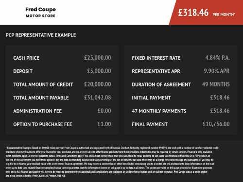Don't miss this awesome example of Jaguar's 278 mile range 100% electric i-Pace. This four wheel drive All-Electric 90 KWH executive car is finished in the popular Corris Grey with a luxury Ebony leather interior. The front seats are electric, memory and heated and the steering wheel, front fog lights, panoramic roof, front windscreen and rear seats are heated. Specification includes; wireless charger, satellite navigation, rear colour parking camera and front and rear parking sensors. There is automatic headlights and wipers and an electric tailgate. Fred Coupe's were chosen in 2010 by Nissan to be a pioneer electric vehicle specialists and have highly trained sales advisers and technical staff with years of experience. Because of this we have a huge knowledge of electric vehicles to compliment our specialist workshops . *Please call before coming to view as this vehicle is currently being used by a member of staff* WE ONLY ADVERTISE SOME OF OUR STOCK ON AUTOTRADER see www.fredcoupe.co.uk FOR FULL CURRENT STOCK. Fred Coupe is a NISSAN and INFINITI authorised repairer and a multiple global award winner for customer service as well as a 4th generation family business. We pride ourselves on quality, reliability, great service and good value. *Buy online, visit www.fredcoupe.co.uk * 12V Power Socket in Loadspace, 12V Power Sockets, 16-Way Heated and Cooled Electric - Driv, 2-Zone Climate Control, 20in Alloy Wheels - Style 5068 with Glos, 3 Rear Headrests, 3-Flash Lane Change Indicators, 40-20-40 Folding Heated Rear Seats with , 40-20-40 Split Fold Rear Seat, 6 Airbags, ABS - Anti-locking Braking System, ASPC - All Surface Progress Control, Acoustic Laminated Windscreen, Active Sound Design, Active Vanes, Adaptive Cruise Control with Steering As, Air Quality Sensor, Android Auto, Animated Directional Indicators, Apple CarPlay, Auto-Dimming Interior Rear View Mirror, Black Exterior Pack, Blind Spot Assist, Bluetooth Connectivity, Brake Pad Wear Indicator, Cabin Lighting,