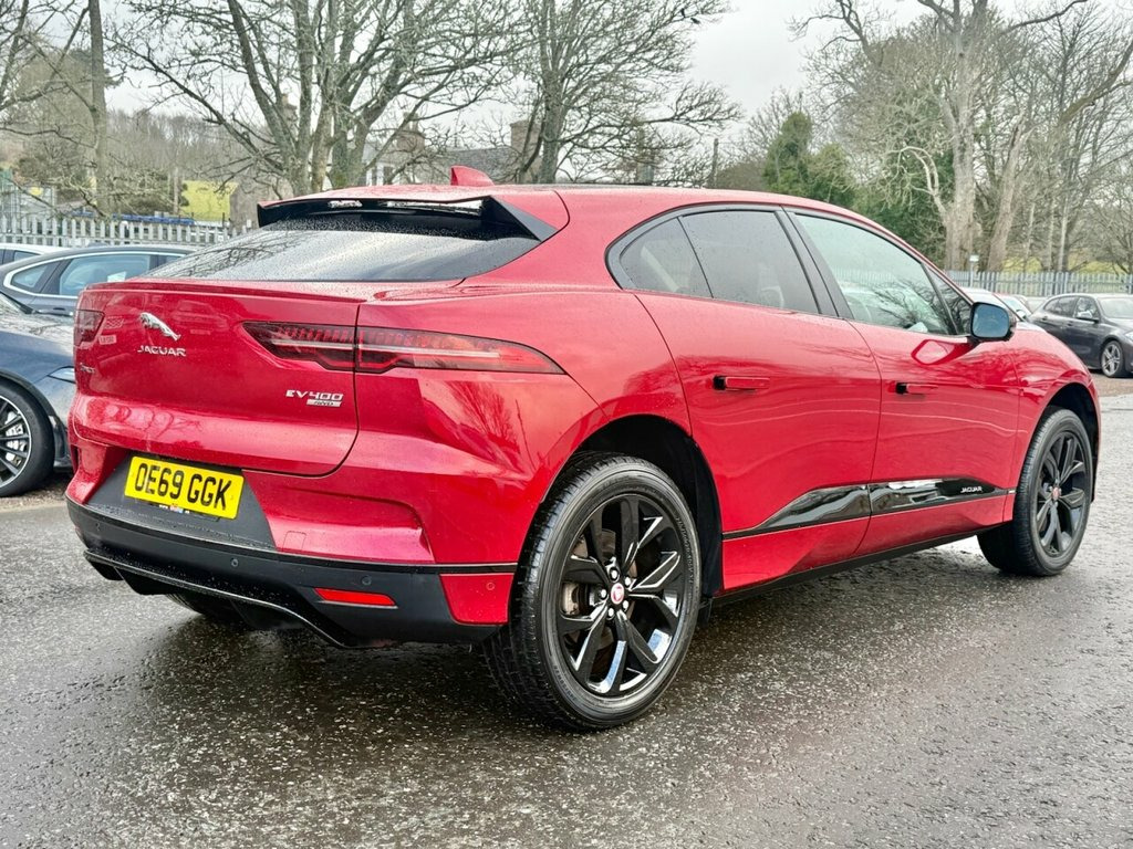 The 2019 Jaguar I-PACE 400 HSE is a class-leading all-electric performance SUV that blends breathtaking acceleration, refined luxury and everyday usability. Powered by a 90kWh battery and advanced dual-motor setup, it produces 400 bhp with instantaneous torque and smooth, silent delivery — offering thrilling performance with zero tailpipe emissions. The all-wheel-drive system and automatic transmission provide confident traction in all conditions and effortless highway cruising. Inside, the I-PACE offers a premium and technologically advanced cabin, with high-quality materials, generous space and cutting-edge features. Expect large touchscreen infotainment with navigation and smartphone connectivity, digital driver displays, Meridian premium sound system, heated seats, dual-zone climate control and a panoramic roof — all contributing to an upscale and comfortable driving environment. Practicality is strong with versatile seating, ample boot space and intelligent storage, making the I-PACE ideal for both city life and longer journeys. Jaguar's hallmark safety systems and driver-assist technology enhance confidence on every trip. A compelling combination of luxury, innovation and exhilarating electric performance, the I-PACE stands out as one of the most desirable electric SUVs on the market. 14-Way Heated and Cooled Electric Memory, Firenze Red, Windsor Leather - Ebony with Ebony-Ebony, Fixed Panoramic Roof, Privacy Glass, Black Exterior Pack, 20in Alloy Wheels - 5 Spoke - Style 5068, 10in Touch Pro, 12V Power Socket in Loadspace, 18-Way Heated and Cooled Electric Memory, 2-Zone Climate Control, 20in Alloy Wheels - 5 Spoke - Style 5068, 3 Rear Headrests, 3-Flash Lane Change Indicators, 360 Degree Surround Camera, 6 Airbags, 60-40 Split Fold Rear Seat, ABS - Anti-locking Braking System, AM-FM Radio, ASPC - All Surface Progress Control, Acoustic Laminated Windscreen, Air Quality Sensor, Ambient Interior Lighting, Auto-Dimming - Power Fold - Heated Door , Auto-Dimming Interior Rear
