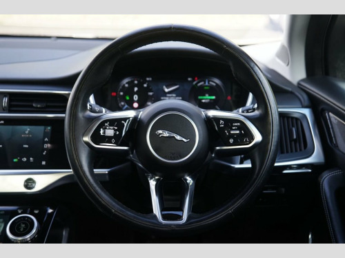 Prestige Car Supermarket in York presents this highly advanced and luxurious 2021 Jaguar I-PACE 400 HSE SUV. Finished in Santorini Black metallic paint, a desirable factory option costing £735.00, and featuring a luxurious Ebony Windsor Leather interior, this automatic electric 4WD SUV offers a responsive and refined driving experience. It rides on 20in 5 Spoke Style 5068 alloy wheels and features a Black Exterior Pack, a factory option costing £410.00, with Flush Exterior Door Handles. Illumination is provided by Matrix LED Headlights with Signature DRL and Animated Directional Indicators. Step inside the executive cabin to find Heated and Cooled 16-Way Electric Front Seats with Memory, Heated Rear Seats, a Heated Split Rim Leather Steering Wheel, and Two-Zone Climate Control. The interior is bathed in natural light thanks to a Fixed Panoramic Roof, a desirable factory option costing £995.00. Technology is comprehensive with a Touch Pro Duo system, an Interactive Driver Display, a Meridian 3D Surround Sound System, and Wireless Device Charging. Convenience is a priority with a Rear Camera, Front and Rear Parking Aid, Keyless Entry, and a Powered Tailgate. This model also includes Privacy Glass, a factory option costing £395.00. Safety and driver assistance systems are extensive, including Adaptive Cruise Control with Steering Assist, Blind Spot Assist, and a Tyre Pressure Monitoring System (TPMS), ensuring a secure and confident drive. Privacy Glass, Black Exterior Pack, Fixed Panoramic Roof, Windsor Leather - Ebony with Ebony-Ebony, Santorini Black, 12V Power Socket in Loadspace, 12V Power Sockets, 16-Way Heated and Cooled Electric - Driv, 2-Zone Climate Control, 3 Rear Headrests, 3-Flash Lane Change Indicators, 3-Phase 11kW AC Onboard Charger, 40-20-40 Folding Heated Rear Seats with , 40-20-40 Split Fold Rear Seat, 6 Airbags, ABS - Anti-locking Braking System, AM-FM Radio, ASPC - All Surface Progress Control, Acoustic Laminated Windscreen, Active Sound Design, Active Vanes, Adaptive Cruise Control with Steering As, Android Auto, Animated Directional Indicators, Apple CarPlay, Auto-Dimming Interior Rear View Mirror, Blind