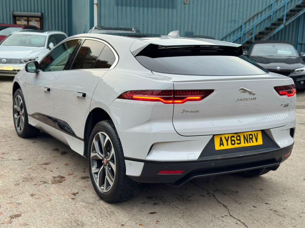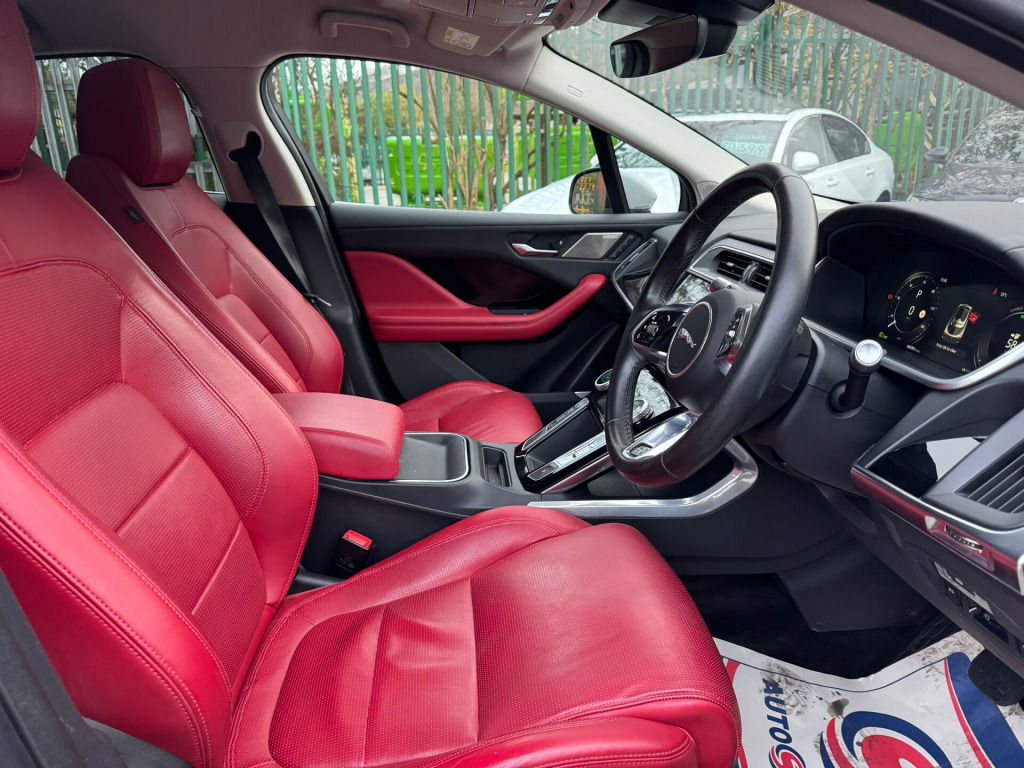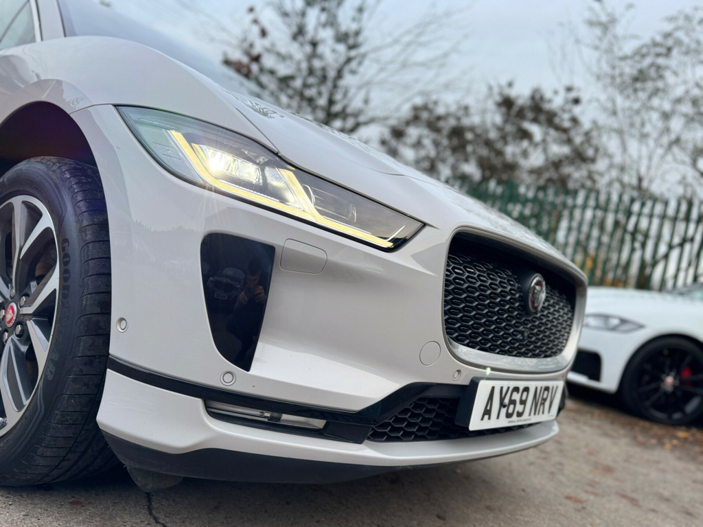 This 2019 Jaguar I-Pace 400 90kWh HSE SUV with 50391 miles on the clock is a top-of-the-line electric SUV that is ULEZ compliant, making it the perfect eco-friendly choice for city driving. With 5 seats and 5 doors, there is plenty of room for the whole family, and the 10in Touch Pro infotainment system, AM-FM radio, Bluetooth connectivity, and Connect Pro features ensure a comfortable and connected ride. This SUV boasts a powerful 400 ps engine and 4WD capability, offering both performance and practicality. The 12V Power Socket in Loadspace adds convenience to any journey, making this Jaguar I-Pace the ideal choice for an eco-conscious driver who doesn't want to compromise on luxury and style.UK delivery available.Part exchange welcome.AA extended warranty partner.AA standards approved dealership.Trading standards approved dealership.Autotrader highly rated dealership. in touch pro, 12v power socket in loadspace, am-fm radio, bluetooth connectivity, connect pro, digital audio broadcast - dab - radio, meridian surround sound system, navigation pro system, power sockets, remote, smartphone pack, touch pro duo, touch pro system, 18-way heated and cooled electric memory front seats with heated rear seats, 2-zone climate control, 3 rear headrests, 3-flash lane change indicators, 60-40 split fold rear seat, air quality sensor, ambient interior lighting, auto-dimming interior rear view mirror, cold climate pack, ebony carpet, front storage compartment, front and rear cupholders, global lock-unlock switch on driver door, gloss black trim finisher, hooks in loadspace, interactive driver display, interior front door handles with separate locking switches, led rear reading light, light oyster morzine headlining, lock only switch on front passenger door, lockable glovebox, luggage tie downs in loadspace, metal treadplates with jaguar script, overhead lighting console, overhead stowage for sunglasses, powered gesture tailgate, rain sensing windscreen wipers, seats - rear centre armrest, soft grain leather sport steering wheel, start up sequence with movement - dials and lighting, storage under rear seats, sunvisors with illuminated vanity mirrors, variable intermittent wipers, 20in alloy wheels - 5 spoke - style 5068 gloss dar grey with contrast diamond turned finish, acoustic laminated windscreen, auto-dimming - power fold - heated door mirrors with memory and approach lights, body coloured door mirror caps, body coloured roof, chrome side window surround, ev400 badge, electric windows - front and rear with one-touch open-close and anti-trap, flush exterior door handles, gloss black grille with satin chrome surround, gloss black lower front blades, grained black door claddings, hse badge, heated rear window with timer, jaguar script and leaper, locking wheel nuts, rear bike carrier preparation kit, rear fog lights, s rear bumper with gloss black valance, screw-in recovery eye, solar attenuating rear windscreen, solar attenuating windscreen, tailgate spoiler, tyre repair system, 360 degree surround camera, brake pad wear indicator, coil suspension, driver condition monitor, electric cabin pre-conditioning, home charging cable, jaguardrive control, low power mode, low traction launch, open differential with torque vectoring by braking, outside temperature gauge, park assist, passive suspension, public charging cable, range for route, speed proportional electronic power assisted steering - epas, traffic sign recognition with adaptive speed limiter, tyre pressure monitoring system, voice control, 6 airbags, abs - anti-locking braking system, aspc - all surface progress control, driver assist pack, dynamic stability control - dsc, eba - emergency brake assist, epb - electric parking brake, emergency braking, hill launch assist, intrusion sensor, keyless entry, lane keep assist, park pack, power operated child locks, seat belt reminder, secure tracker, follow me home lighting, headlight power wash, headlights - automatic levelling, led tail lights, matrix led headlights with signature drl