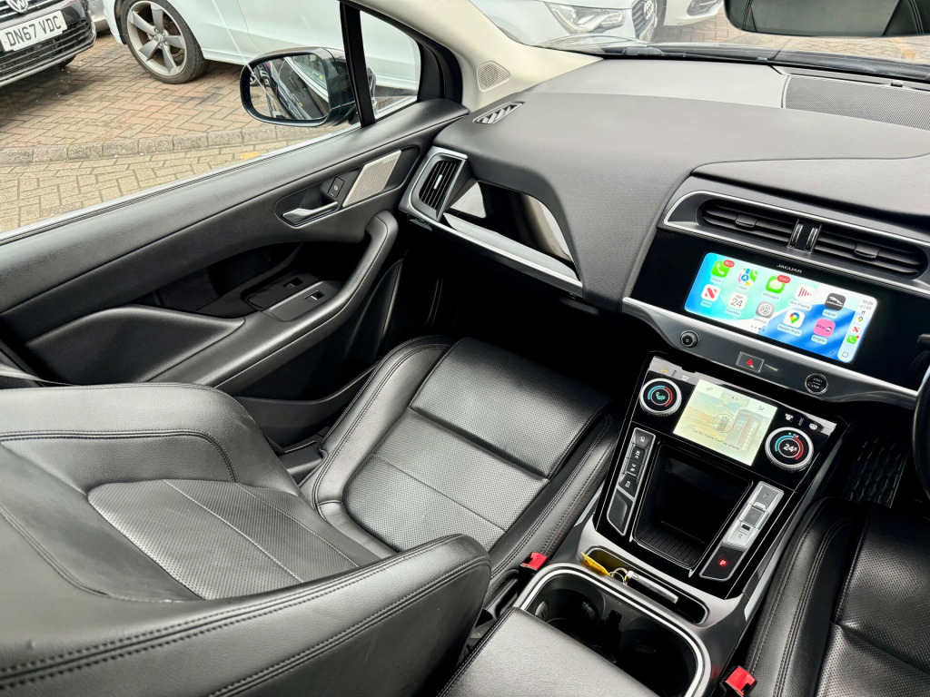 2 KEYS, CHARGING CABLE, JUST HAD A SERVICE WITH JAGUAR WATFORD(TOTAL 3 SERVICES), APPLE/ANDROID CAR PLAY, NAVIGATION, BLUETOOTH, MOT 01/07/2026, REVERSE CAMERA, 2 FORMER KEEPER, FOR VIDEO AND MORE PICTURES PLEASE VISIT OUR WEBSITE.This 2019 Jaguar I-Pace is a sleek and powerful electric SUV with only 48800 miles on the clock. With 5 seats and 5 doors, it's the perfect family vehicle, and it's ULEZ compliant for driving in the city. The MOT doesn't expire until 07/01/2026, so you can enjoy peace of mind knowing it's in good condition. This stunning SUV delivers 400 ps and comes equipped with a 90kWh electric auto 4WD system, making it a standout choice for those seeking both power and efficiency.