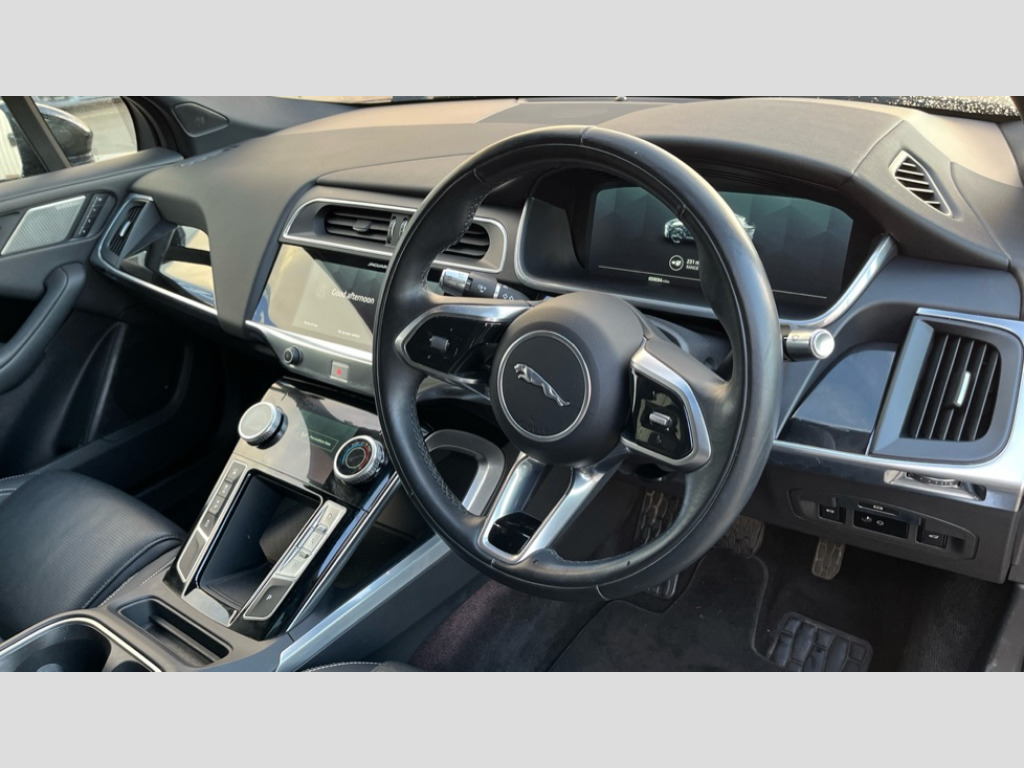 Jaguar I-Pace 294kW EV400 Black 90kWh 5dr Auto [11kW Charger] Adaptive cruise control with steering assist, Amazon alexa Integration, Blind spot assist, Bluetooth connectivity, Brake pad wear indicator, Driver condition monitor, E-call, InControl remote, Interactive driver display, Lane keep assist, Low power mode, Outside temperature gauge, Push button starter, Range for route, Rear traffic monitor, Software over the air, Speed proportional electronic power assisted steering (EPAS), Start up sequence with movement in dials and lighting, Traffic sign recognition with adaptive speed limiter, Trip computer, Voice control system, Wireless Apple CarPlay/Android Auto, 11kW 3 phase AC onboard charger, Active sound design, All Wheel Drive (AWD), Home charging cable Mode 2, Open differential with torque vectoring by braking, Public charging cable Mode 3, Timed charging, 5x USB power sockets, AM/FM radio, Digital Audio Broadcast radio-DAB, Pivi pro connected, Pivi pro system, 3 flash lane change indicators, Acoustic laminated windscreen, Active vanes, Automatic headlight levelling, Automatic headlights, Body colour bumpers, Electric heated/power fold memory door mirrors with approach lights and auto dimming driver side, Electric windows with one touch open/close and anti trap, Fixed panoramic glass sunroof, Flush exterior door handles, Follow me home headlights, Gloss black front air cheeks, Gloss black front bumper insert, Gloss black grille pins, Gloss black rear bumper insert, Gloss black rear diffuser, Gloss black side cladding, Heated front windscreen, Heated rear window with timer, Heated washer jets, Jaguar script and leaper, Laminated front and toughened rear side glass, LED tail lights, Privacy glass, Rain sensing windscreen wipers, Rear bike carrier preparation kit, Rear fog lights, Rear side wing doors, Rear wiper, Screw-in rear recovery eye, Solar attenuating rear windscreen, Solar attenuating windscreen, Third brake light, Variable front intermittent wipers, Winter wiper park position, 12V power socket in loadspace, 12V power sockets, 3 rear headrests, 3 seat bench in 2nd row, Air quality sensor, Electric cabin pre-conditioning, Front storage compartment, Heated steering wheel, Hooks in loadspace, Interior front door handles with separate locking switches, Leather steering wheel, LED rear reading lights, Luggage tie downs in loadspace, Multifunction steering wheel, Overhead lighting console, Rear cupholder, Single front passenger seat, Storage under rear seats, Sunvisors with illuminated vanity mirrors, Black exterior pack - I-Pace, Online pack with Data plan - I-Pace, 3x3 point rear seatbelts, 6 airbags - Driver/front passenger airbags, front and rear curtain airbags and front side airbags, ABS, All surface progress control (ASPC), Anti-whiplash front headrests, DSC - Dynamic Stability Control, Electric parking brake (EPB), Emergency brake assist, Emergency braking, Enhanced brake regeneration, Front and rear seatbelt reminder, Hill launch assist, Low traction launch, Power operated child locks, Tyre pressure monitoring system (TPMS), Global lock and unlock switch on driver door, Intrusion sensor and alarm, Keyless entry, Lock only switch on front passenger door, Locking wheel nuts