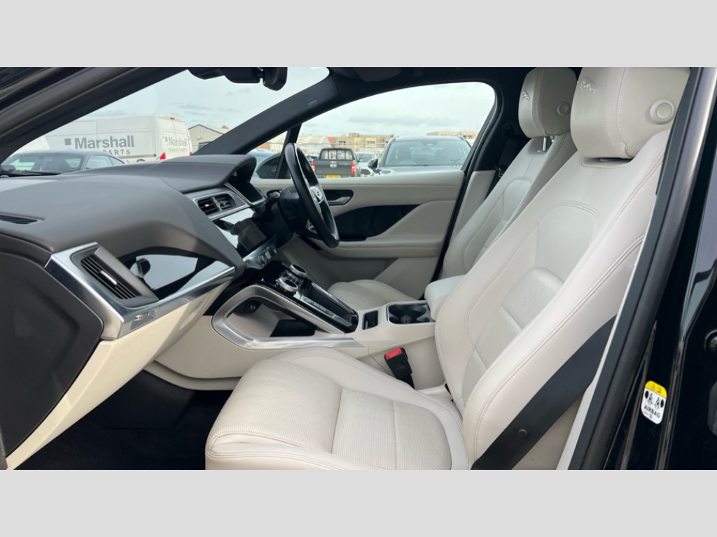 Jaguar I-Pace 294kW EV400 Black 90kWh 5dr Auto [11kW Charger] Adaptive cruise control with steering assist, Amazon alexa Integration, Blind spot assist, Bluetooth connectivity, Brake pad wear indicator, Driver condition monitor, E-call, InControl remote, Interactive driver display, Lane keep assist, Low power mode, Outside temperature gauge, Push button starter, Range for route, Rear traffic monitor, Software over the air, Speed proportional electronic power assisted steering (EPAS), Start up sequence with movement in dials and lighting, Touch pro system, Traffic sign recognition with adaptive speed limiter, Trip computer, Voice control system, Wireless Apple CarPlay/Android Auto, 11kW 3 phase AC onboard charger, Active sound design, All Wheel Drive (AWD), Home charging cable Mode 2, Open differential with torque vectoring by braking, Public charging cable Mode 3, Timed charging, 5x USB power sockets, AM/FM radio, Digital Audio Broadcast radio-DAB, Pivi pro connected, Pivi pro system, 3 flash lane change indicators, Acoustic laminated windscreen, Active vanes, Automatic headlight levelling, Automatic headlights, Body colour bumpers, Electric heated/power fold memory door mirrors with approach lights and auto dimming driver side, Electric windows with one touch open/close and anti trap, Fixed panoramic glass sunroof, Flush exterior door handles, Follow me home headlights, Gloss black front air cheeks, Gloss black front bumper insert, Gloss black grille pins, Gloss black rear bumper insert, Gloss black rear diffuser, Gloss black side cladding, Heated front windscreen, Heated rear window with timer, Heated washer jets, Jaguar script and leaper, Laminated front and toughened rear side glass, LED tail lights, Privacy glass, Rain sensing windscreen wipers, Rear bike carrier preparation kit, Rear fog lights, Rear side wing doors, Rear wiper, Screw-in rear recovery eye, Solar attenuating rear windscreen, Solar attenuating windscreen, Third brake light, Variable front intermittent wipers, Winter wiper park position, 12V power socket in loadspace, 12V power sockets, 3 rear headrests, 3 seat bench in 2nd row, Air quality sensor, Electric cabin pre-conditioning, Front storage compartment, Heated steering wheel, Hooks in loadspace, Interior front door handles with separate locking switches, Leather steering wheel, LED rear reading lights, Luggage tie downs in loadspace, Multifunction steering wheel, Overhead lighting console, Rear cupholder, Single front passenger seat, Storage under rear seats, Sunvisors with illuminated vanity mirrors, Black exterior pack - I-Pace, Online pack with Data plan - I-Pace, 3x3 point rear seatbelts, 6 airbags - Driver/front passenger airbags, front and rear curtain airbags and front side airbags, ABS, All surface progress control (ASPC), Anti-whiplash front headrests, DSC - Dynamic Stability Control, Electric parking brake (EPB), Emergency brake assist, Emergency braking, Enhanced brake regeneration, Front and rear seatbelt reminder, Hill launch assist, Low traction launch, Power operated child locks, Tyre pressure monitoring system (TPMS), Global lock and unlock switch on driver door, Intrusion sensor and alarm, Keyless entry, Lock only switch on front passenger door, Locking wheel nuts