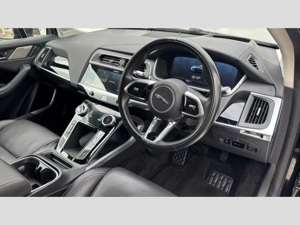 Jaguar I-Pace 294kW EV400 HSE 90kWh 5dr Auto [11kW Charger] Adaptive cruise control with steering assist, Android Auto, Apple CarPlay, Blind spot assist, Bluetooth connectivity, Brake pad wear indicator, Clear exit monitor, Driver condition monitor, Head up Display, InControl remote, Interactive driver display, Lane keep assist, Low power mode, Outside temperature gauge, Push button starter, Range for route, Rear collision monitor, Rear traffic monitor, Software over the air, Speed proportional electronic power assisted steering (EPAS), Start up sequence with movement in dials and lighting, Traffic sign recognition with adaptive speed limiter, Trip computer, Voice control system, 11 kW triphase onboard charger, Active sound design, All Wheel Drive (AWD), Open differential with torque vectoring by braking, Public charging cable, Timed charging, 10" PiVI pro duo, 5x USB power sockets, AM/FM radio, Digital Audio Broadcast radio-DAB, Meridian surround sound system, Pivi pro connected, Pivi pro system, 3 flash lane change indicators, Acoustic laminated windscreen, Active vanes, Animated directional indicators, Automatic headlight levelling, Body colour bumpers, Electric heated/power fold memory door mirrors with approach lights and auto dimming driver side, Electric windows with one touch open/close and anti trap, Flush exterior door handles, Follow me home headlights, Gloss black front air cheeks, Gloss black front bumper insert, Gloss black rear bumper insert, Gloss black side cladding, Headlight power wash, Heated front windscreen, Heated rear window with timer, Heated washer jets, Jaguar script and leaper, LED tail lights, Matrix LED headlights with signature DRL, Rain sensing windscreen wipers, Rear bike carrier preparation kit, Rear fog lights, Screw-in rear recovery eye, Solar attenuating rear windscreen, Solar attenuating windscreen, Tailgate spoiler, Variable front intermittent wipers, Winter wiper park position, 12V power socket in loadspace, 12V power sockets, 3 rear headrests, 40:20:40 split folding heated rear seats with centre armrest, Air quality sensor, Electric cabin pre-conditioning, Front storage compartment, Heated steering wheel, Hooks in loadspace, Interior front door handles with separate locking switches, LED rear reading lights, Luggage tie downs in loadspace, Multifunction steering wheel, Overhead lighting console, Overhead stowage for sunglasses, Rear centre armrest, Split rim leather steering wheel, Storage under rear seats, Sunvisors with illuminated vanity mirrors, Online pack with Data plan - I-Pace, 3x3 point rear seatbelts, 6 airbags - Driver/front passenger airbags, front and rear curtain airbags and front side airbags, ABS, All surface progress control (ASPC), Anti-whiplash front headrests, DSC - Dynamic Stability Control, Electric parking brake (EPB), Emergency brake assist, Emergency braking, Enhanced brake regeneration, Front and rear seatbelt reminder, Hill launch assist, Low traction launch, Power operated child locks, Tyre pressure monitoring system (TPMS), Global lock and unlock switch on driver door, Intrusion sensor and alarm, Keyless entry, Lock only switch on front passenger door, Locking wheel nuts