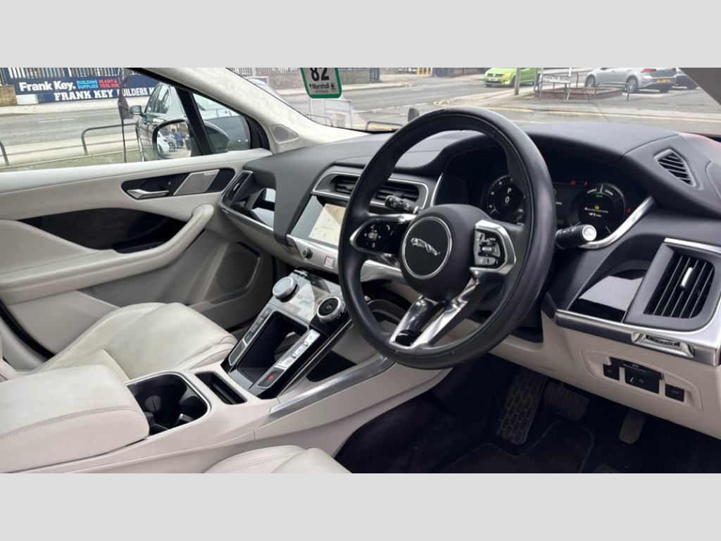 Touch Pro System Adaptive cruise control with steering assist, Amazon alexa Integration, Blind spot assist, Bluetooth connectivity, Brake pad wear indicator, Driver condition monitor, E-call, InControl remote, Interactive driver display, Lane keep assist, Low power mode, Outside temperature gauge, Push button starter, Range for route, Rear collision monitor, Rear traffic monitor, Software over the air, Speed proportional electronic power assisted steering (EPAS), Start up sequence with movement in dials and lighting, Touch pro system, Traffic sign recognition with adaptive speed limiter, Trip computer, Voice control system, Wireless Apple CarPlay/Android Auto, 11kW 3 phase AC onboard charger, Active sound design, All Wheel Drive (AWD), Home charging cable Mode 2, Open differential with torque vectoring by braking, Public charging cable Mode 3, Timed charging, 10" PiVI pro duo, 5x USB power sockets, AM/FM radio, Digital Audio Broadcast radio-DAB, Meridian 3D surround sound system, Pivi pro connected, Pivi pro system, 3 flash lane change indicators, Acoustic laminated windscreen, Active vanes, Animated directional indicators, Automatic headlight levelling, Automatic headlights, Body colour bumpers, Electric heated/power fold memory door mirrors with approach lights and auto dimming driver side, Electric windows with one touch open/close and anti trap, Fixed panoramic glass sunroof, Flush exterior door handles, Follow me home headlights, Front fog lights, Gloss black front air cheeks, Gloss black front bumper insert, Gloss black grille pins, Gloss black rear bumper insert, Gloss black rear diffuser, Gloss black side cladding, Heated front windscreen, Heated rear window with timer, Heated washer jets, Jaguar script and leaper, Laminated front and toughened rear side glass, LED tail lights, Matrix LED headlights with signature DRL, Privacy glass, Rain sensing windscreen wipers, Rear bike carrier preparation kit, Rear fog lights, Rear side wing doors, Rear wiper, Screw-in rear recovery eye, Solar attenuating rear windscreen, Solar attenuating windscreen, Third brake light, Variable front intermittent wipers, Winter wiper park position, 12V power socket in loadspace, 12V power sockets, 3 rear headrests, 3 seat bench in 2nd row, 40:20:40 split folding heated rear seats with centre armrest, Air quality sensor, Electric cabin pre-conditioning, Front storage compartment, Heated steering wheel, Hooks in loadspace, Interior front door handles with separate locking switches, Leather steering wheel, LED rear reading lights, Luggage tie downs in loadspace, Multifunction steering wheel, Overhead lighting console, Rear cupholder, Single front passenger seat, Storage under rear seats, Sunvisors with illuminated vanity mirrors, Black exterior pack - I-Pace, Online pack with Data plan - I-Pace, 3x3 point rear seatbelts, 6 airbags - Driver/front passenger airbags, front and rear curtain airbags and front side airbags, ABS, All surface progress control (ASPC), Anti-whiplash front headrests, DSC - Dynamic Stability Control, Electric parking brake (EPB), Emergency brake assist, Emergency braking, Enhanced brake regeneration, Front and rear seatbelt reminder, Hill launch assist, Low traction launch, Power operated child locks, Tyre pressure monitoring system (TPMS), Global lock and unlock switch on driver door, Intrusion sensor and alarm, Keyless entry, Lock only switch on front passenger door, Locking wheel nuts