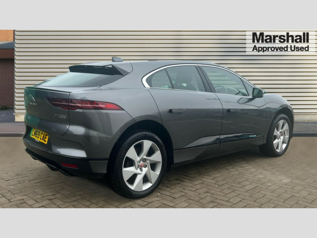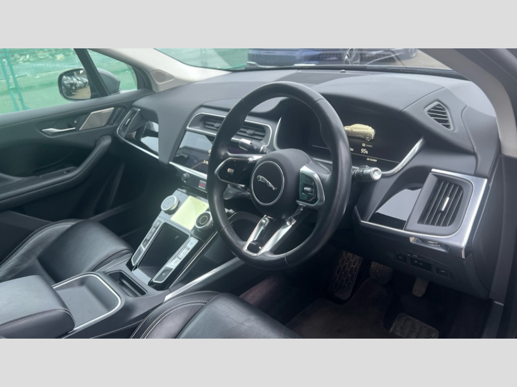 Jaguar I-Pace 294kW EV400 SE 90kWh 5dr Auto 10" touch screen pro, 360 Parking aid, Apple car play/Android Auto, Bluetooth connectivity, Brake pad wear indicator, Clear exit monitor, Driver condition monitor, InControl remote, InControl Touch navigation pro, Interactive Driver display instrument cluster, JaguarDrive control, Lane keep assist, Low power mode, Outside temperature gauge, Park assist - Parallel, perpendicular and parking exit, Pro services and wifi hotspot, Push button starter, Range for route, Rear traffic monitor, Smart settings, Speed proportional electronic power assisted steering (EPAS), Start up sequence with movement in dials and lighting, Touch pro duo system, Traffic sign recognition with adaptive speed limiter, Trip computer, Voice control system, 7kW single phase onboard charger, Active sound design, All Wheel Drive (AWD), Home charging cable, Open differential with torque vectoring by braking, Public charging cable, Timed charging, 6x USB power sockets, AM/FM DVD MP3 radio, Digital Audio Broadcast radio-DAB, Dynamic volume control, InControl apps, 3 flash lane change indicators, Acoustic laminated windscreen, Active vanes, Auto dimming interior rear view mirror, Automatic headlight levelling, Body colour bumpers, Electric windows with one touch open/close and anti trap, EV400 badge, Flush exterior door handles, Follow me home headlights, Headlight power wash, Heated front windscreen, Heated rear window with timer, Heated washer jets, Infra-red reflective glass windscreen, Jaguar script and leaper, LED tail lights, Power fold, auto dimming, heated door mirrors with memory and approach lights, Rain sensing windscreen wipers, Rear bike carrier preparation kit, Rear fog lights, S rear bumper with gloss black valance, Screw-in rear recovery eye, SE badge, Solar attenuating rear windscreen, Solar attenuating windscreen, Tailgate spoiler, Variable front intermittent wipers, 12V power socket in loadspace, 2nd row air vents, 3 rear headrests, 60/40 split folding rear seat, Air quality sensor, Centre armrest console, Ebony Carpet, Electric cabin pre-conditioning, Front and rear cup holders, Front storage compartment, Hooks in loadspace, Interior front door handles with separate locking switches, LED lighting in overhead console, LED rear reading lights, Luggage tie downs in loadspace, Multifunction steering wheel, Overhead stowage for sunglasses, Rear centre armrest, Storage under rear seats, Sunvisors with illuminated vanity mirrors, 3x3 point rear seatbelts, 6 airbags - Driver/front passenger airbags, front and rear curtain airbags and front side airbags, ABS, All surface progress control (ASPC), Anti-whiplash front headrests, DSC - Dynamic Stability Control, Electric parking brake (EPB), Emergency brake assist, Enhanced brake regeneration, Front and rear seatbelt reminder, Front passenger seat occupancy sensor, Hill launch assist, Low traction launch, Power operated child locks, Tyre pressure monitoring system (TPMS), Global lock and unlock switch on driver door, Intrusion sensor and alarm, Keyless entry, Lock only switch on front passenger door, Locking wheel nuts