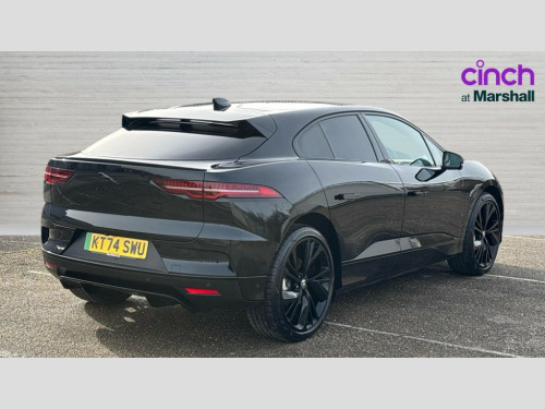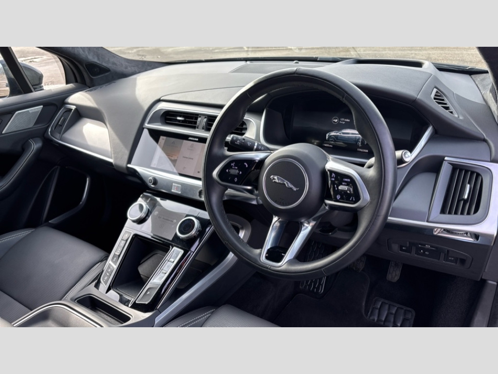 Jaguar I-Pace 294kW EV400 Sport 90kWh 5dr Auto Adaptive cruise control with steering assist, Blind spot assist, Bluetooth connectivity, Brake pad wear indicator, Driver condition monitor, E-call, Head up Display, InControl remote, Interactive driver display, Jaguar drive control with adaptive surface response, Lane keep assist, Low power mode, Navigation system, Outside temperature gauge, Range for route, Rear collision monitor, Rear traffic monitor, Software over the air, Speed proportional electronic power assisted steering (EPAS), Start up sequence with movement in dials and lighting, Traffic sign recognition with adaptive speed limiter, Trip computer, Voice control system, Wireless Apple CarPlay/Android Auto, Wireless device charging, 11kW 3 phase AC onboard charger, 7kW single phase AC onboard charger wallbox, Active sound design, Adaptive dynamics, All Wheel Drive (AWD), Configurable dynamics, Electronic air suspension, Home charging cable Mode 2, Jaguar charging, Open differential with torque vectoring by braking, Public charging cable Mode 3, Timed charging, 10" PiVI pro duo, Digital Audio Broadcast radio-DAB, Pivi pro connected, 3 flash lane change indicators, Acoustic laminated windscreen, Active vanes, Automatic headlight levelling, Automatic headlights, Body colour bumpers, Body coloured accents, Body coloured side cladding and rear diffuser, Electric heated/power fold memory door mirrors with approach lights and auto dimming driver side, Electric windows with one touch open/close and anti trap, Fixed panoramic glass sunroof, Flush exterior door handles, Follow me home headlights, Front shield grille, Graphite atlas matte finish front air cheeks, Heated front windscreen, Heated rear window with timer, Heated washer jets, Laminated front and toughened rear side glass, LED tail lights, Privacy glass, R-Dynamic body style, Rain sensing windscreen wipers, Rear bike carrier preparation kit, Rear fog lights, Rear side wing doors, Rear wiper, Screw-in rear recovery eye, Solar attenuating rear windscreen, Solar attenuating windscreen, Tailgate/boot lid spoiler, Third brake light, 12V power socket in loadspace, 12V power sockets, 14 way heated and cooled electric driver memory seats, 3 rear headrests, 3 seat bench in 2nd row, 40:20:40 split folding heated rear seats with centre armrest, Air quality sensor, Ebony Carpet, Electric cabin pre-conditioning, Front storage compartment, Heated steering wheel, Hooks in loadspace, Leather steering wheel, LED rear reading lights, Luggage tie downs in loadspace, Multifunction steering wheel, Overhead lighting console, Premium cabin lighting, Rear cupholder, Single front passenger seat, Storage under rear seats, Sunvisors with illuminated vanity mirrors, Windsor leather upholstery + performance seats, Black exterior pack - I-Pace R-Dynamic S/SE Black/HSE Black/Sport, Online pack with Data plan - I-Pace, 3x3 point rear seatbelts, 6 airbags - Driver/front passenger airbags, front and rear curtain airbags and front side airbags, ABS, All surface progress control (ASPC), Anti-whiplash front headrests, DSC - Dynamic Stability Control, Electric parking brake (EPB), Emergency brake assist, Emergency braking, Enhanced brake regeneration, Front and rear seatbelt reminder, Hill launch assist, Low traction launch, Power operated child locks, Tyre pressure monitoring system (TPMS), Global lock and unlock switch on driver door, Intrusion sensor and alarm, Keyless entry, Lock only switch on front passenger door, Locking wheel nuts