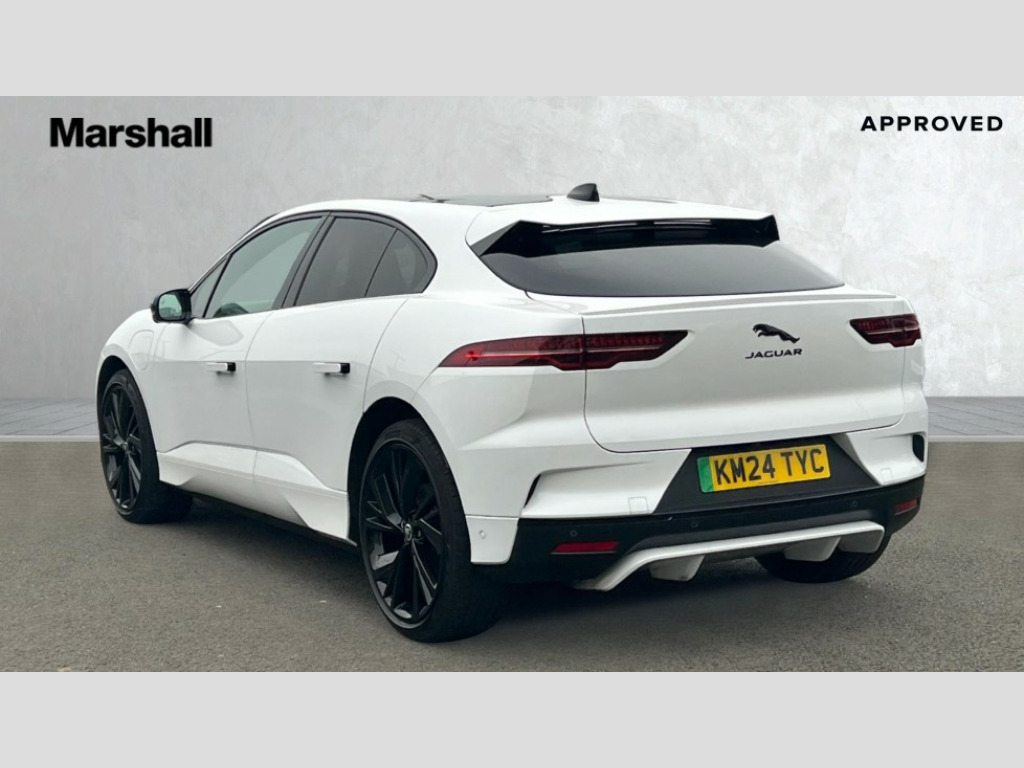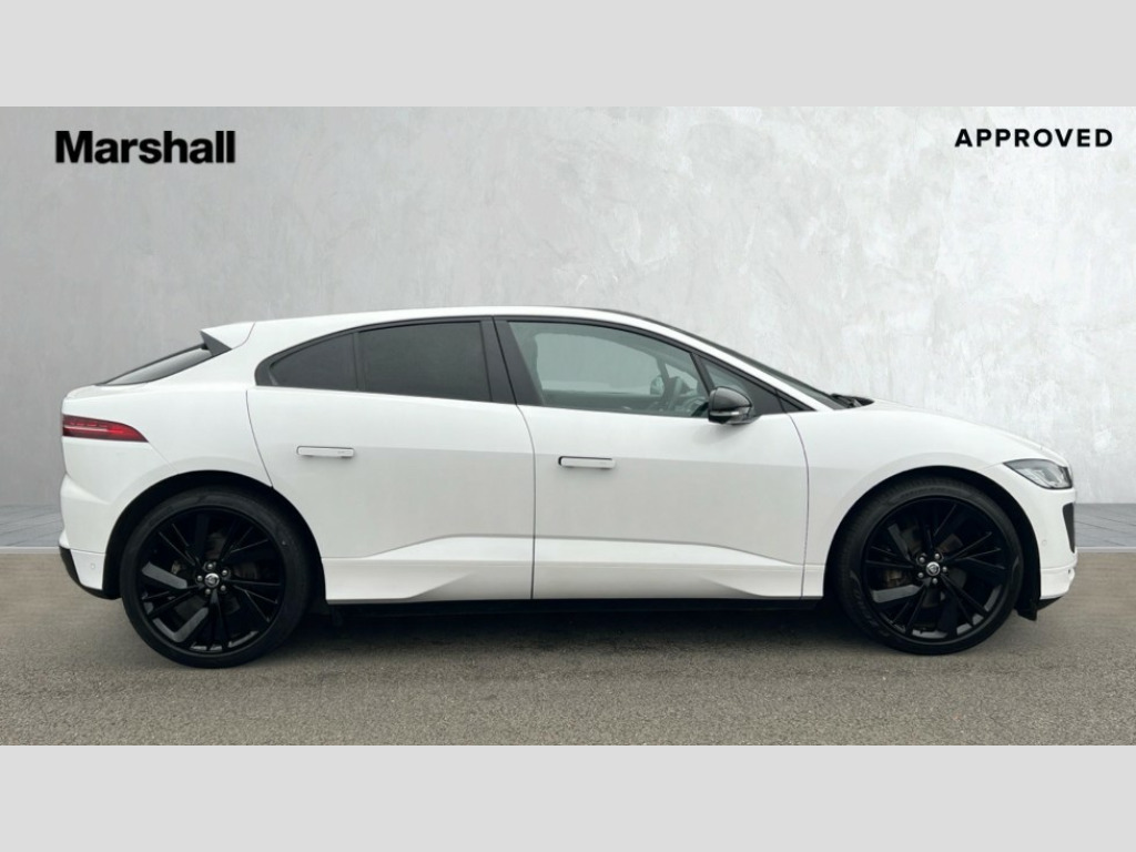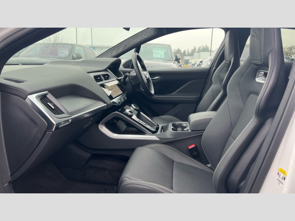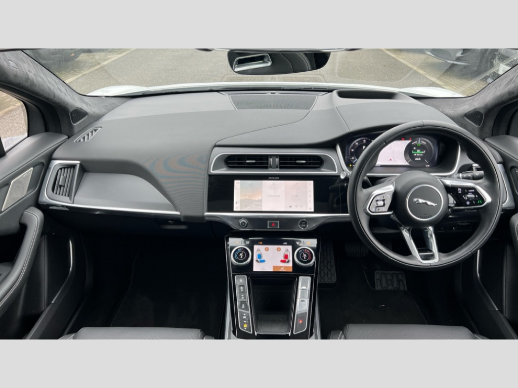 Jaguar I-Pace 294kW EV400 Sport 90kWh 5dr Auto Adaptive cruise control with steering assist, Blind spot assist, Bluetooth connectivity, Brake pad wear indicator, Driver condition monitor, E-call, Head up Display, InControl remote, Interactive driver display, Jaguar drive control with adaptive surface response, Lane keep assist, Low power mode, Navigation system, Outside temperature gauge, Range for route, Rear collision monitor, Rear traffic monitor, Software over the air, Speed proportional electronic power assisted steering (EPAS), Start up sequence with movement in dials and lighting, Traffic sign recognition with adaptive speed limiter, Trip computer, Voice control system, Wireless Apple CarPlay/Android Auto, Wireless device charging, 11kW 3 phase AC onboard charger, 7kW single phase AC onboard charger wallbox, Active sound design, Adaptive dynamics, All Wheel Drive (AWD), Configurable dynamics, Electronic air suspension, Home charging cable Mode 2, Jaguar charging, Open differential with torque vectoring by braking, Public charging cable Mode 3, Timed charging, 10" PiVI pro duo, Digital Audio Broadcast radio-DAB, Pivi pro connected, 3 flash lane change indicators, Acoustic laminated windscreen, Active vanes, Automatic headlight levelling, Automatic headlights, Body colour bumpers, Body coloured accents, Body coloured side cladding and rear diffuser, Electric heated/power fold memory door mirrors with approach lights and auto dimming driver side, Electric windows with one touch open/close and anti trap, Fixed panoramic glass sunroof, Flush exterior door handles, Follow me home headlights, Front shield grille, Graphite atlas matte finish front air cheeks, Heated front windscreen, Heated rear window with timer, Heated washer jets, Laminated front and toughened rear side glass, LED tail lights, Privacy glass, R-Dynamic body style, Rain sensing windscreen wipers, Rear bike carrier preparation kit, Rear fog lights, Rear side wing doors, Rear wiper, Screw-in rear recovery eye, Solar attenuating rear windscreen, Solar attenuating windscreen, Tailgate/boot lid spoiler, Third brake light, 12V power socket in loadspace, 12V power sockets, 14 way heated and cooled electric driver memory seats, 3 rear headrests, 3 seat bench in 2nd row, 40:20:40 split folding heated rear seats with centre armrest, Air quality sensor, Ebony Carpet, Electric cabin pre-conditioning, Front storage compartment, Heated steering wheel, Hooks in loadspace, Leather steering wheel, LED rear reading lights, Luggage tie downs in loadspace, Multifunction steering wheel, Overhead lighting console, Premium cabin lighting, Rear cupholder, Single front passenger seat, Storage under rear seats, Sunvisors with illuminated vanity mirrors, Windsor leather upholstery + performance seats, Black exterior pack - I-Pace R-Dynamic S/SE Black/HSE Black/Sport, Online pack with Data plan - I-Pace, 3x3 point rear seatbelts, 6 airbags - Driver/front passenger airbags, front and rear curtain airbags and front side airbags, ABS, All surface progress control (ASPC), Anti-whiplash front headrests, DSC - Dynamic Stability Control, Electric parking brake (EPB), Emergency brake assist, Emergency braking, Enhanced brake regeneration, Front and rear seatbelt reminder, Hill launch assist, Low traction launch, Power operated child locks, Tyre pressure monitoring system (TPMS), Global lock and unlock switch on driver door, Intrusion sensor and alarm, Keyless entry, Lock only switch on front passenger door, Locking wheel nuts