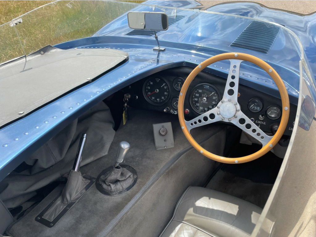 Jaguar D Type replica (4. 2 Triple SUs) 4 speed manual with overdrive, , A Realm / RAM D-Type Jaguar replica, 4. 2 XK engine, Reg. No. NDX 14, in the colours of the famous Ecurie Ecosse racing team, with grey leather interior, registered on V5 as a 1969 Damiler Historic Vehicle, , This very good replica of Jaguars legendary Le Mans-winning D-Type was described by Kit Cars & Specials magazine as having undisputed mechanical integrity, and was reckoned one of the most desirable replicas we have yet laid our hands on. The factory claimed a performance, depending on engine tune, of 0-60mph in approximately 5. 9 seconds and a maximum speed in overdrive top approaching 150mph. , This RAM has been cherished by the last owner in 2006. Included with the car is a large ring binder filled with bills and receipts, plus some spare parts. , A Realm build and finished in Ecurie Ecosse metallic blue and grey leather trim, , This car has an extensive previous history. The last owner has owned for 3 years, and the car joined his collection of classic Jaguars, during this time the car has seen little use. Prior to this the owner, again a serial collector of some very interesting cars, acquired the car from Scotland in 2006 and set about recommissioning the vehicle including adding the Triple SU carbs and gearbox rebuild amongst a plethora of other works. The previous owner to him had the vehicle for some 6 years. In total the V5 shows 6 owners, , Previous MOTs dating back to March 2000 with a mileage of 1954, , The record keeping of the owner (prior to current 2006 - 2022) was fastidious and meticulous, a virtual diary in fact detailing daily actions including usage of petrol, road trips, comments etc down to nuts and bolts and even car washes; this both in relation to expenditures and mileages from 15000 miles to 29000 miles, , The larger items of attention have been:, • Overdrive, • Carburettors rebuild, • Header tank replacement, • Gearbox overhaul, • Brake Master Cylinder, • Seatbelts, • Kenlow Fan, • Electronic Distributor, • Pirelli Tyres, • Moto-lita steering wheel, • Clutch