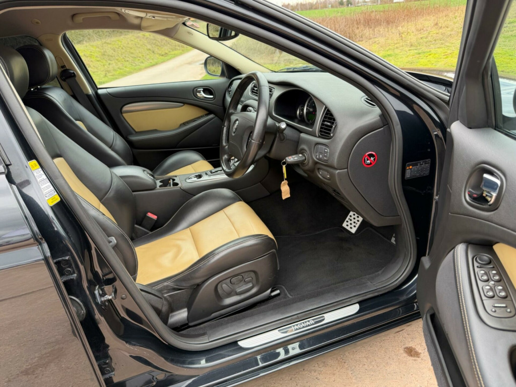 We Are Proud to Offer This Very Low Mileage 2006 Jaguar S Type V8 R, Car Tax £360 For 12 Months, £198 for 6 Months, Imported by Ourselves and kept in dry storage, Full Japanese Service History with all Books and spare Keys, Including an excellent auction grade 4 interior B, Two Colour Leather Interior with Heated Front Seats, Fully UK Converted, Stunning Condition, 0-60mph time of just 5.3 seconds. The R trim level ensures a premium experience, complemented by a full service history, with the most recent service completed at 41,301 miles on 27th February 2026. Furthermore, the vehicle will be supplied with a full 12 months MOT, offering peace of mind for its next custodian.The performance figures for this S Type V8 R clearly set it apart from other vehicles in its class, showcasing its dynamic capabilities. The combination of the potent V8 engine and the R specification creates a driving experience that is both engaging and refined. This Jaguar represents a superb opportunity to acquire a well maintained and low ownership example of a desirable performance saloon.Please see over 80 Photos plus a detailed walk around video on my website www.sportsandprestigeoflichfield.co.uk Any Inspection welcomed. Part Exchange / Finance Available.. Adjustable Steering Column/Wheel, Air Bag Driver, Air Bag Passenger, Air Bag Side, Alarm, Alloy Wheels (18in), Anti-Lock Brakes, Armrest, Body Coloured Bumpers, Body Coloured Pack, Carpet Mats, Central Door Locking, Centre Rear Seat Belt, Climate Control, Cruise Control, Cup Holders Twin Front (with Power Point), Deadlocks, Electric Windows (Front/Rear), Electrochromic Mirrors (inc Int Rear View Mirror), Electronic Stability Programme, Head Restraints, Headlight Powerwash, Heated Front Seats, Heated Front Windscreen, Immobiliser, In Car Entertainment (Radio/CD), Memory Pack, Metallic Paint, Mirrors External (Electric Heated/Folding), Mirrors Internal, Navigation Sys - inc DVD Mapping, 7in Screen, Parking Assist Rear, Power Socket, Power-Assisted Steering, Powerfold Mirrors, Rear Spoiler, Seat - ISOFIX Anchorage Point (Two Seats - Rear), Seats Electric (Driver/Passenger), Side Protection Mouldings, Spare Wheel (Space Saver), Speakers, Sport Suspension, Steering Wheel Mounted Controls (Audio/Cruise Control), Telephone Pre-Wire, Traction Control System, Upholstery Leather, Xenon Headlights with auto Levelling, Boot Mounted 6 Disc CD Auto, Classic Seats, Leather (Driver Tilt Adjust), Foot Pedals-Electric Adjustment, Jaguar Alpine Premium Sound System, Rain Sensing Windscreen Wipers, Sunblind Rear Electric, TV Tuner, Parking Assist Front, Warning Triangle, Ski Hatch with Bag. Full service history