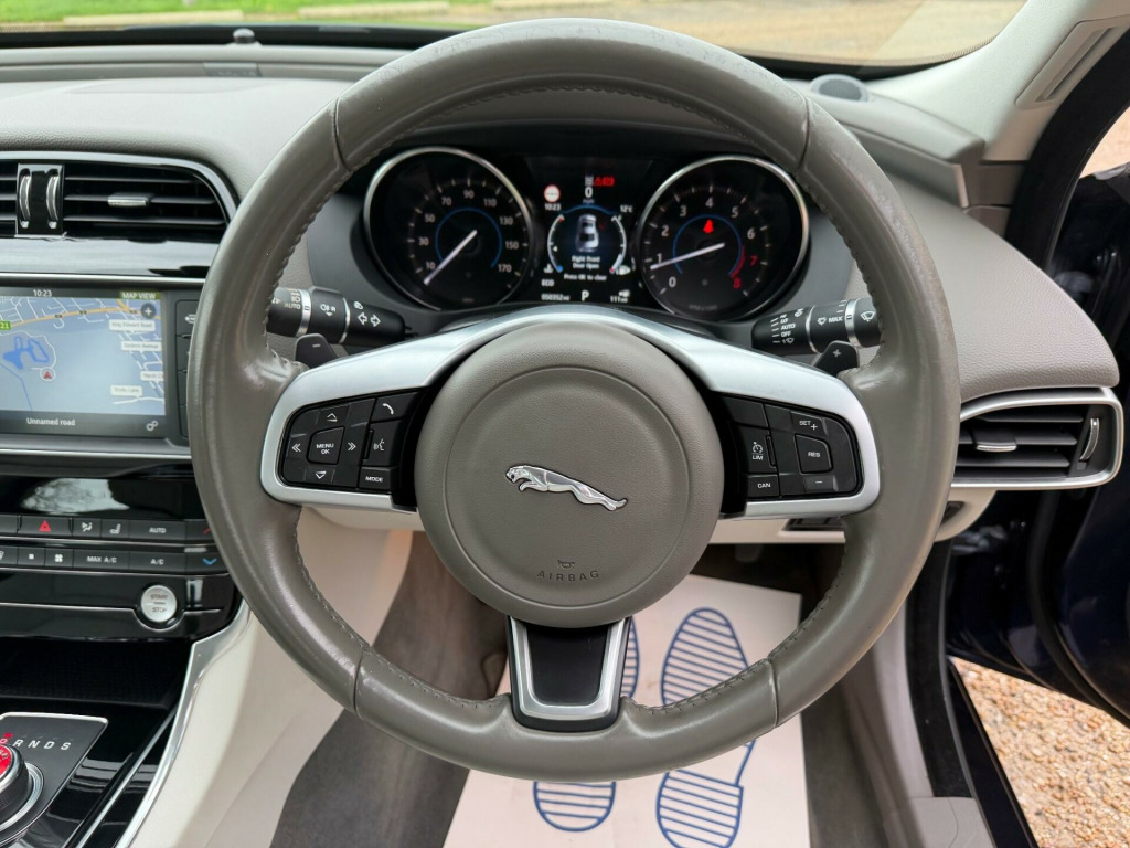 Really pretty Jaguar Xe 2.0L Presteige finished in dark sapphire blue with just 50000 miles on the clock. It comes with 2 keys and nice service history with 5 services on the jaguar database. Most recently at 34k, with this in mind we will be giving this one a full service ahead of sale. It's got an advisory free mot until November 26. This car is nicely specified in Royal blue metallic with cream leather seats, DAB radio, heated seats, cruise control, steering wheel controls, lane departure alert, lumbar support, rear parking sensors, climate control, bluetooth and much more.Should you require finance our SAF approved team are on hand to talk you through all the latest options from some of the countries leading lenders. Additionally we can offer extended warranty packages from as little as £399 for 12 months.Being AA accredited all our approved used vehicles come with 12 months roadside assistance included., v power socket - front, 12v power socket - rear, 17in alloy wheels - crux 7 twin spoke, 1x usb socket, 3 rear headrests, 8in capacitive touchscreen, abs - anti-locking braking system, aeb - autonomous emergency braking, am-fm radio, airbags - driver, airbags - front side, airbags - passenger, airbags - side curtain, ambient interior lighting - phosphor blue, approach illumination - automatic via remote, auto-dimming interior rear view mirror, automatic headlight on, auxiliary power sockets, bluetooth audio streaming, bluetooth telephone connectivity, bootlid jaguar leaper and wordmarque, brake pad wear indicator, brushed aluminium veneer, carpet mat set - font and rear, chrome finishers on centre console and chrome frame on touchscreen, chrome side power vents, chrome side window surround, concealed tailpipes, cruise control with adaptive speed limiter, dab radio + and dmb, drl - daytime running lights, door mirrors - body coloured, door mirrors - electric adjustment-heated with side repeaters, dual zone automatic climate control, dynamic stability control - dsc, dynamic volume control, eba - emergency brake assist, eco hmi - eco data analysis-parasitic load monitor and driver eco, epas - electric power assisted steering, epb - electric parking brake, electric windows - front and rear with one-touch open-close and anti-trap, front armrest with storage compartment, front courtesy footwell lights, front and rear map lights, glove compartment lockable, grained black radiator grille with chrome surround, hazard lights under heavy braking, headlights - reflector halogen, heat insulating glass - green all-round, heated front seats, hill launch assist, isofix anchor points for rear child seat, illuminated glove box, incontrol apps, incontrol protect, incontrol remote premium for warranty period, interior front door handles with separate locking switches, interior mood lighting, jaguar drive control with eco-dynamic-winter and normal mode, jaguar smart key system with keyless start, jaguar sound system, jaguar tyre repair system, jaguarsense - overhead light console, jaguarvoice, lane departure warning, loadbay - premium luggage tie downs, locking wheel nuts, mist sensing, outside temperature gauge, ptc heater, passive front head restraints - whiplash protection, pedestrian contact sensing and deployable bonnet, power operated child locks, rain sensing windscreen wipers, rear cup holders in armrest, rear parking aid, remote control central locking with dead locking and drive-away locking, satellite navigation - sd card with dynamic route guidance and low co2 routing, seat belt reminder, seats - electric recline, seats - front 8x8 way manual adjustment, seats - rear centre armrest, security system, shopping bag hook in trunk, sill finishers - metal with jaguar lettering, steering wheel - adjustable, steering wheel - multi-function, steering wheel - softgrain leather with noble highlights, storage compartment in the doors - front, storage compartment in the doors - rear, sun visor illumination, sunglasses holder in overhead console, traction control, traffic sign recognition, trip computer, twin front cupholders, tyre pressure monitoring system, ipod integration, 2 keys